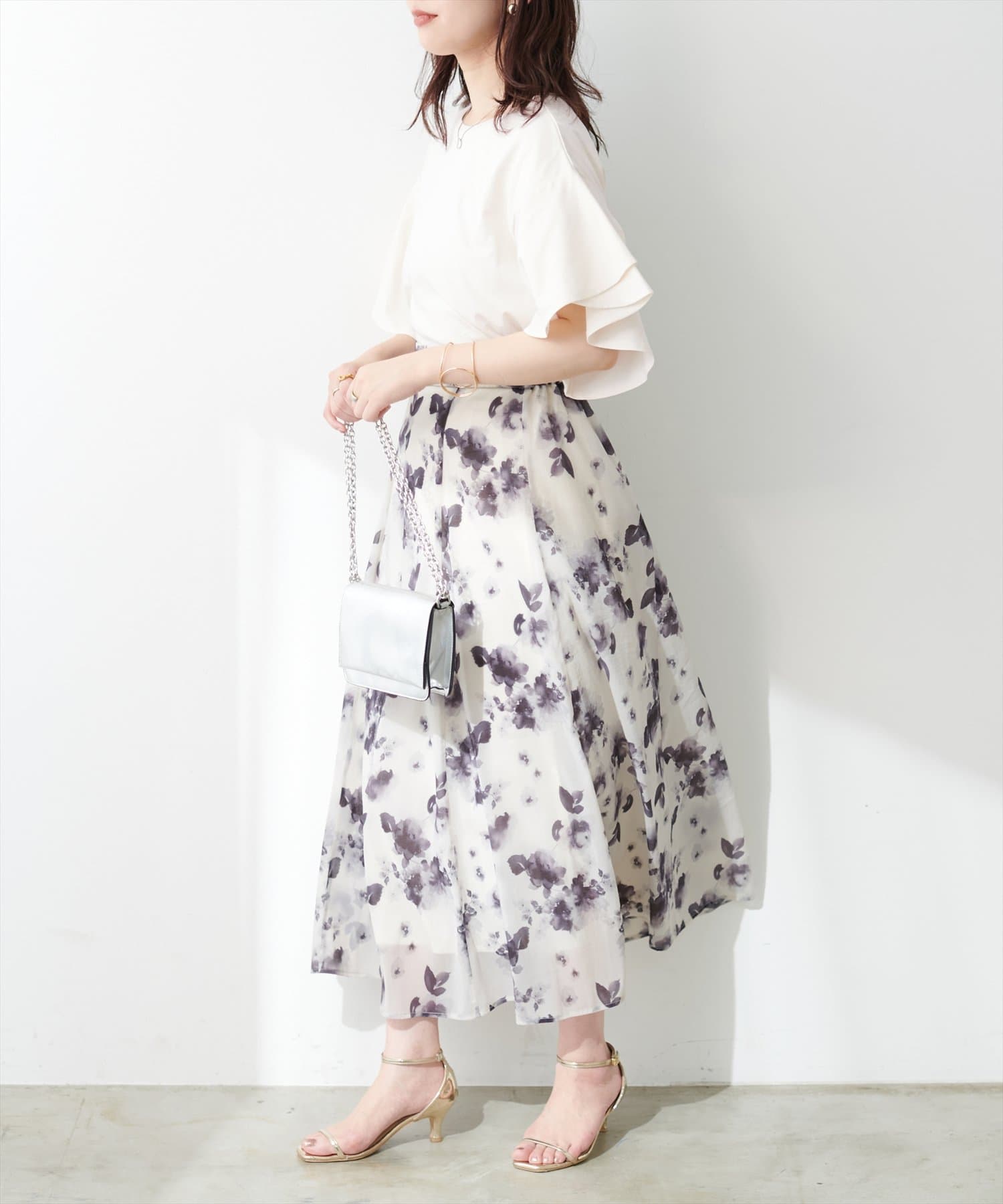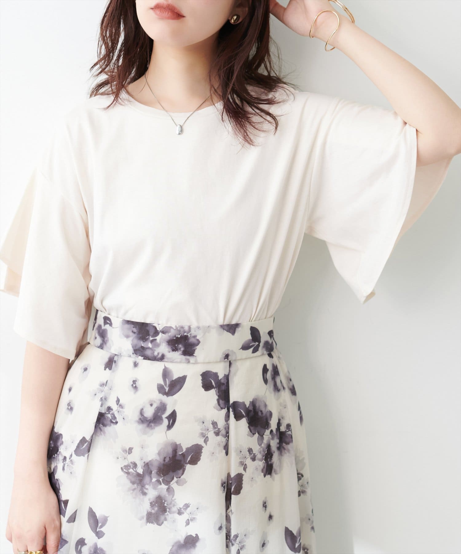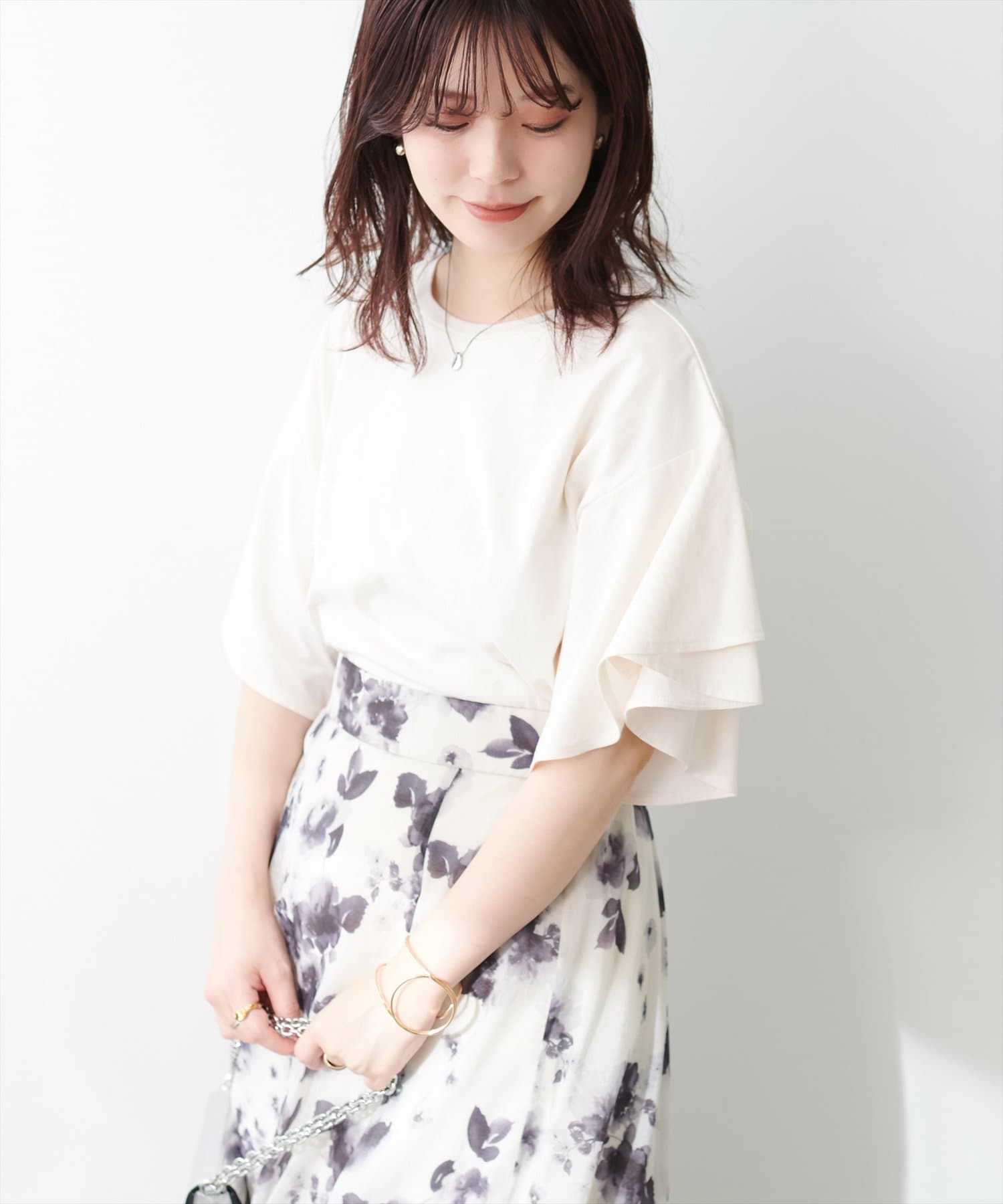 シンプルになりがちな夏のTシャツコーデをフェミニンにアップデートしてくれる1着です。