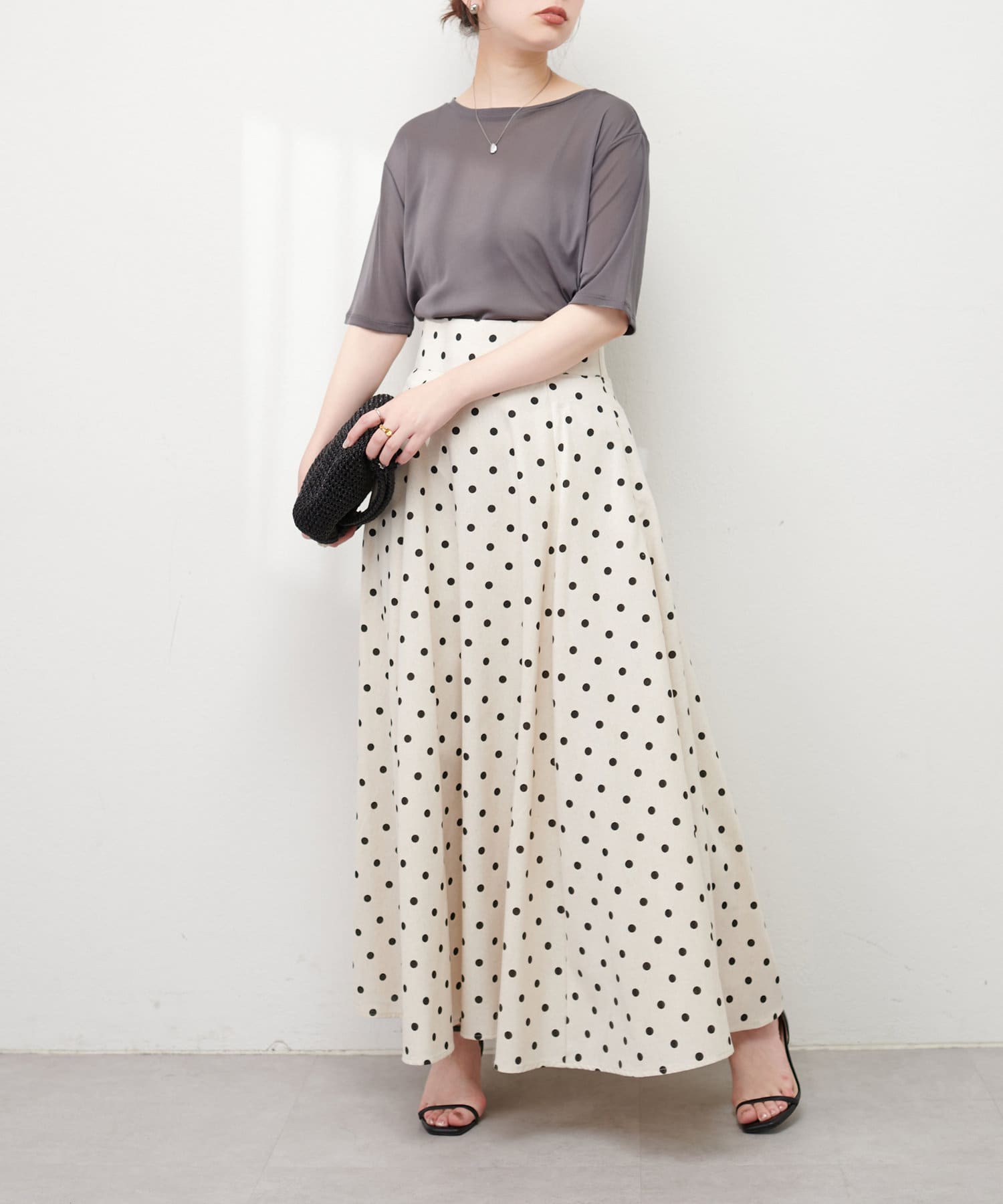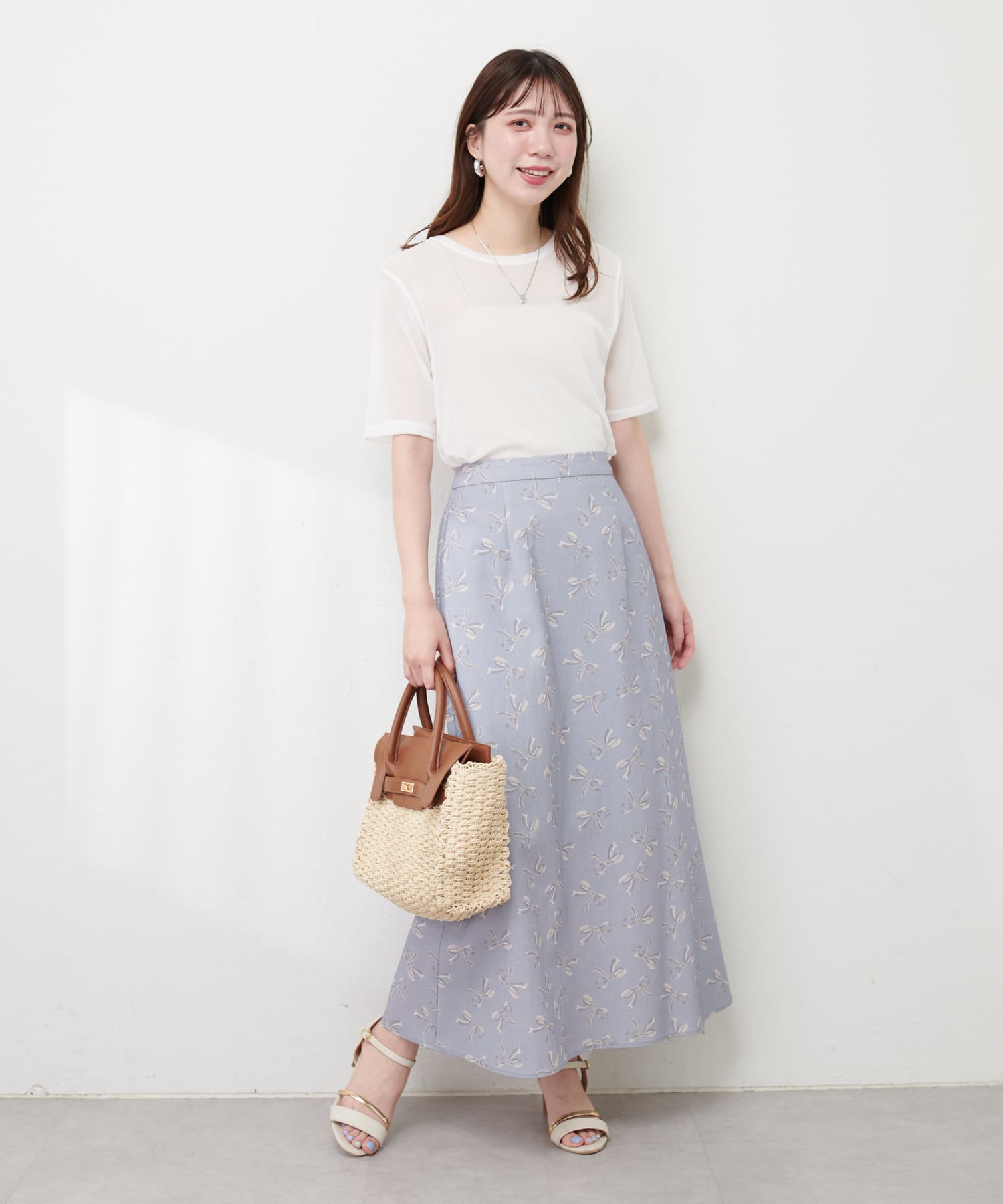 ボトムスにはフレアスカートやカジュアルにデニムを合わせたり、