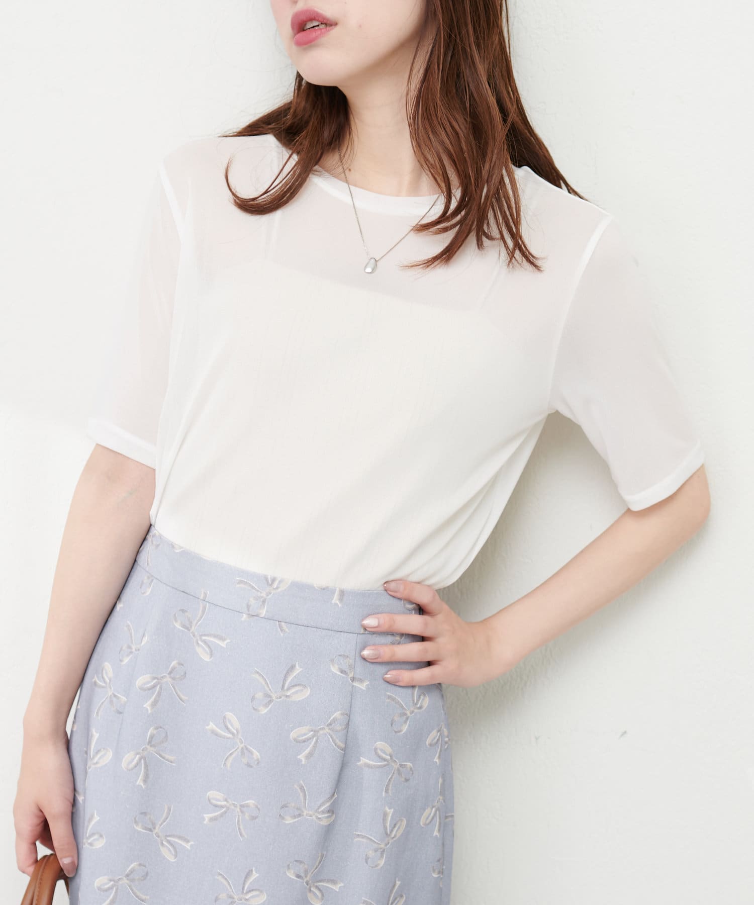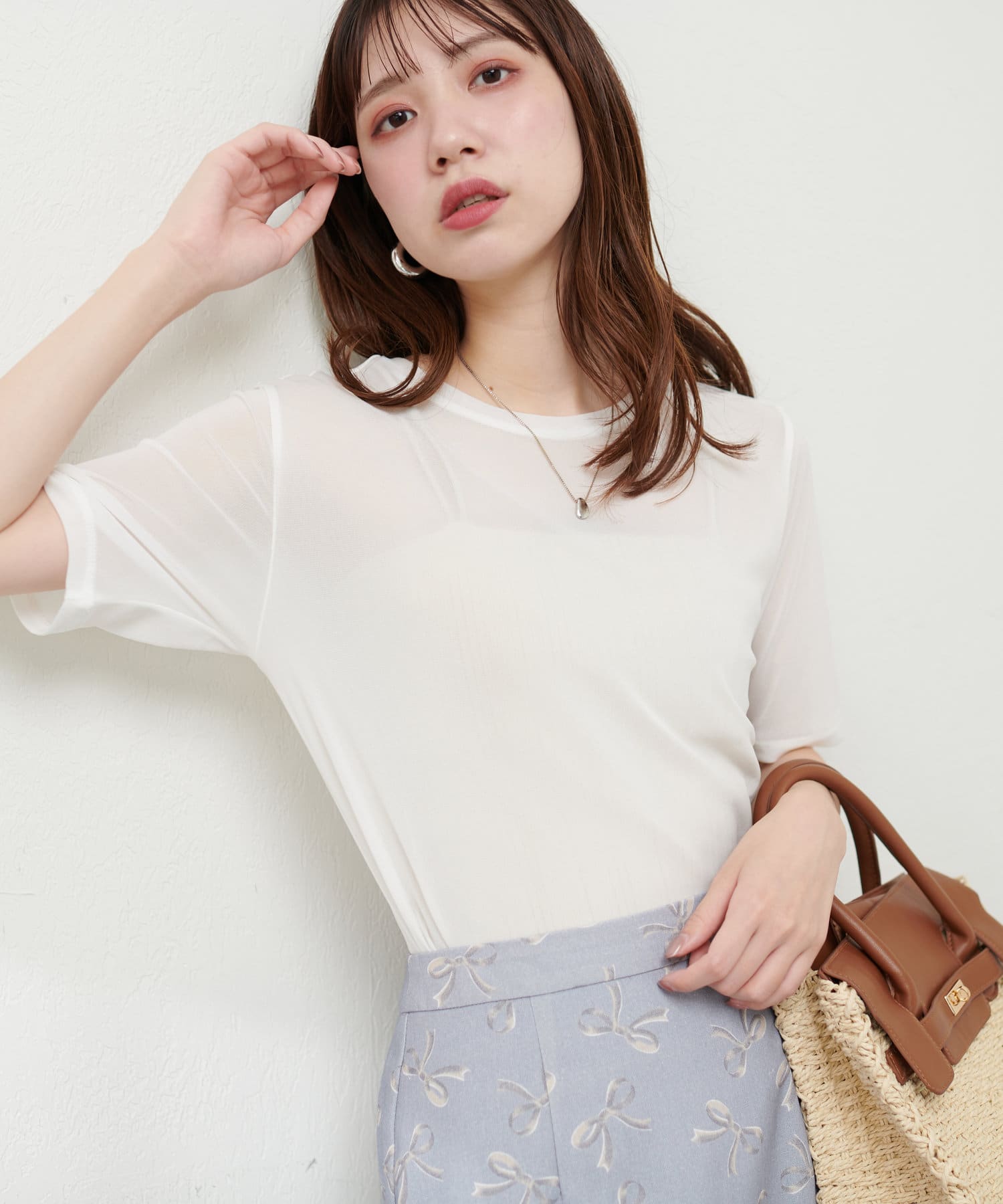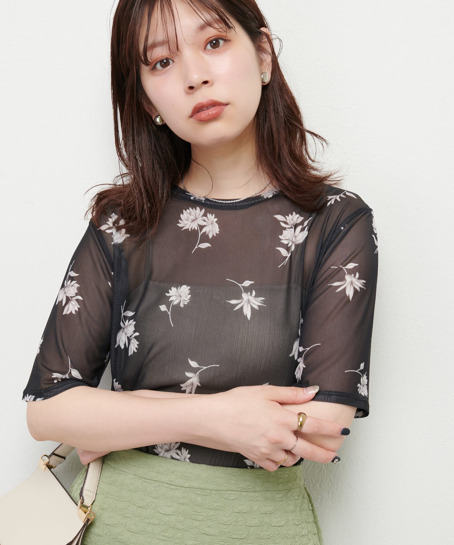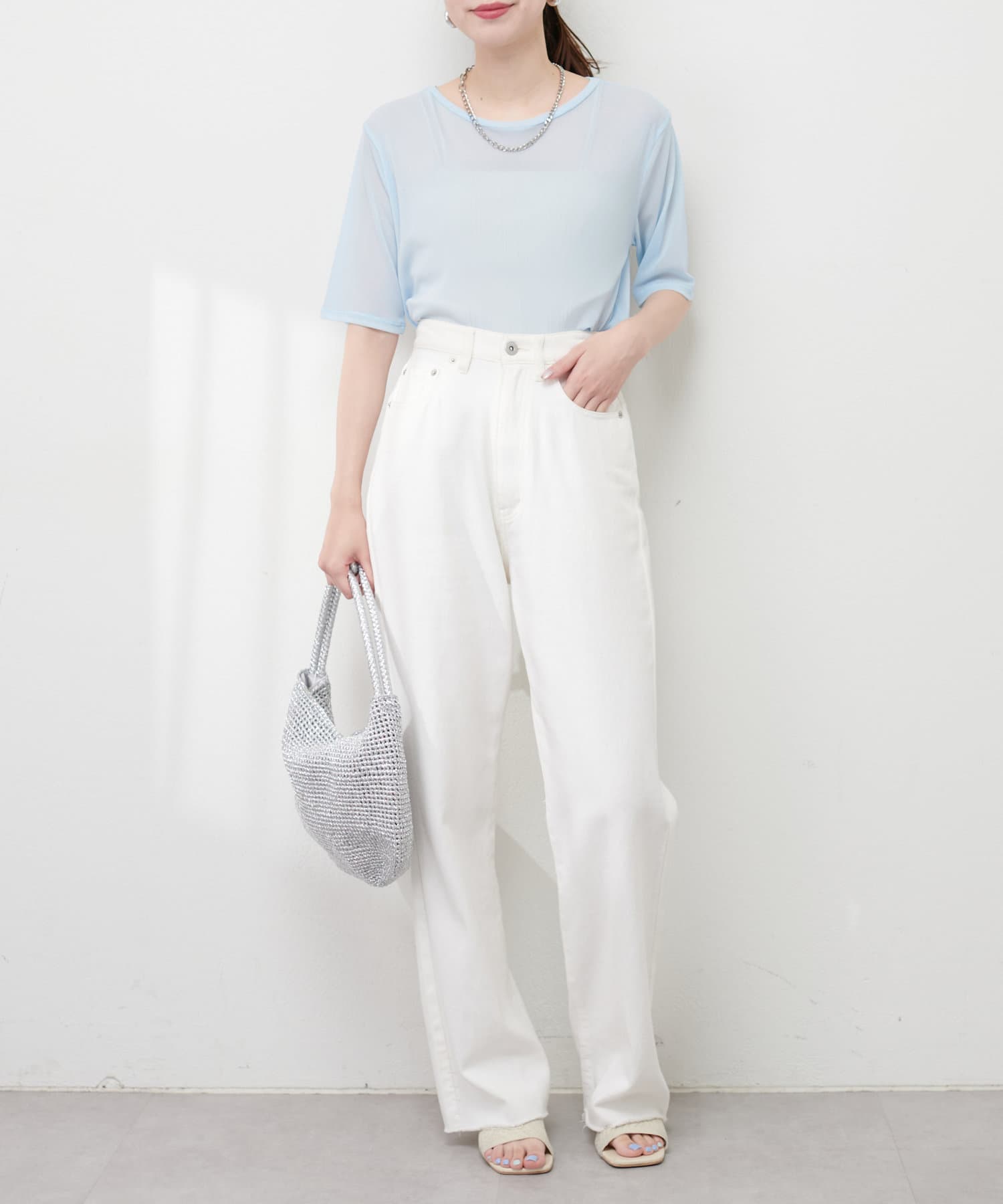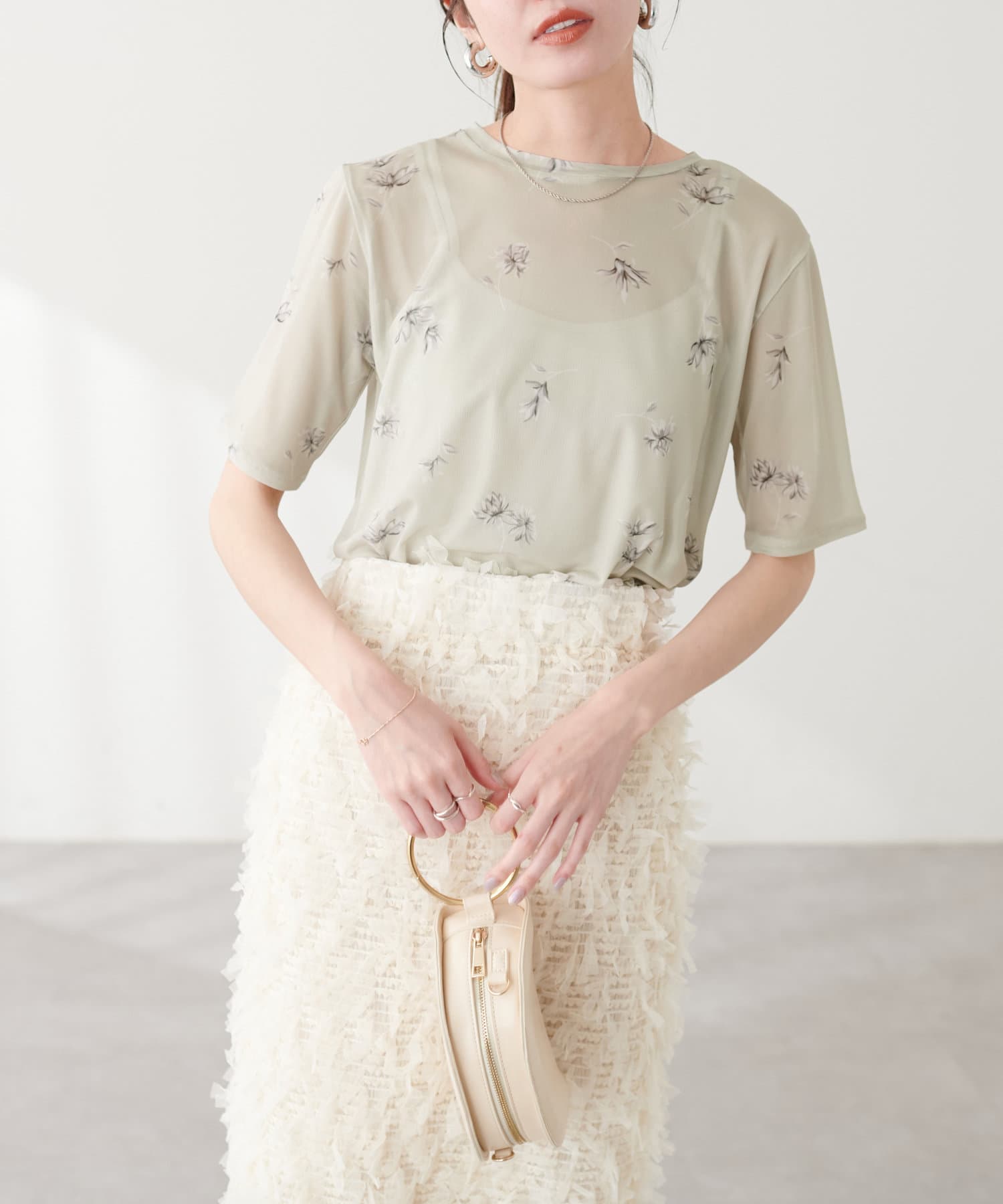 同色のキャミソールを合わせたスタイリングがおすすめ。