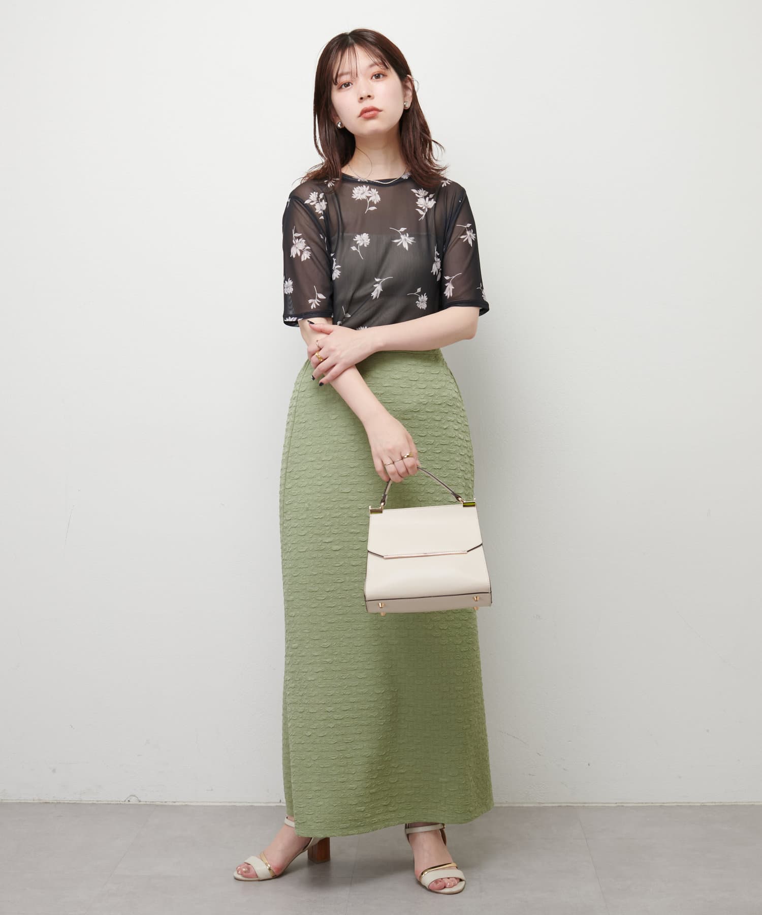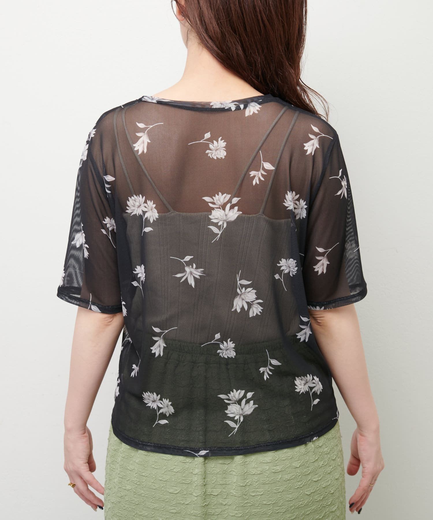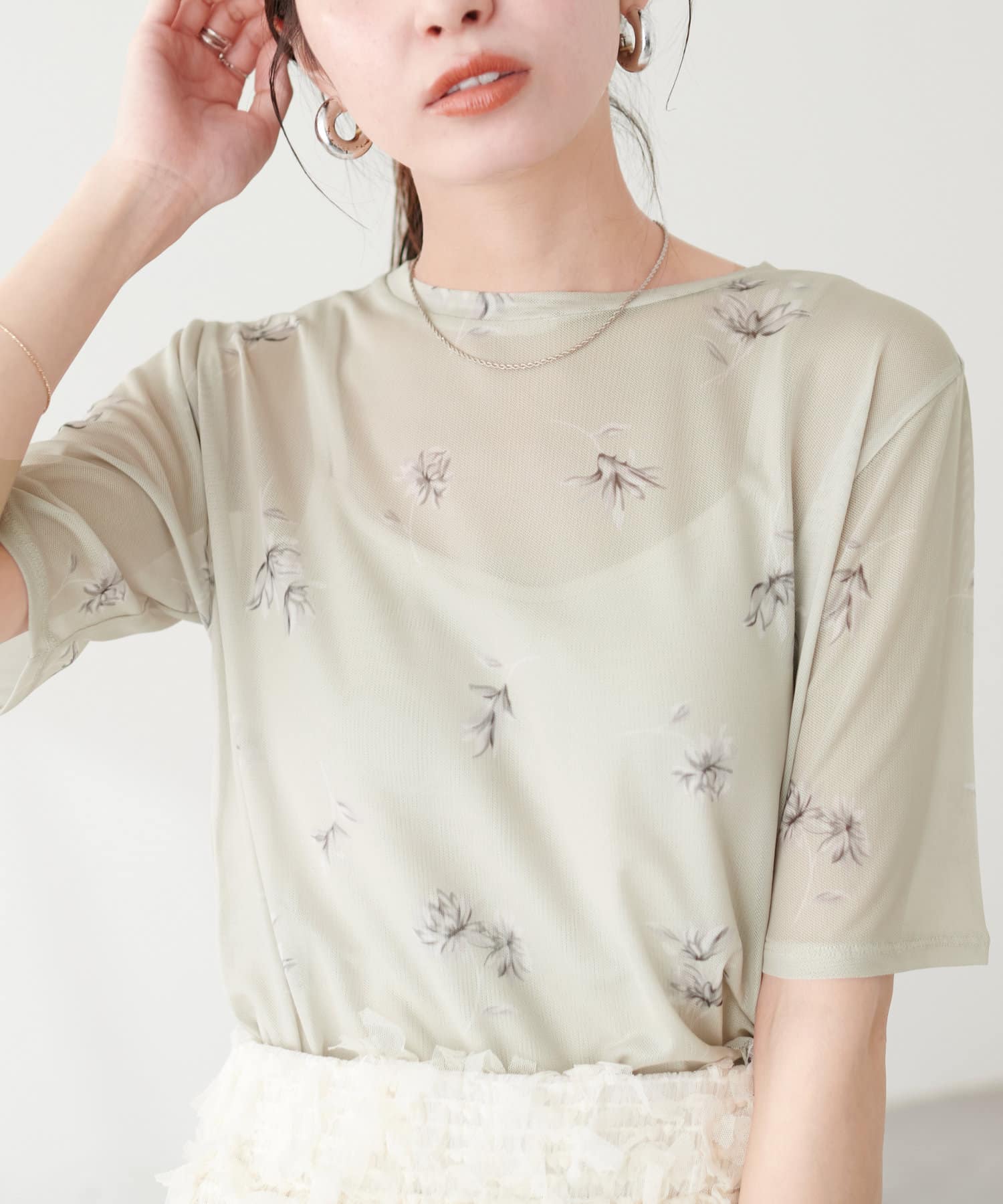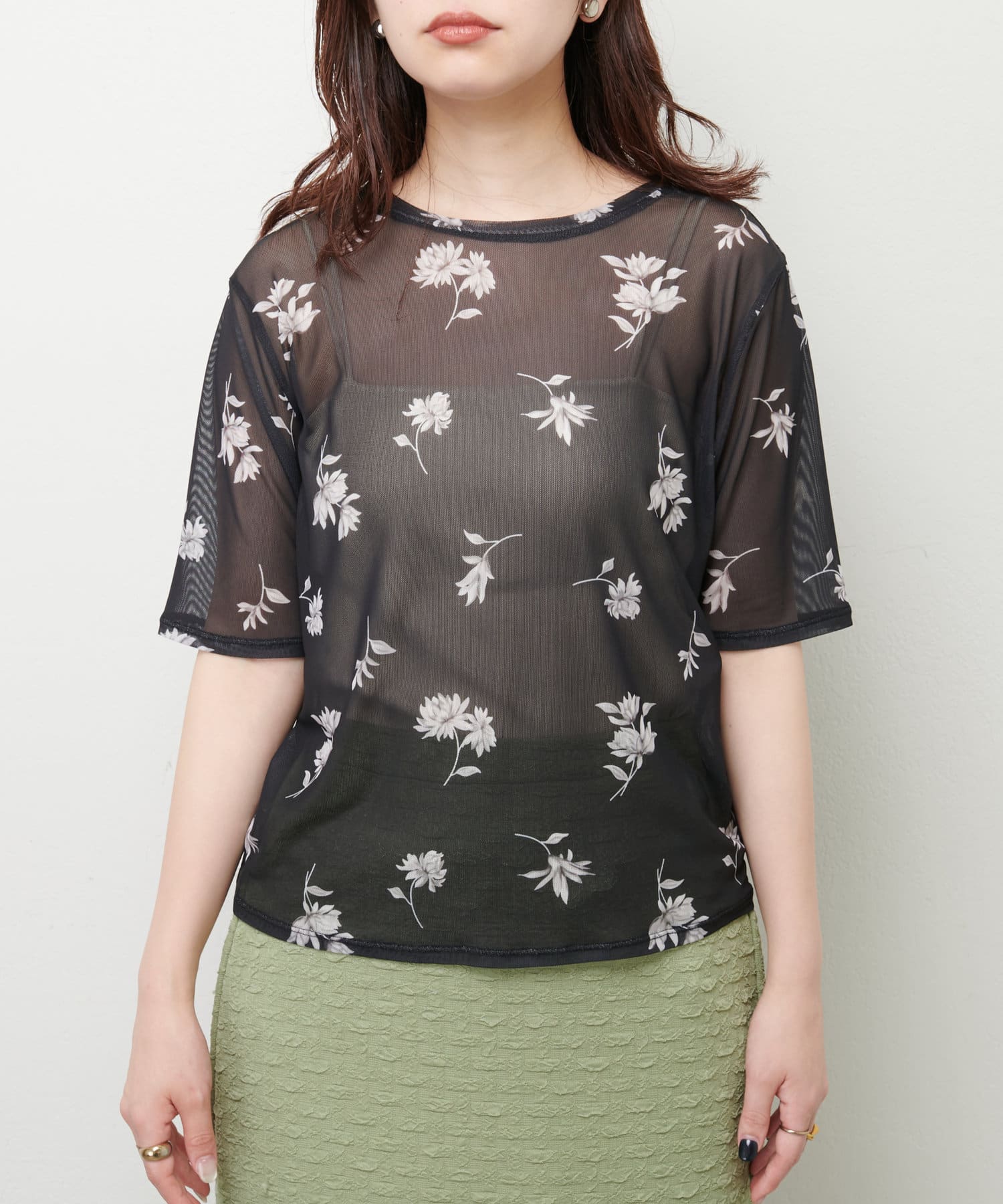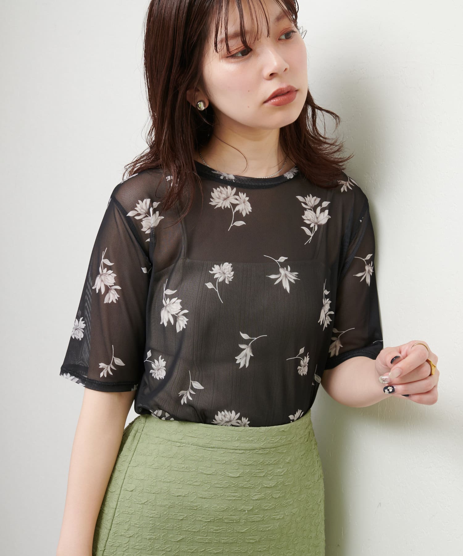 同色のキャミソールを合わせたスタイリングがおすすめ。