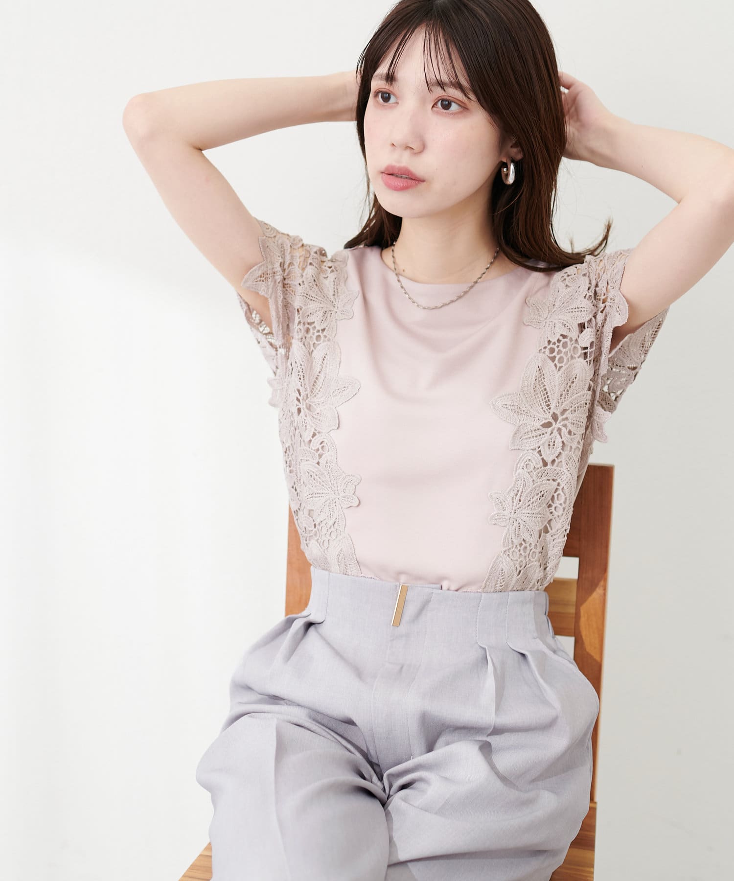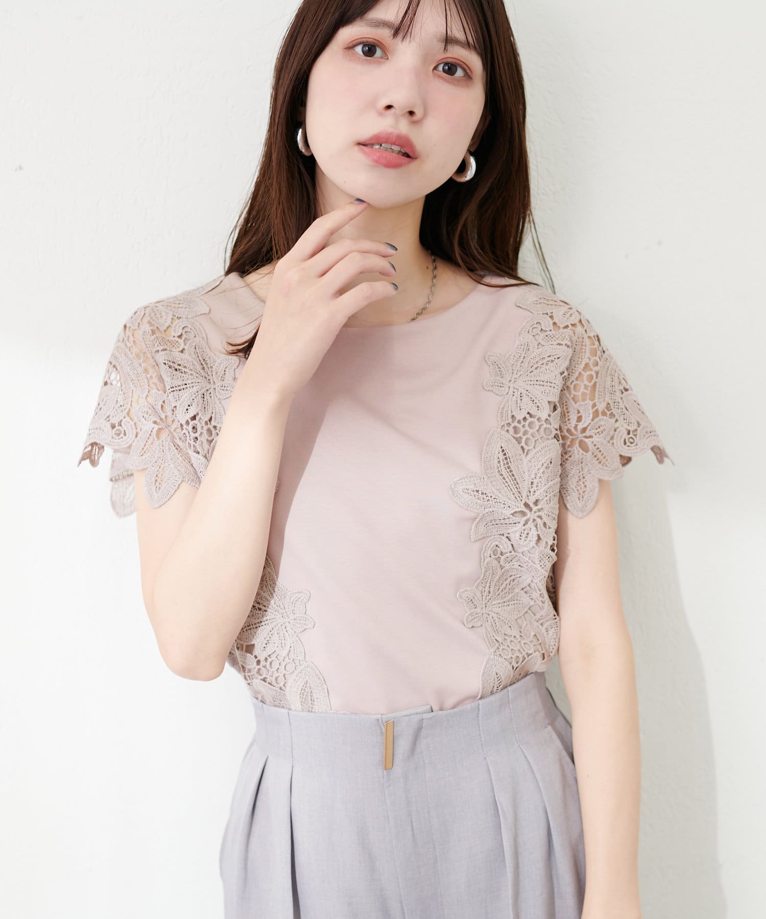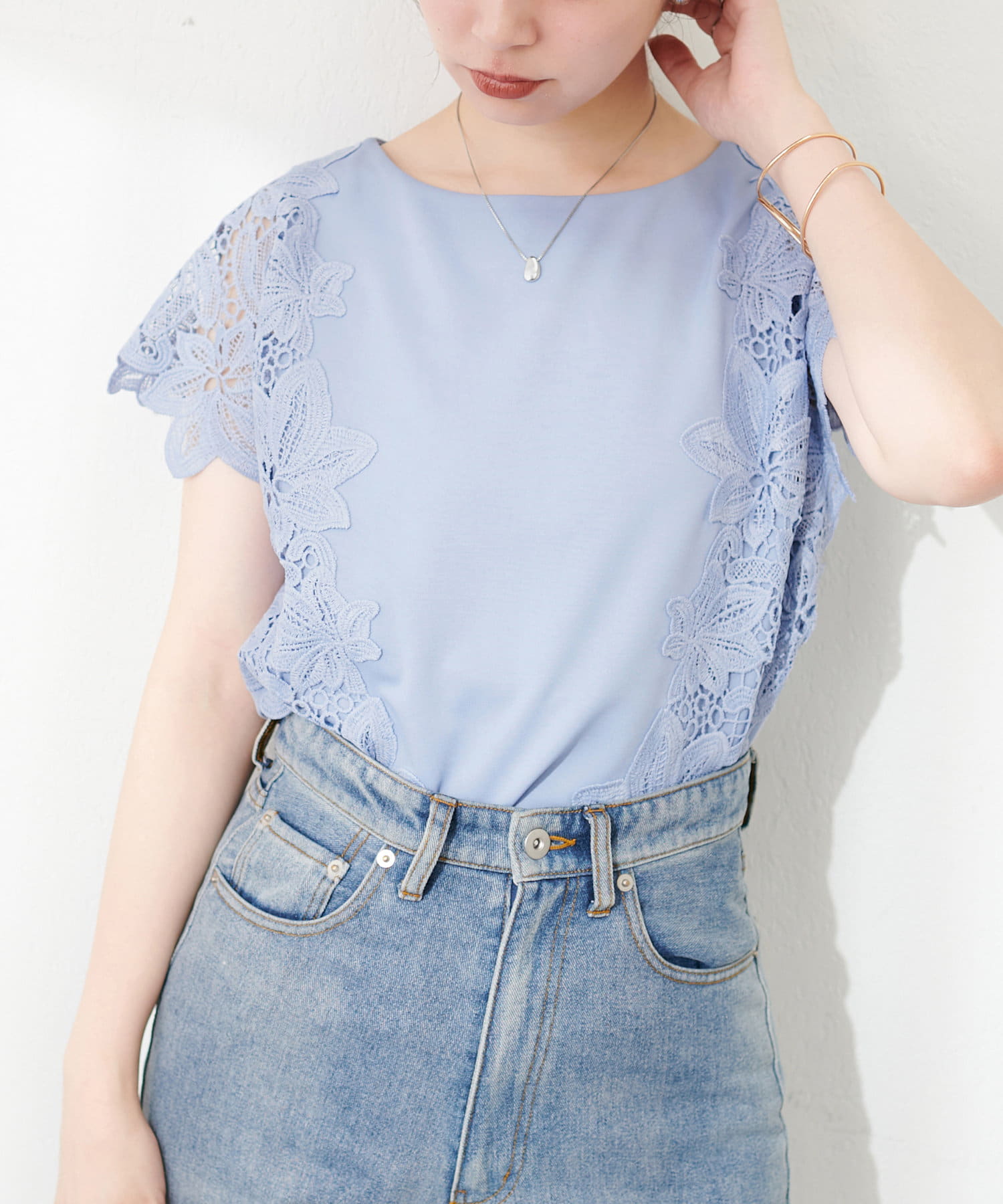 フラワーレースポンチトップス