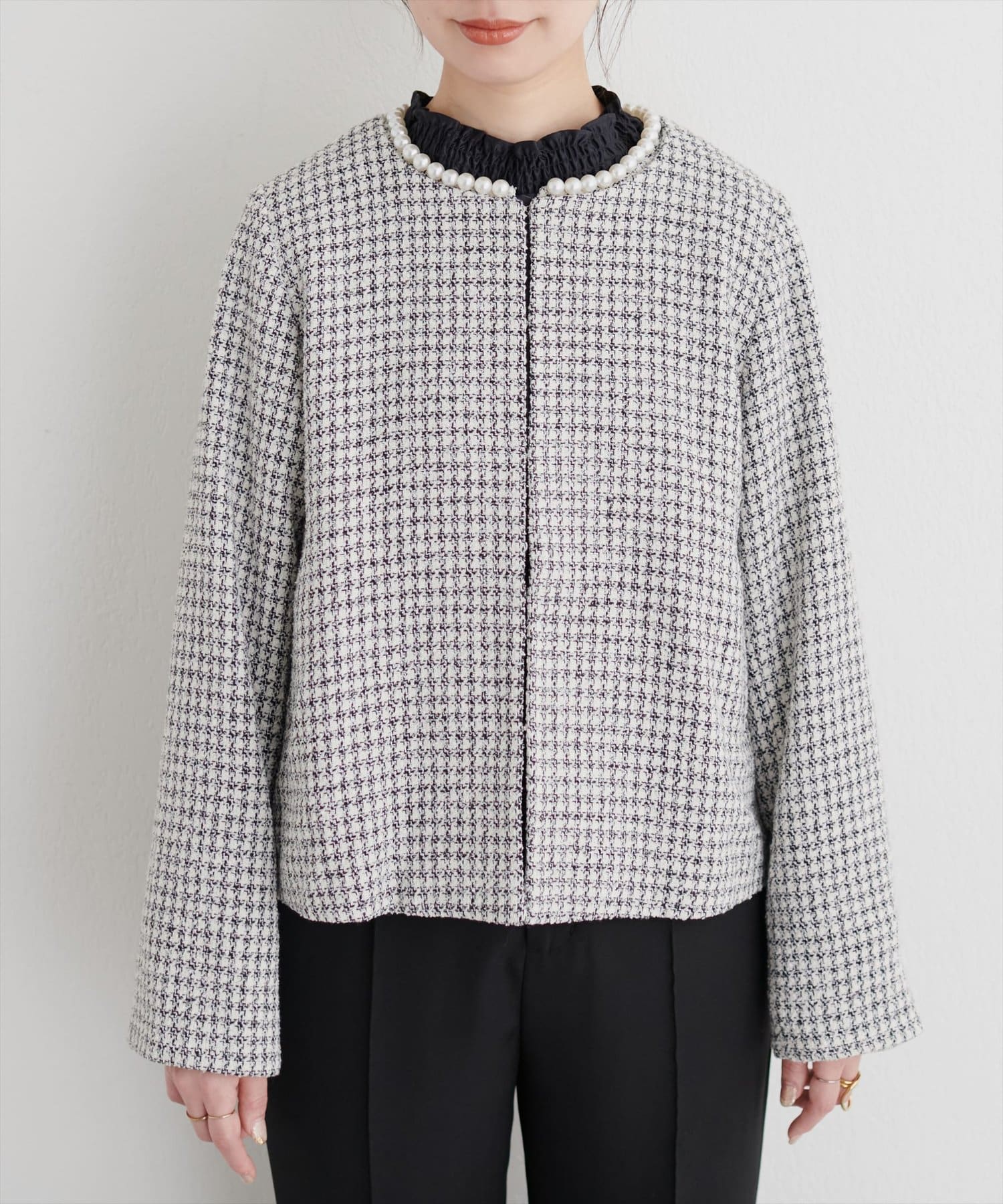 ノーカラーですっきりしていて大人っぽいデザイン◎