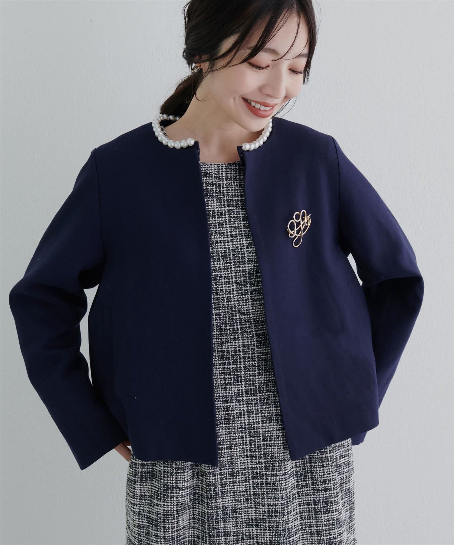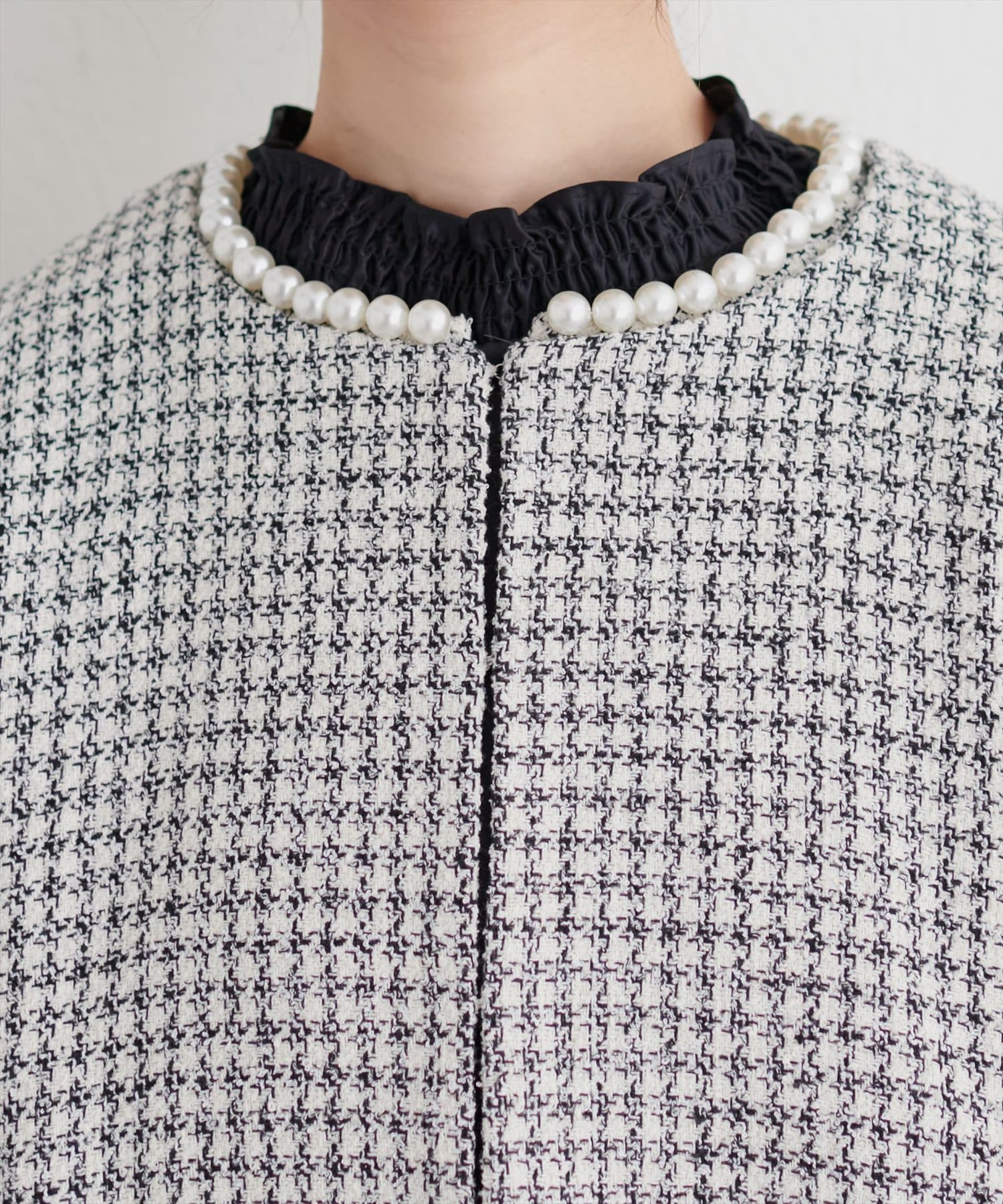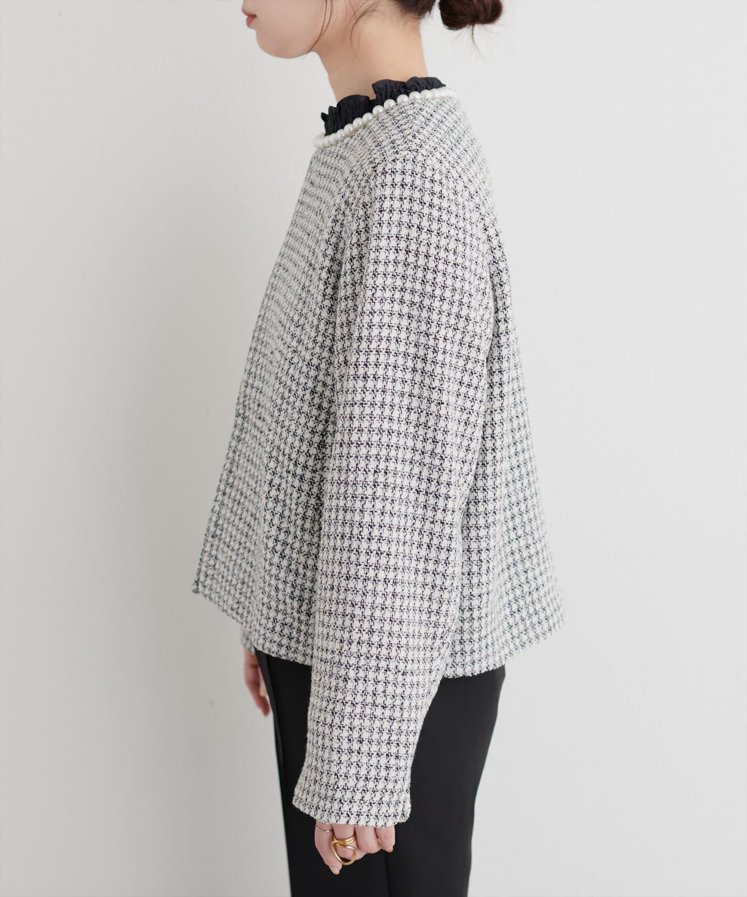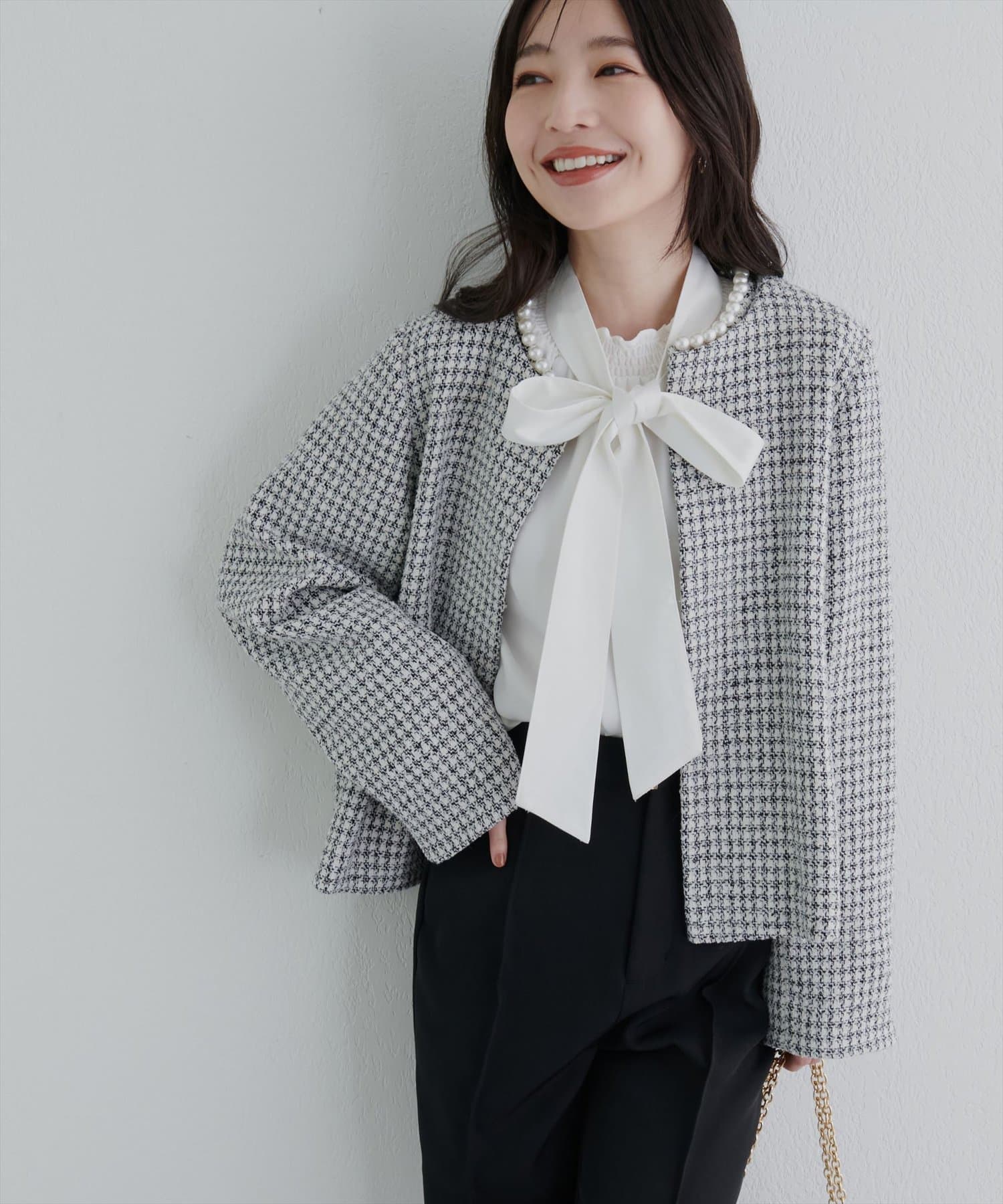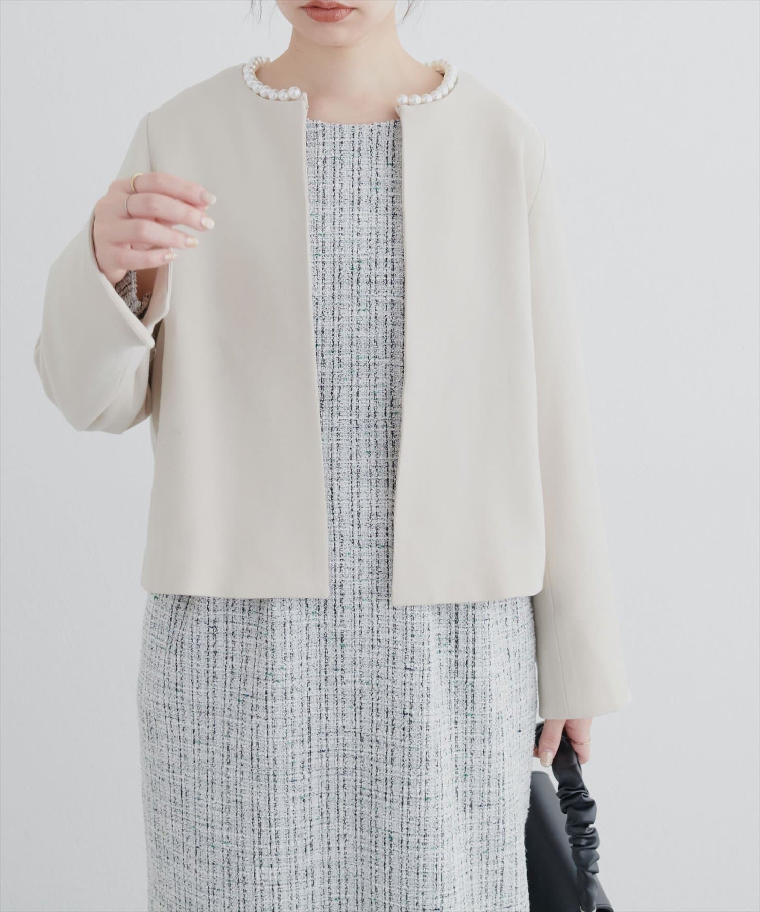 2WAYパールネックノーカラージャケット