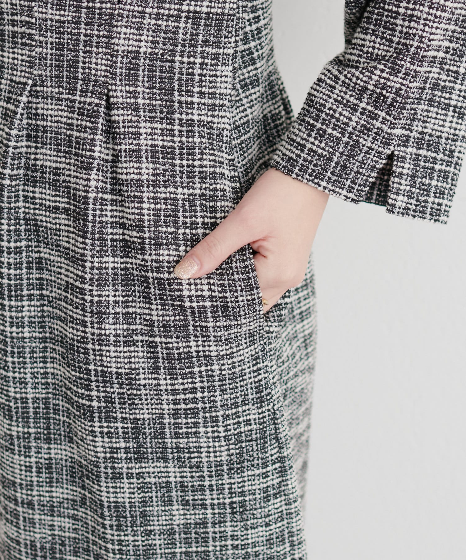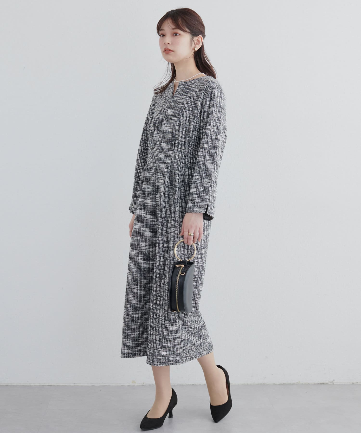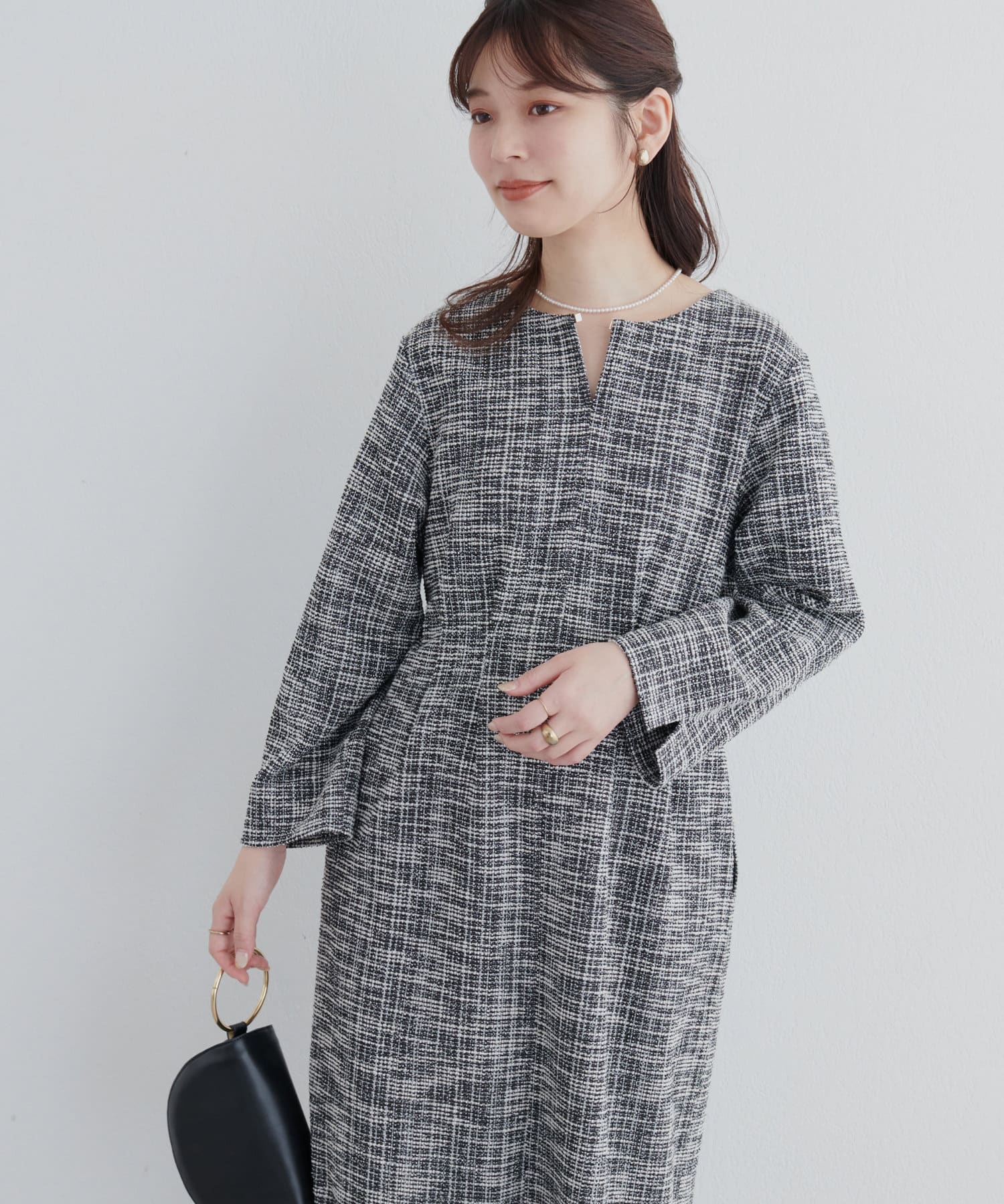 セレモニーシーンでの着用にぴったりなツイードワンピース。