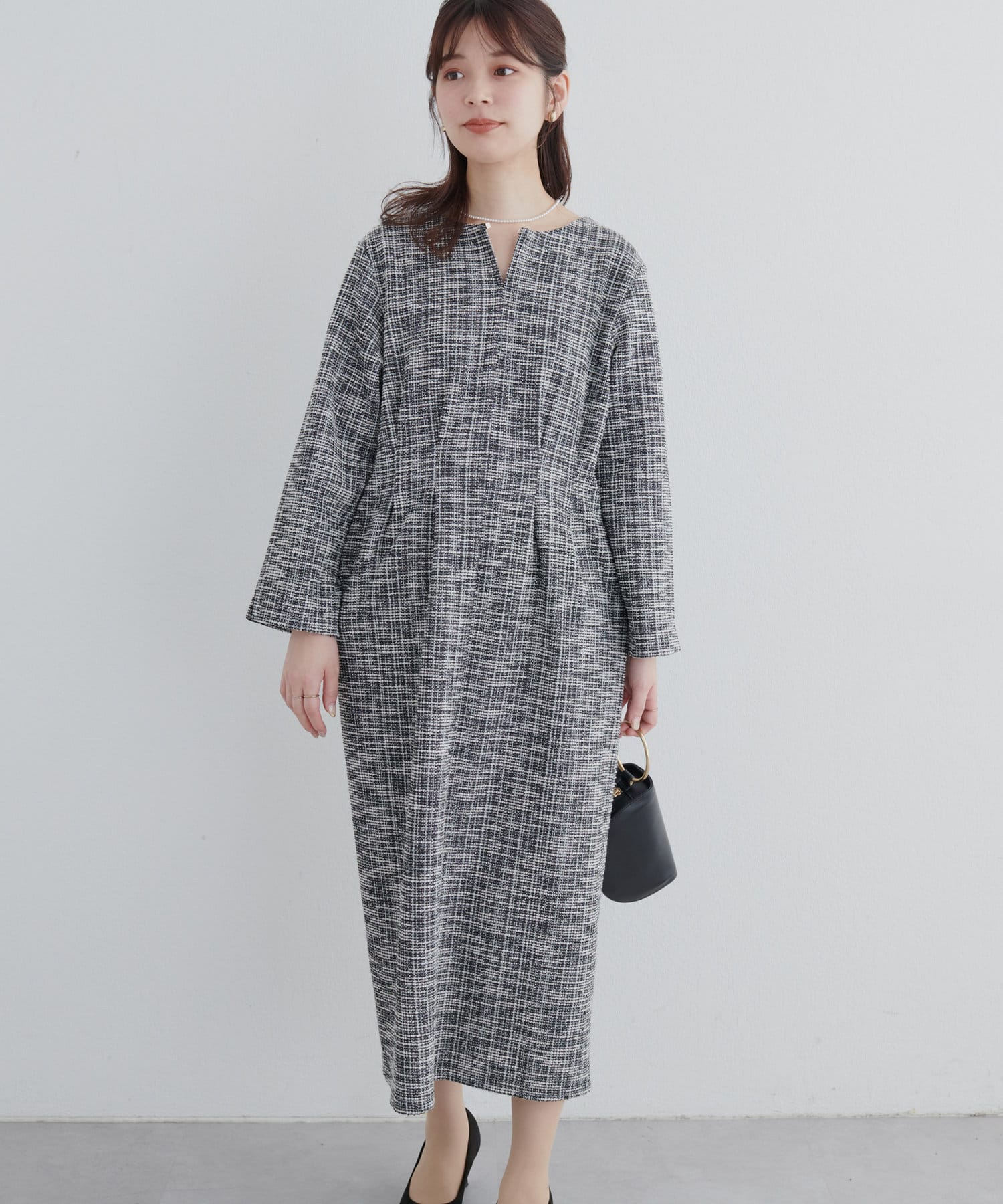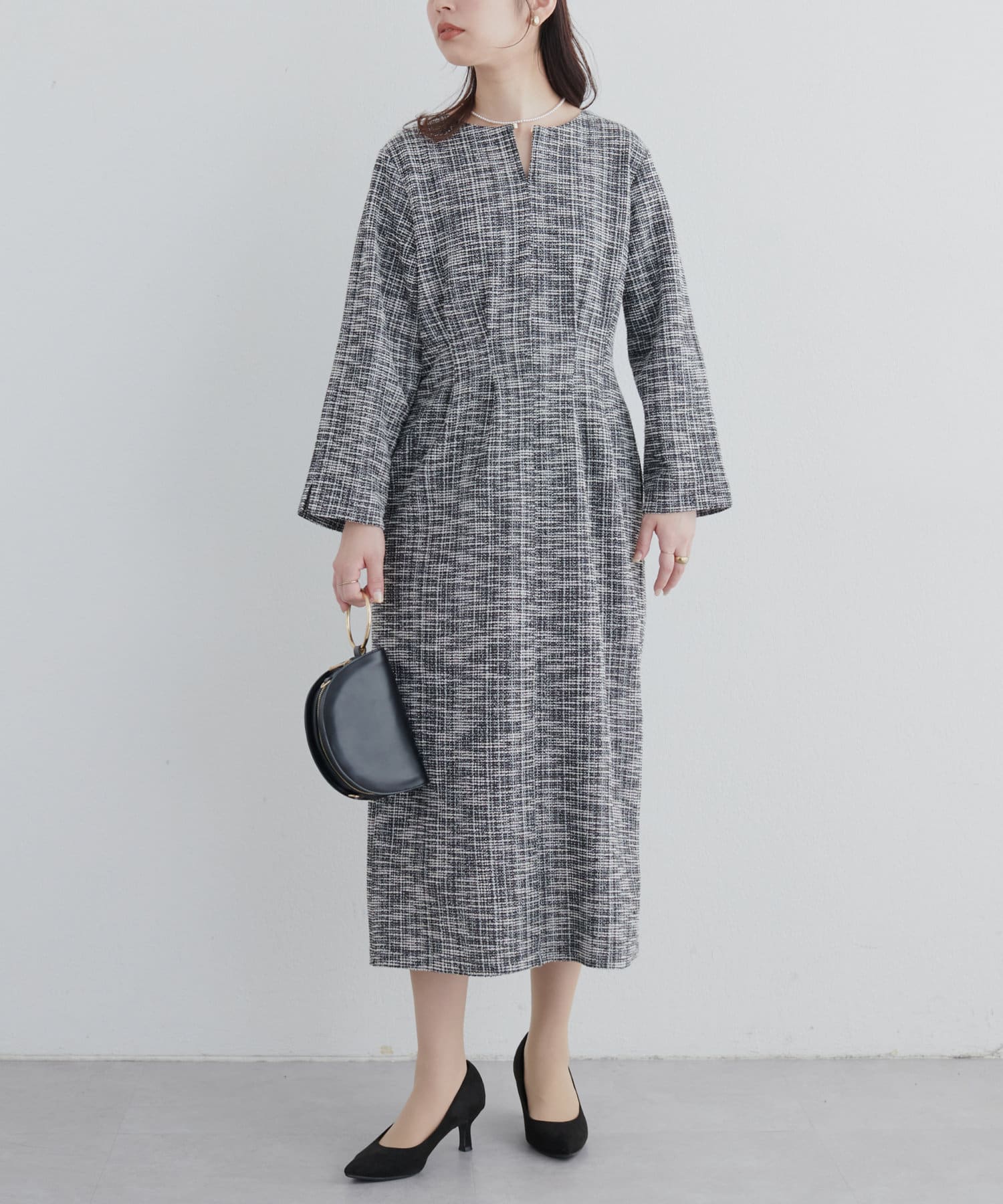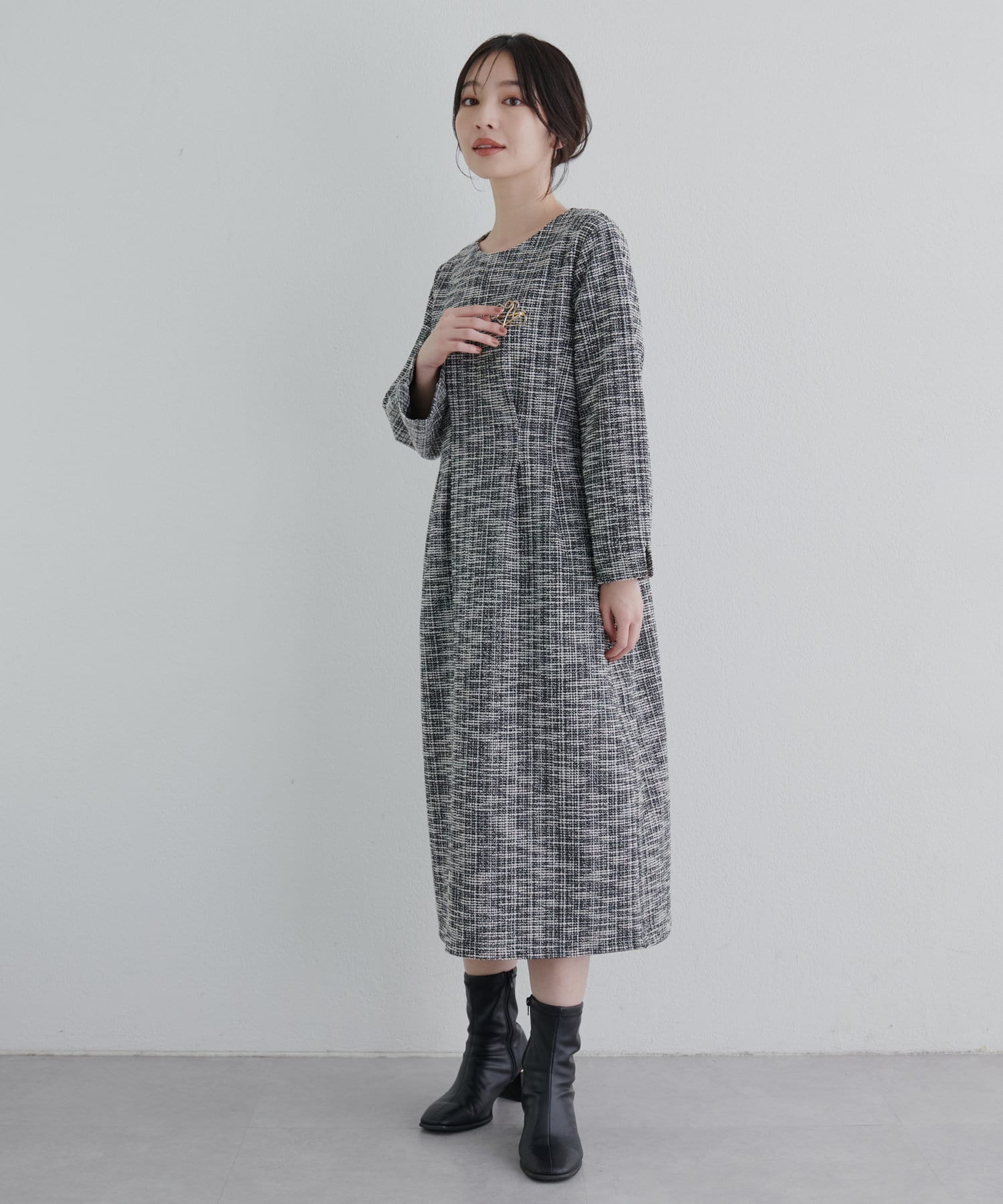 セレモニーシーンでの着用にぴったりなツイードワンピース。