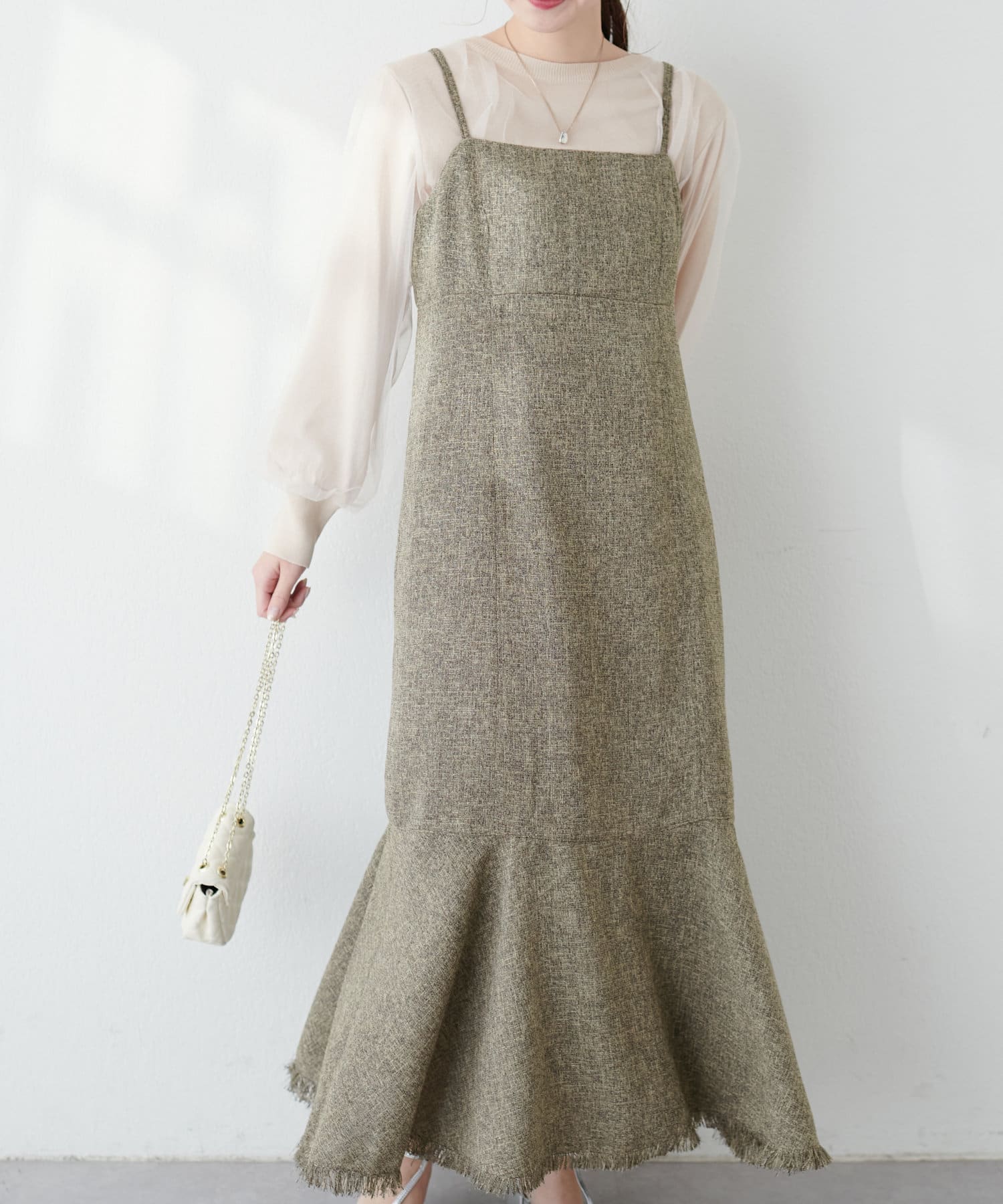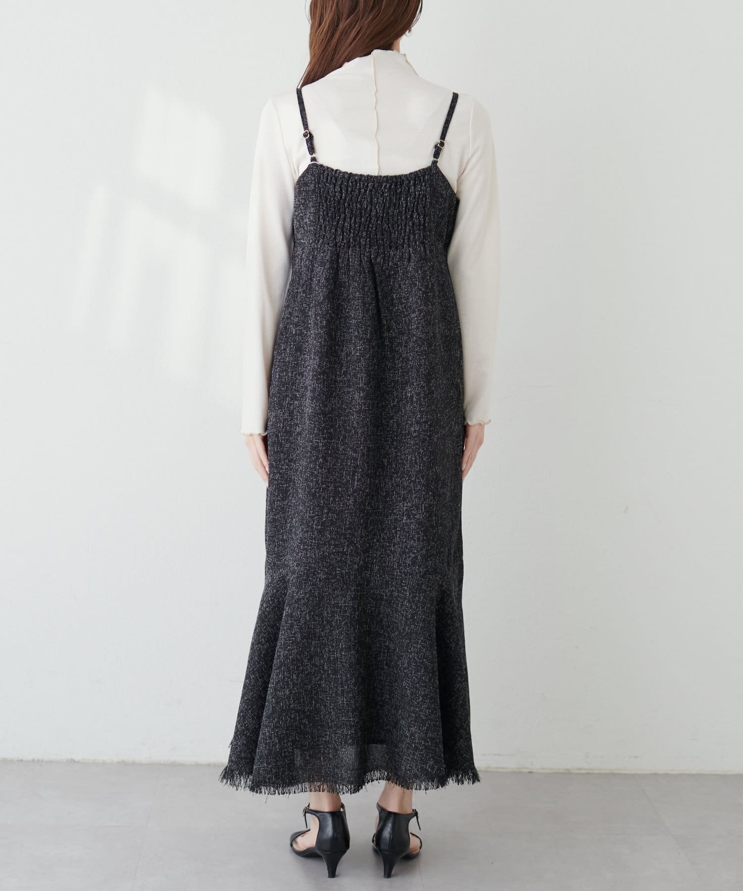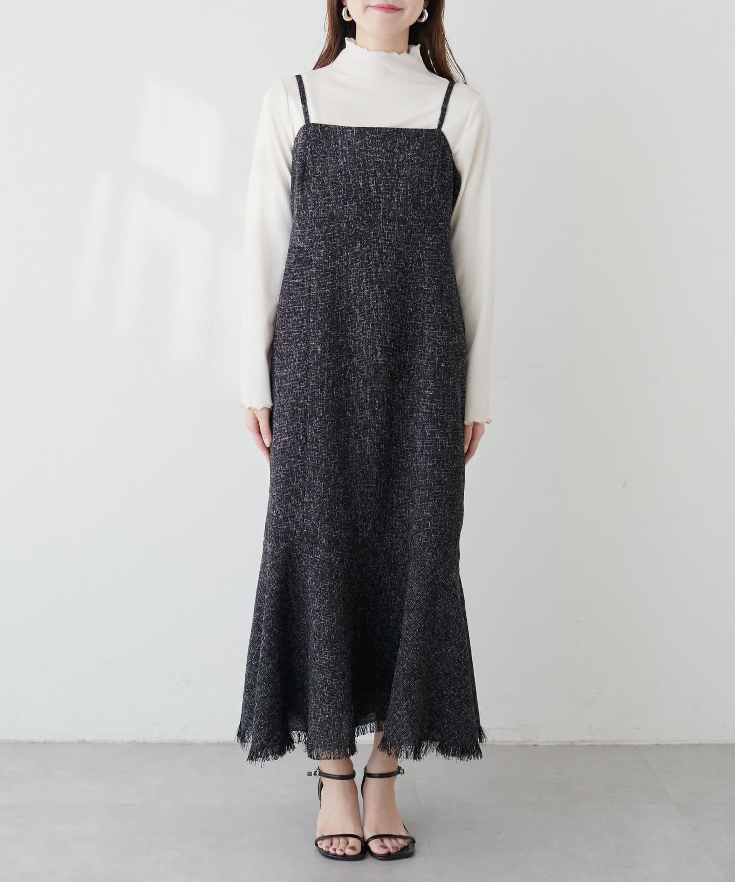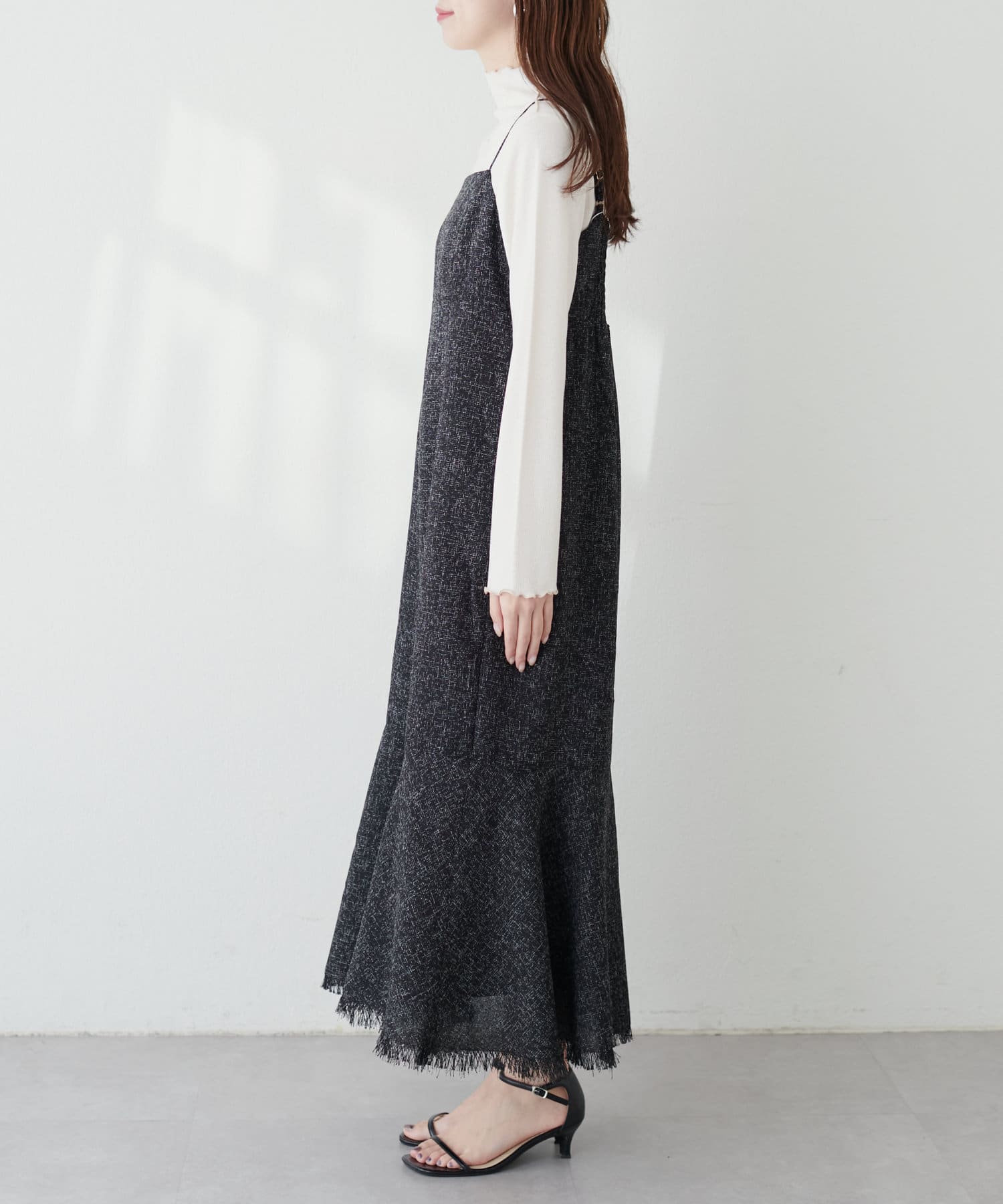 風合い豊かなツイード生地が印象的なキャミワンピース。