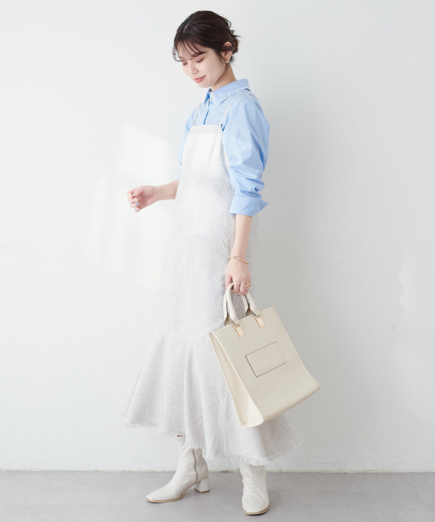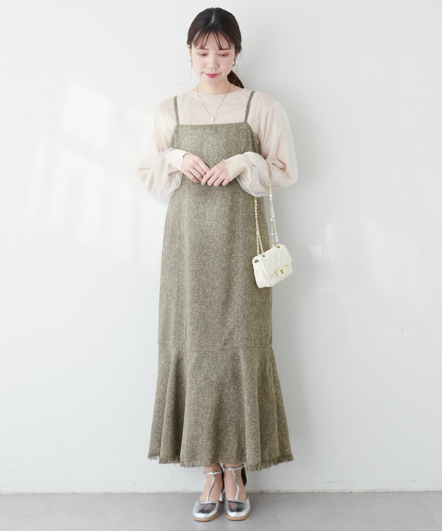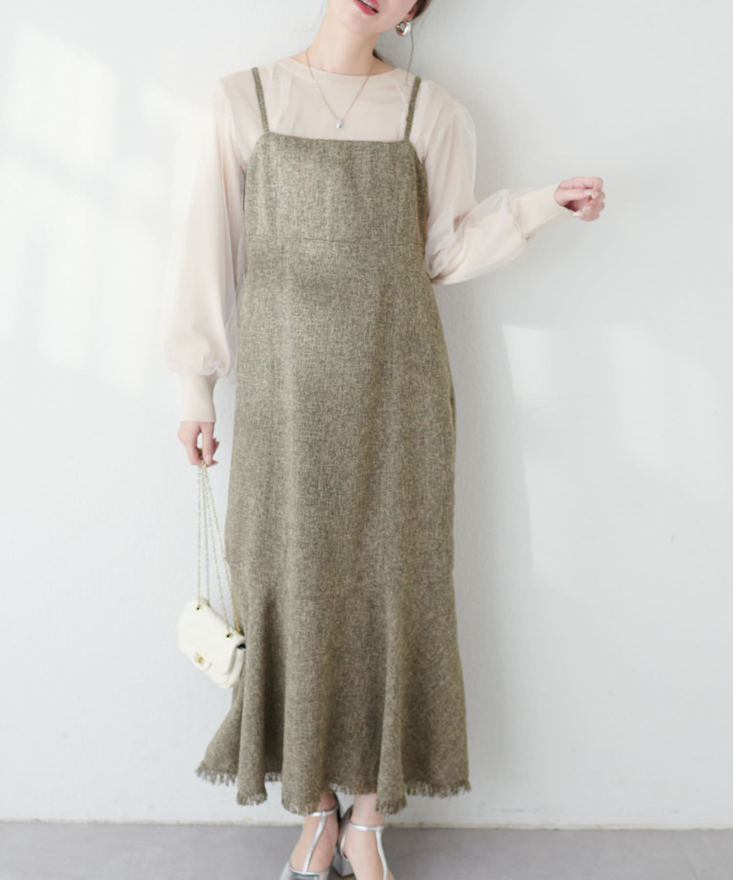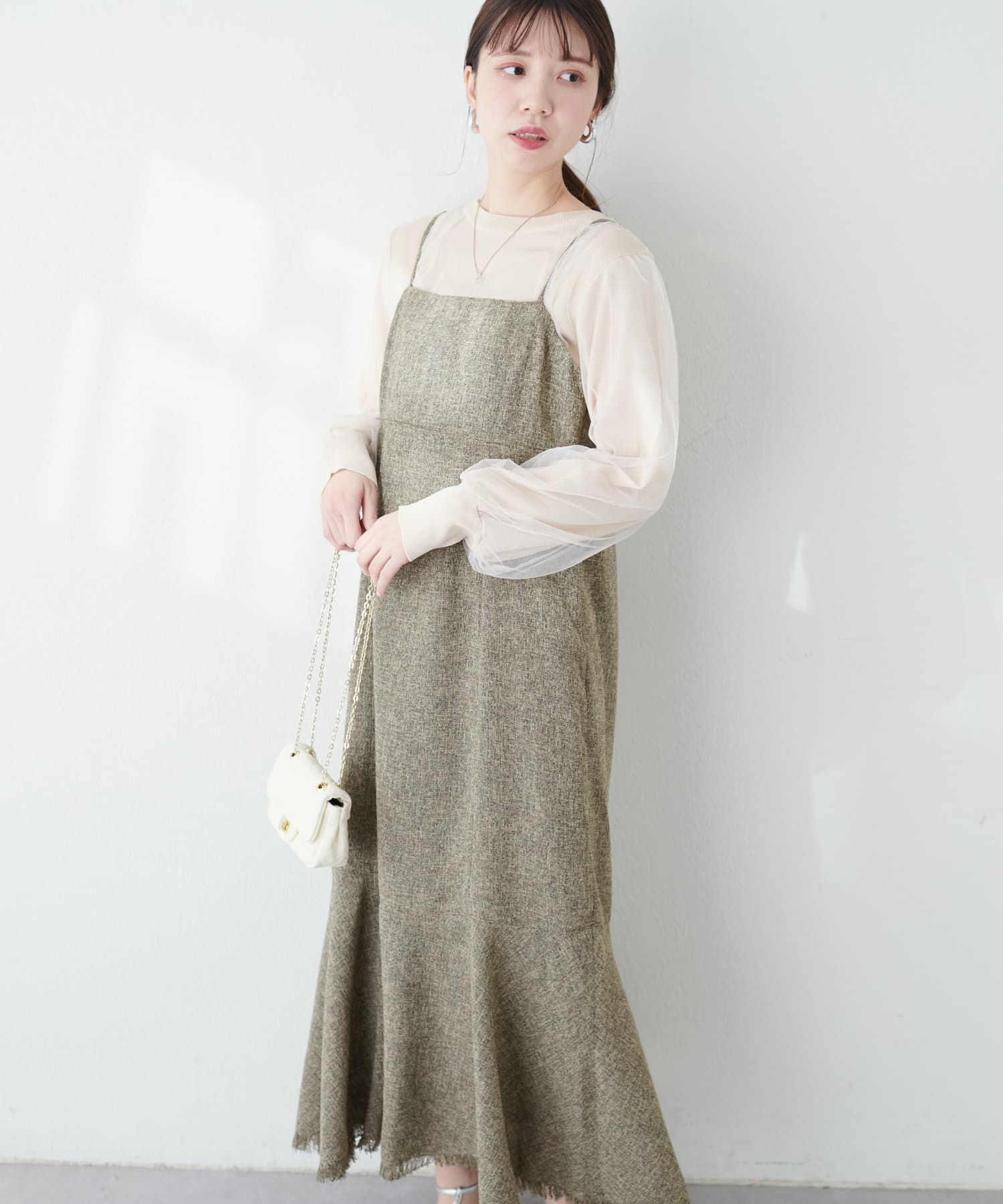風合い豊かなツイード生地が印象的なキャミワンピース。