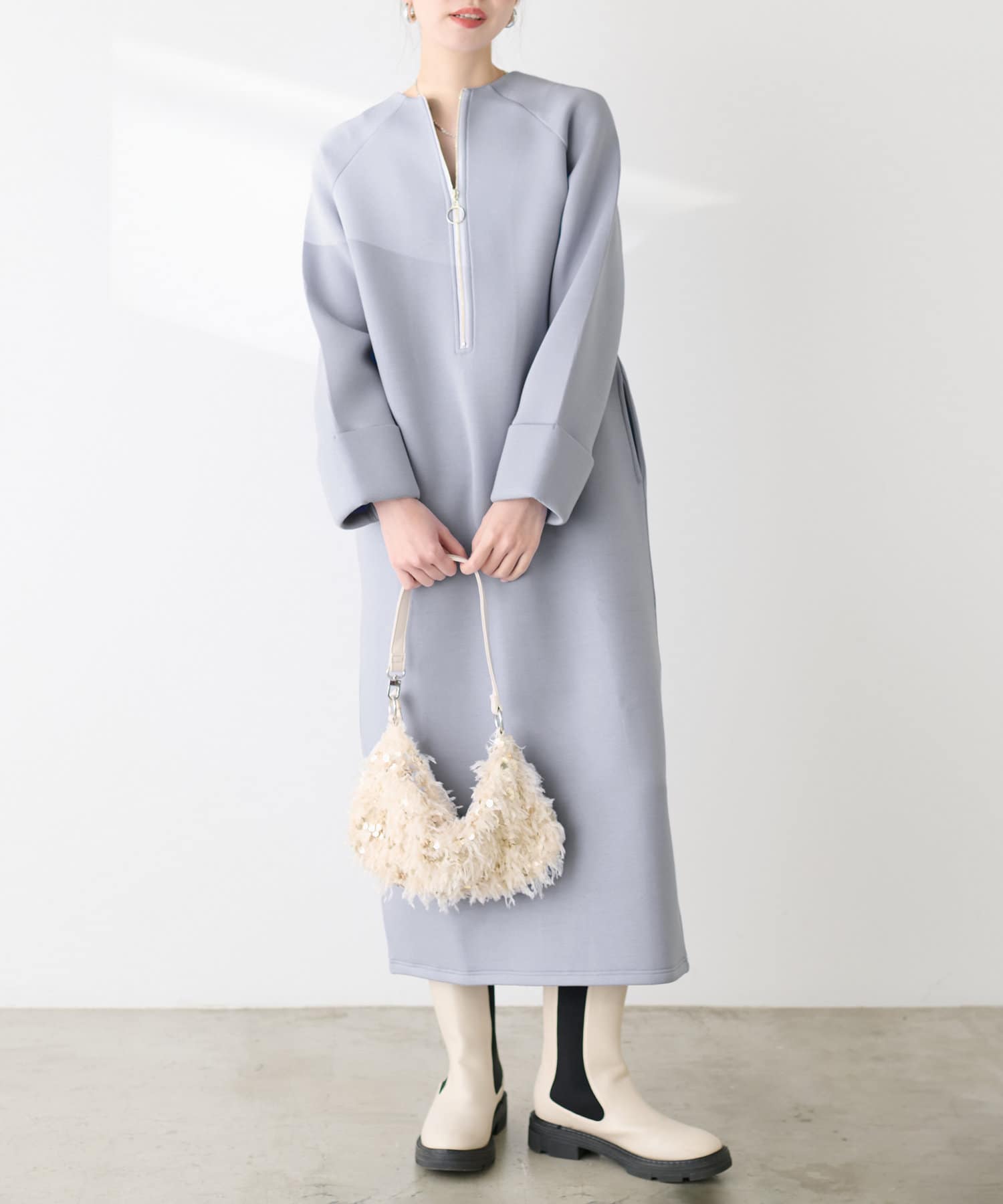 1枚できまる!旬のハーフジップがポイントのワンピース