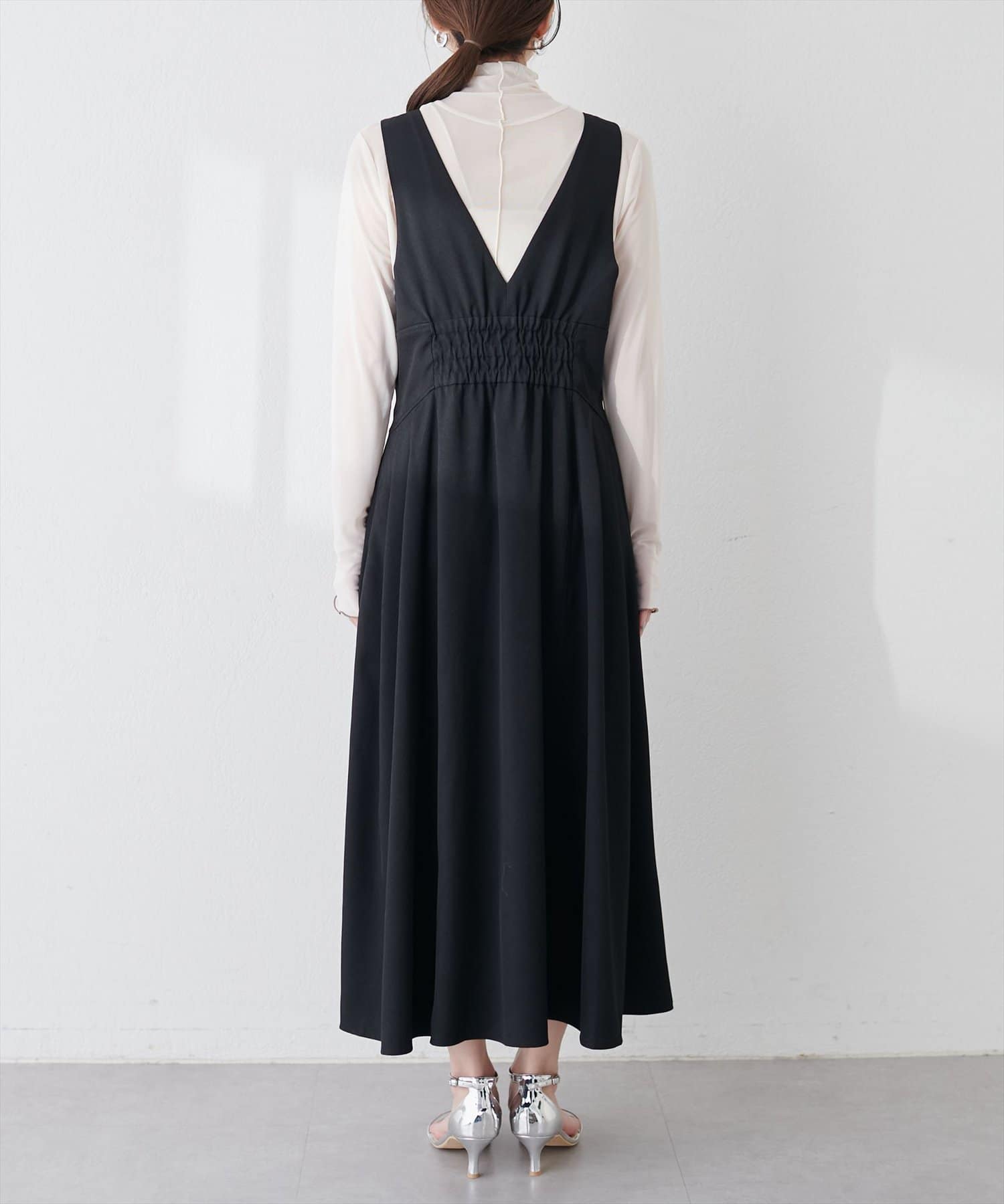 半身のフロントとバックはVになっており、すっきり華奢見せするデザインです◎