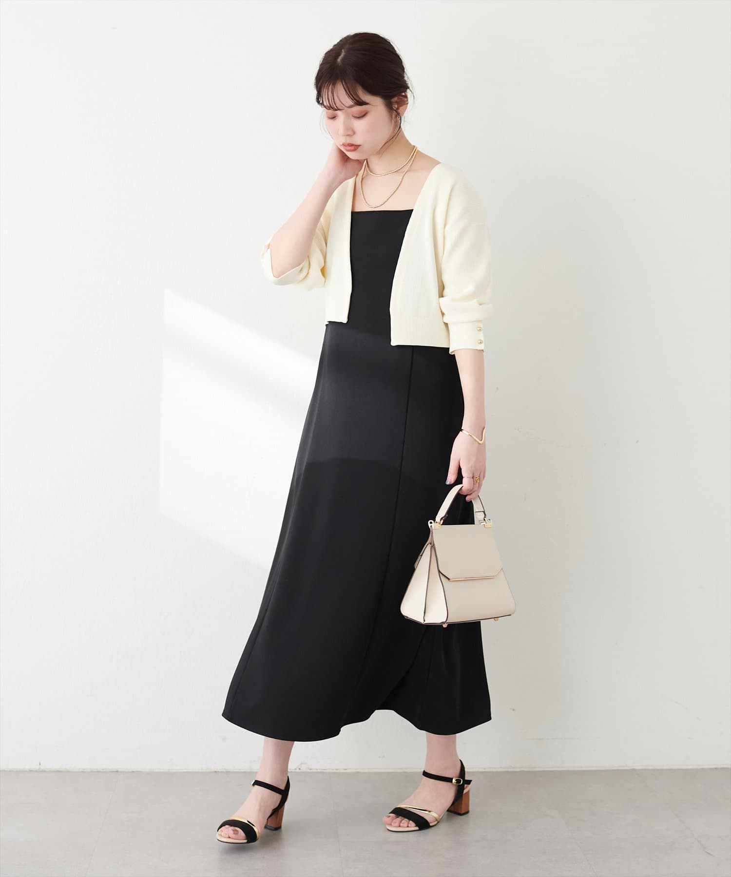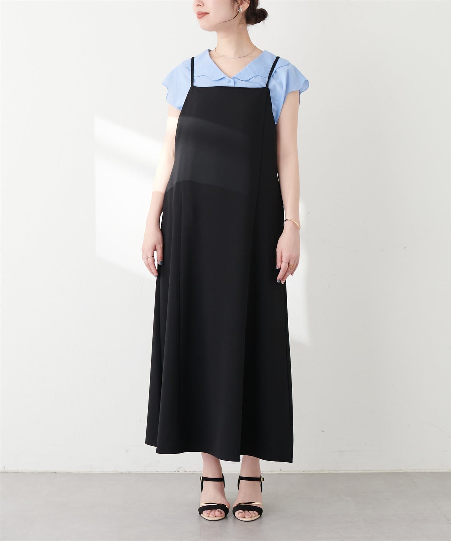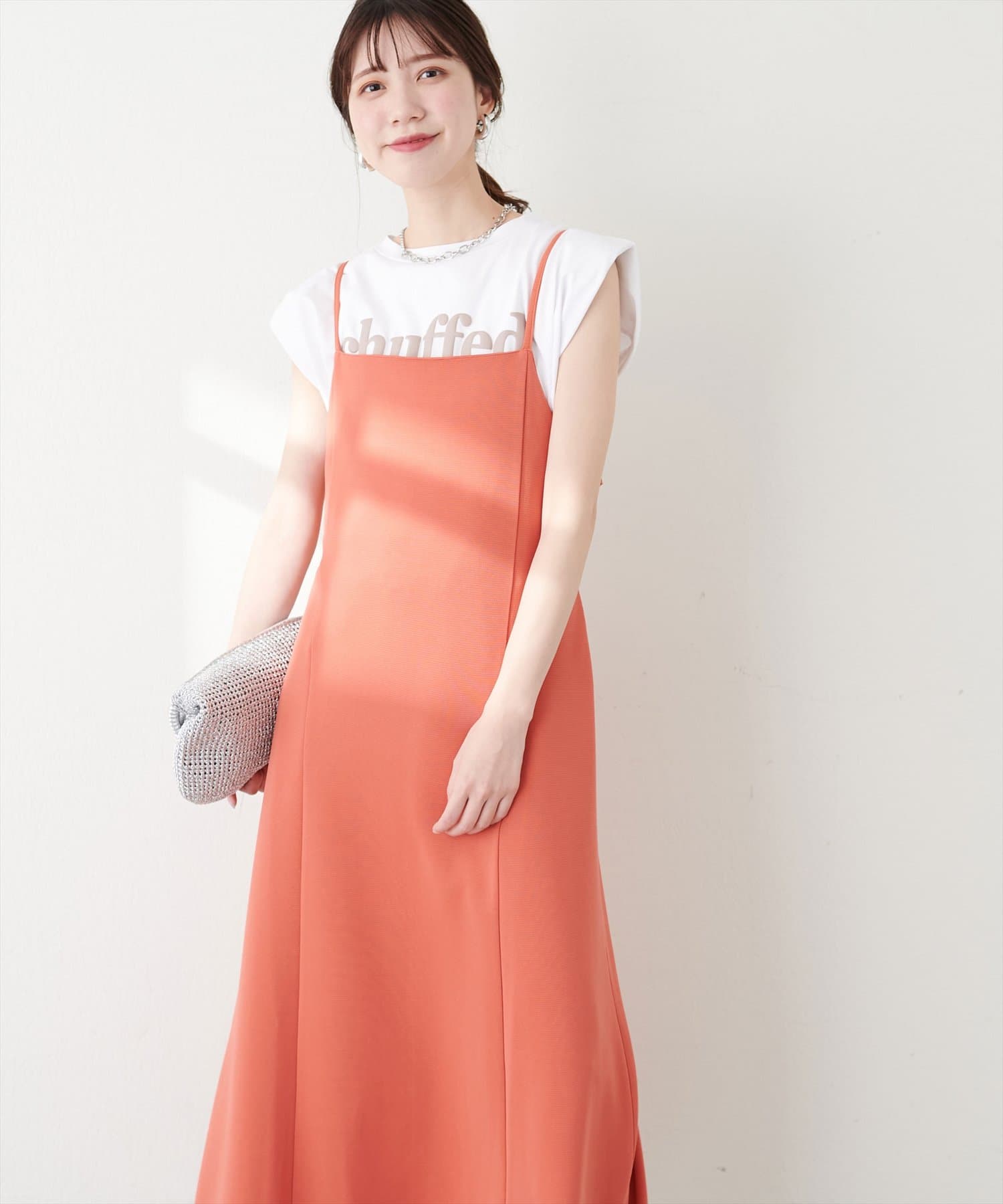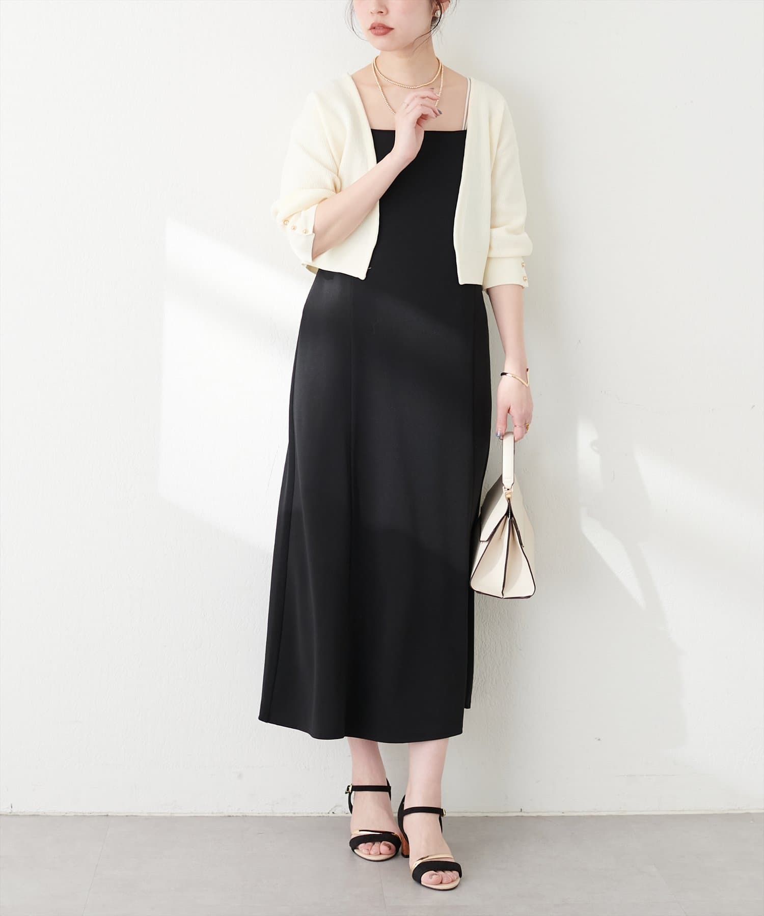 リップル生地で上品な印象に仕上げたキャミワンピース。