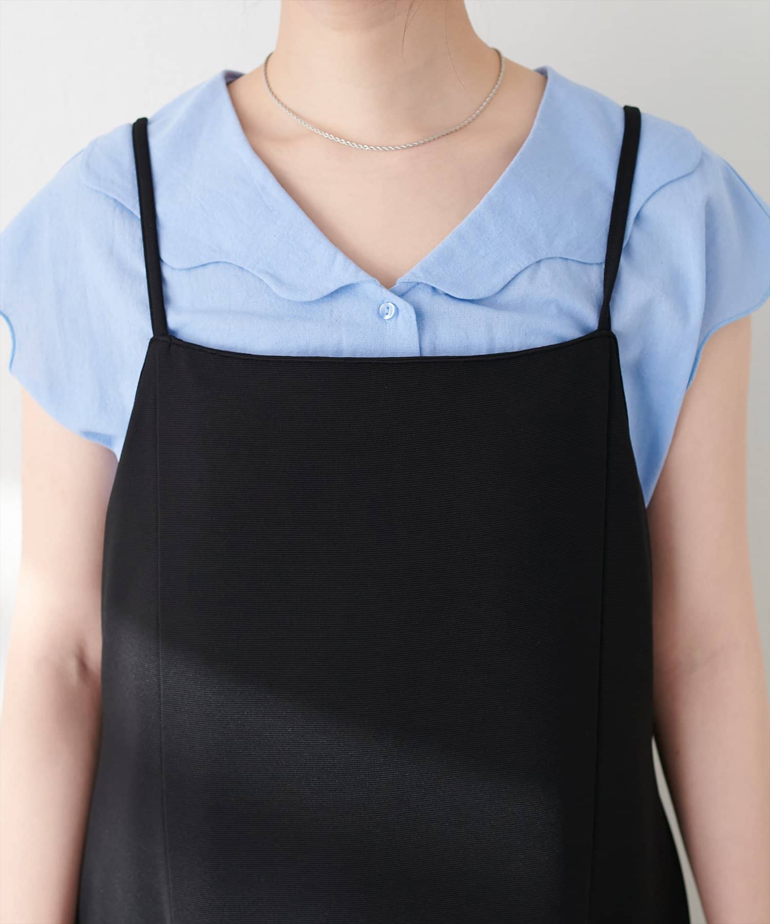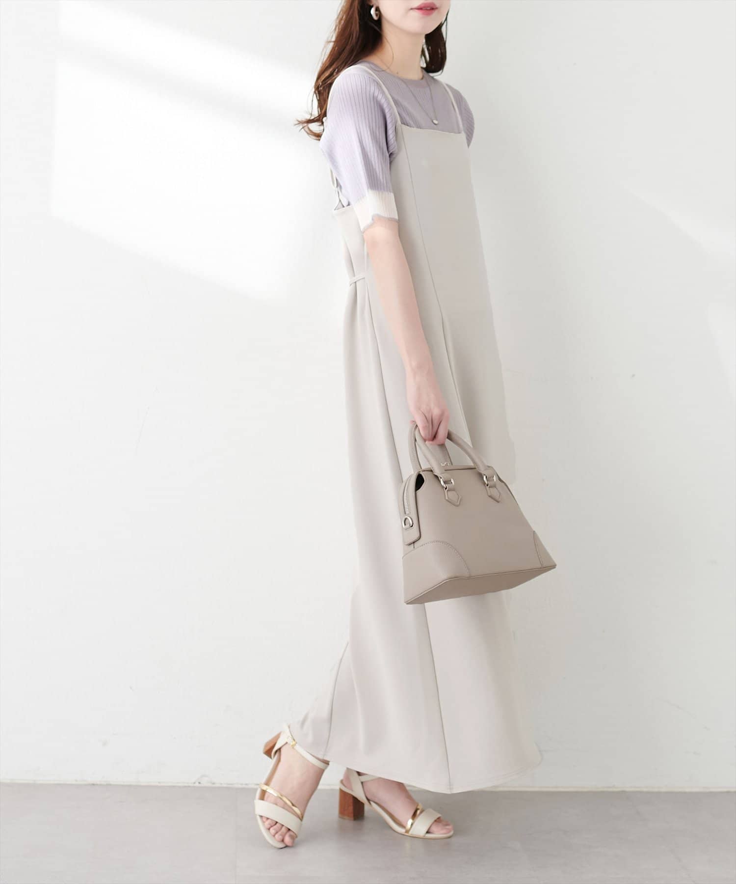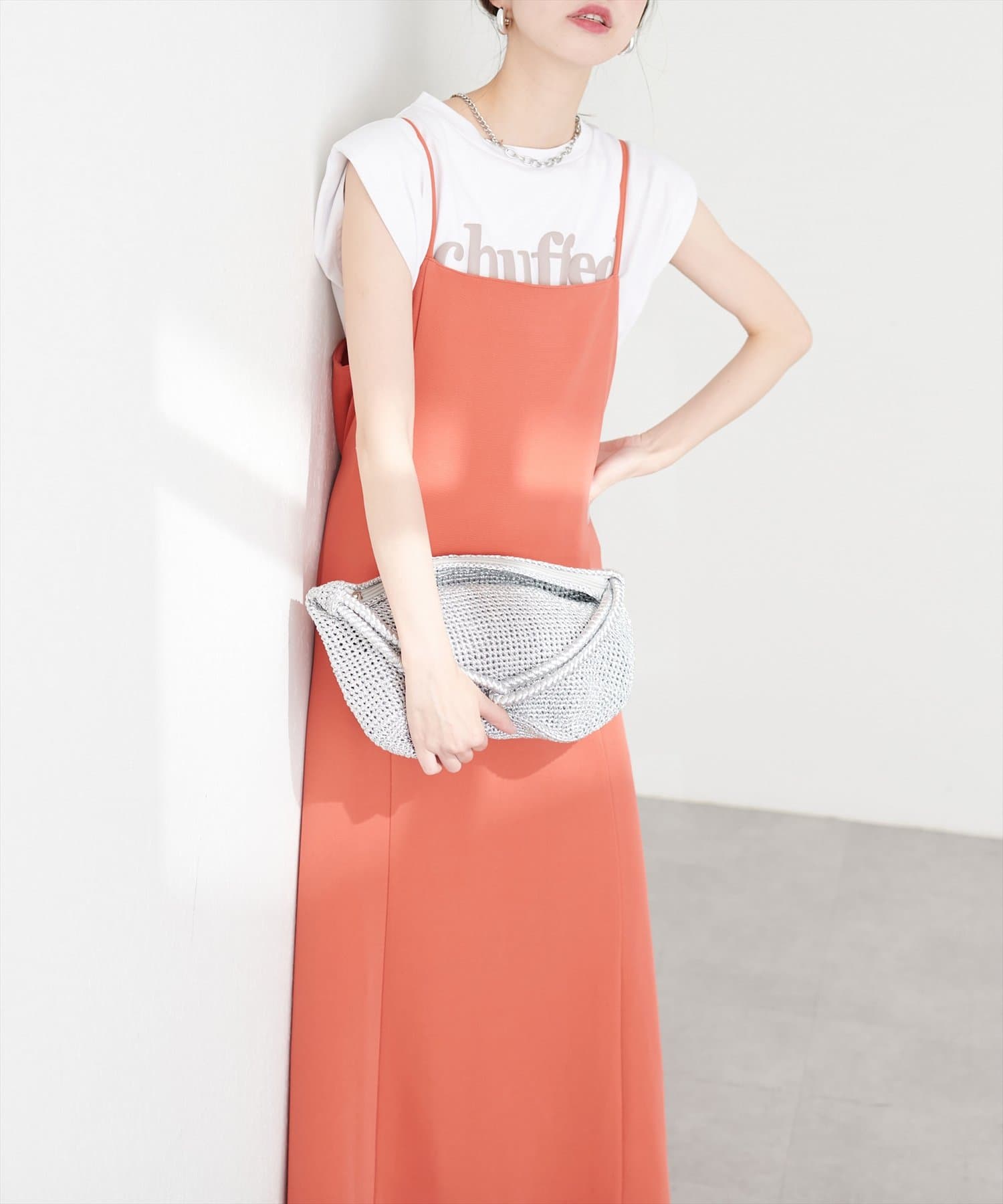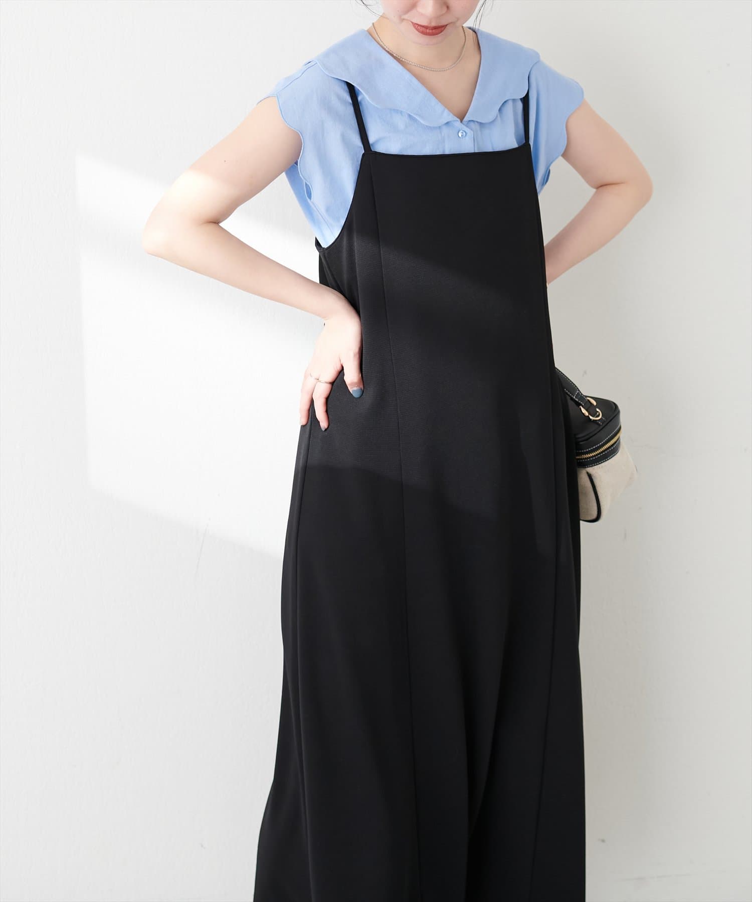 リップル生地で上品な印象に仕上げたキャミワンピース。