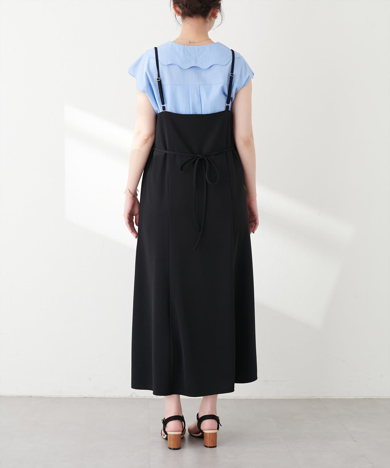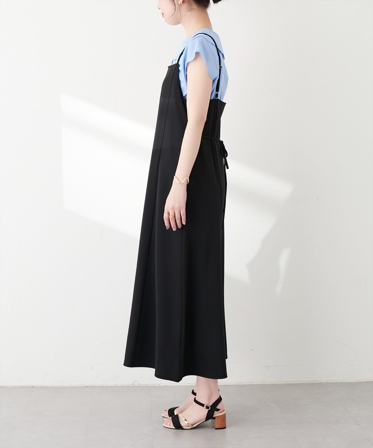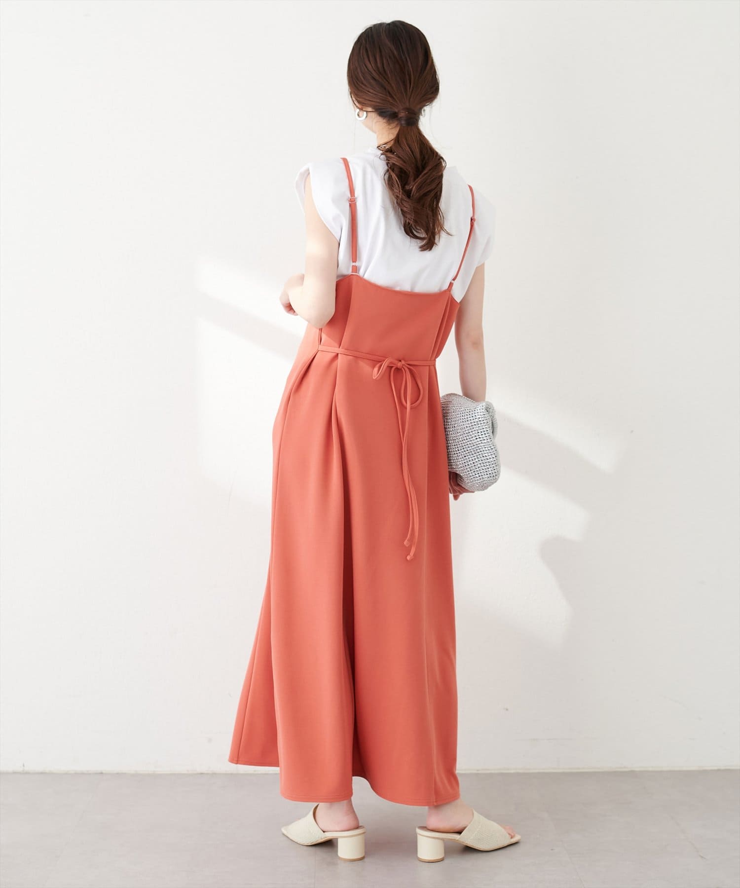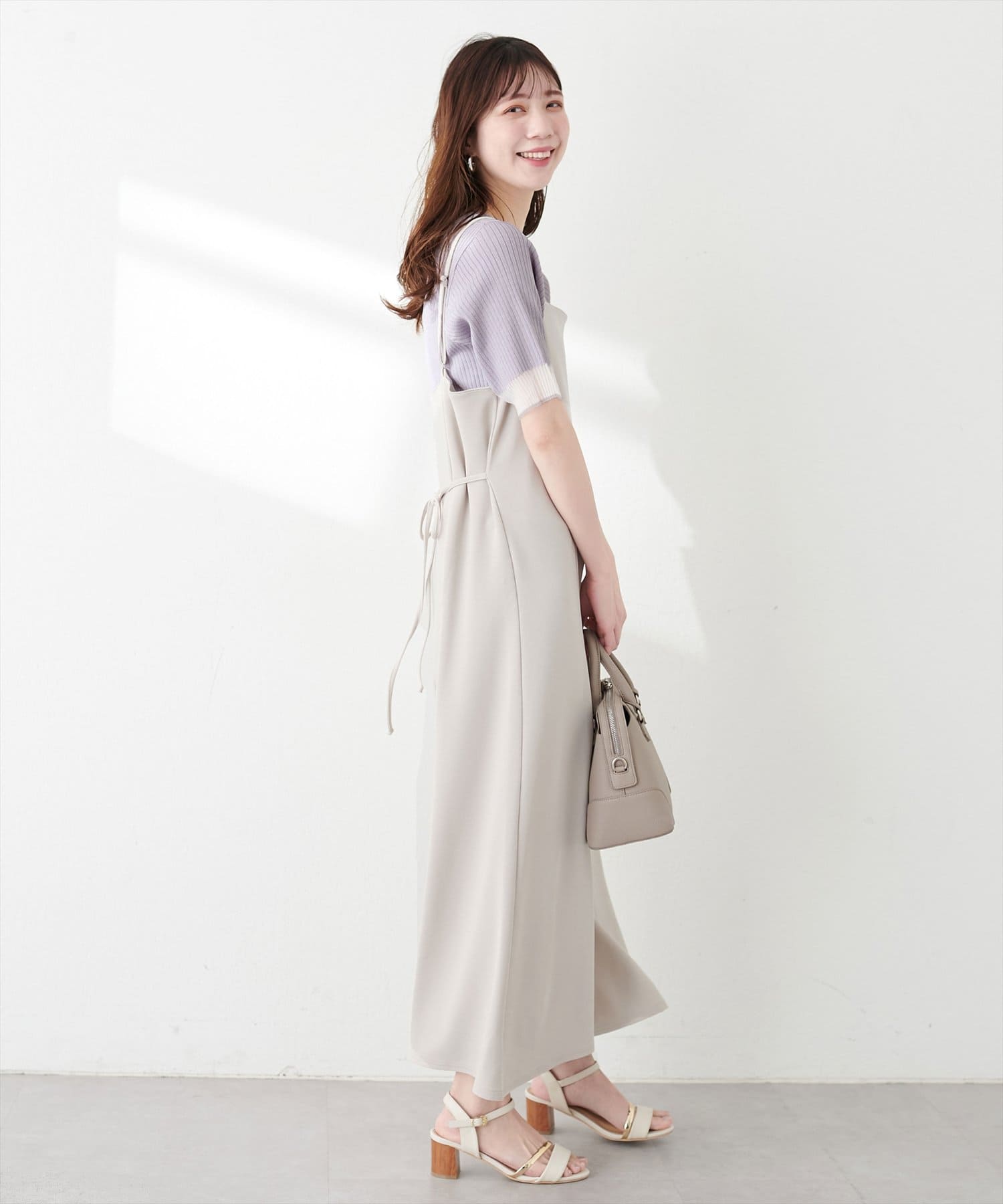 サイドのリボンを後ろで結べば自然にウエストがマークされスタイルアップ効果も。