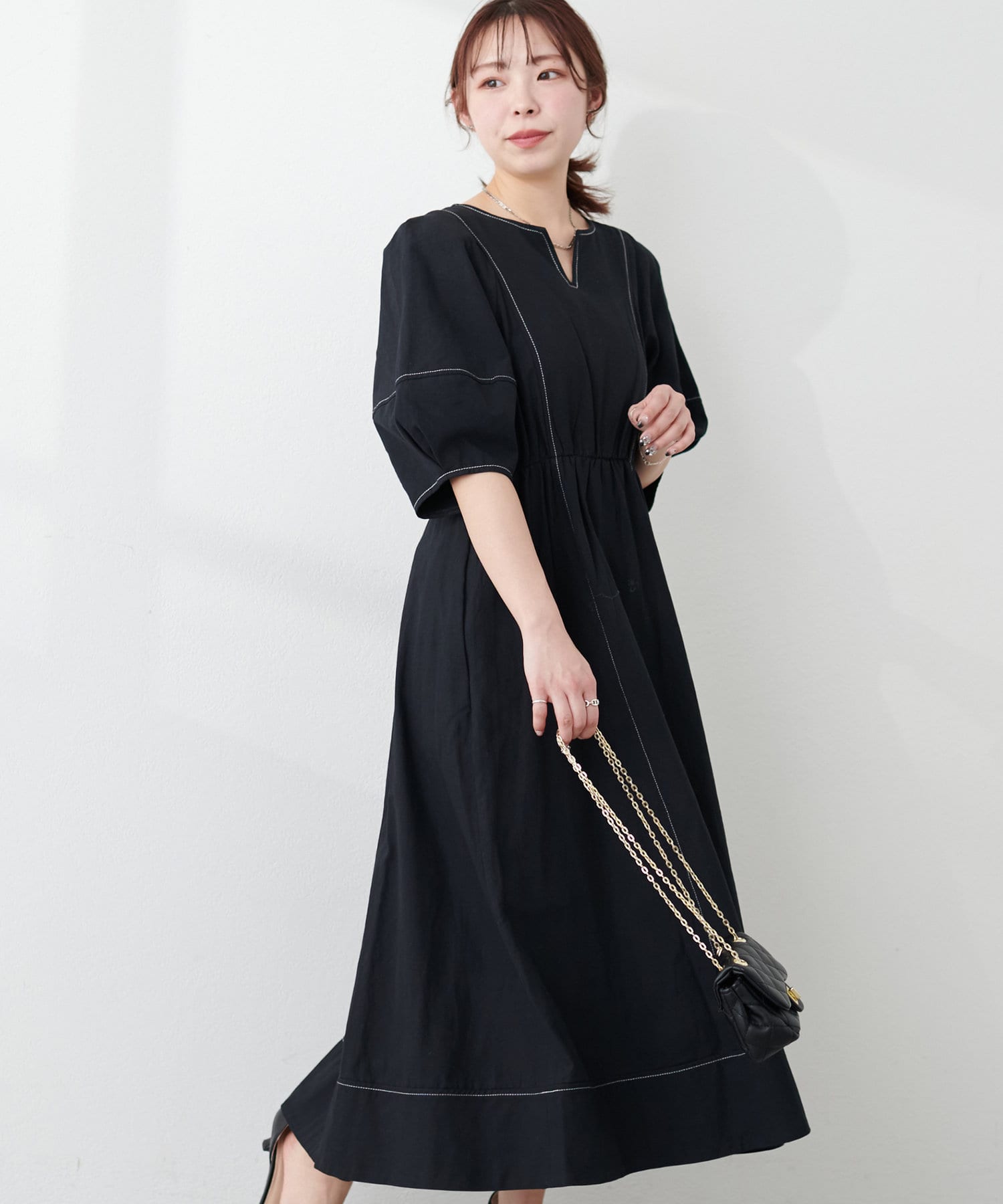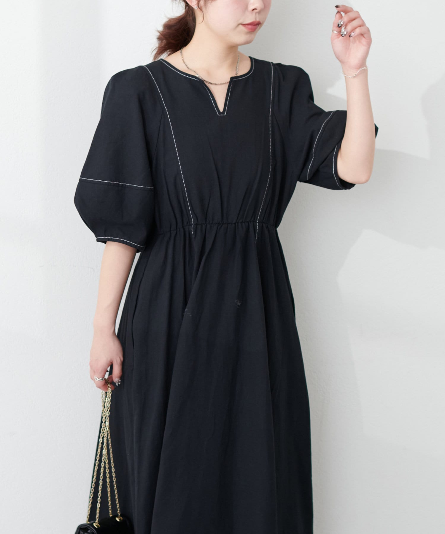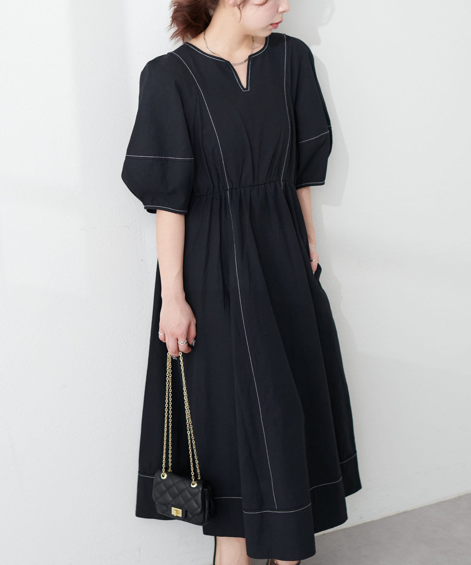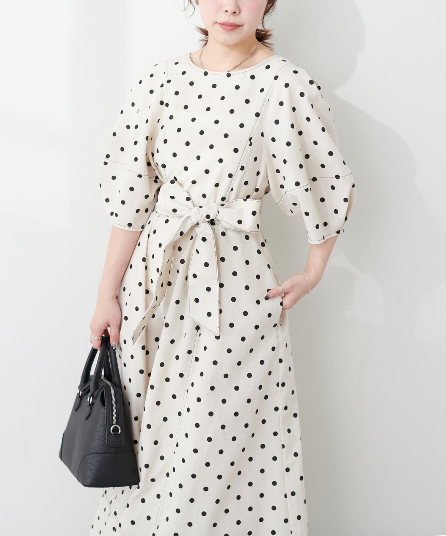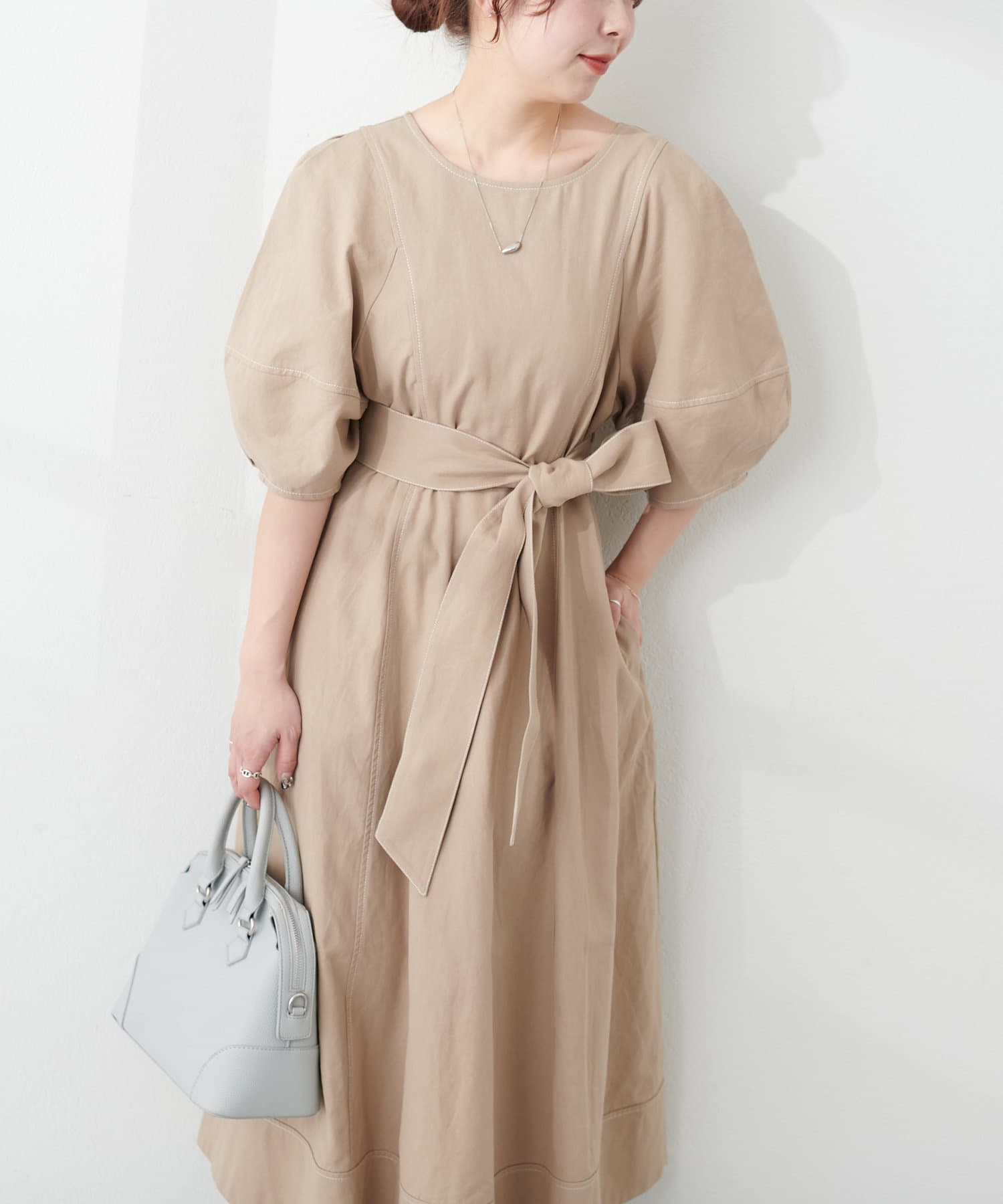 0341090230 ランタンスリーブワンピース