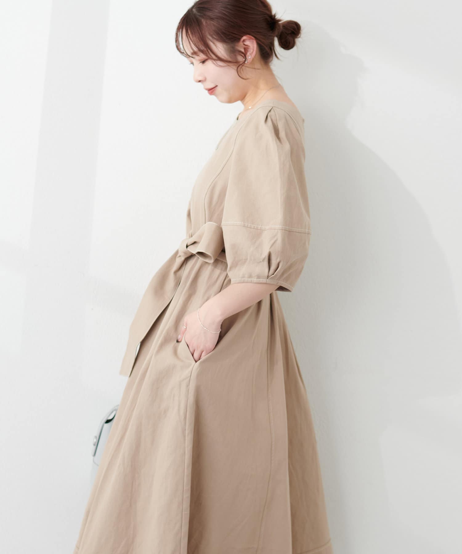 お好みでウエストリボンでマークし、スタイルアップな着こなしも楽しんで頂けます。