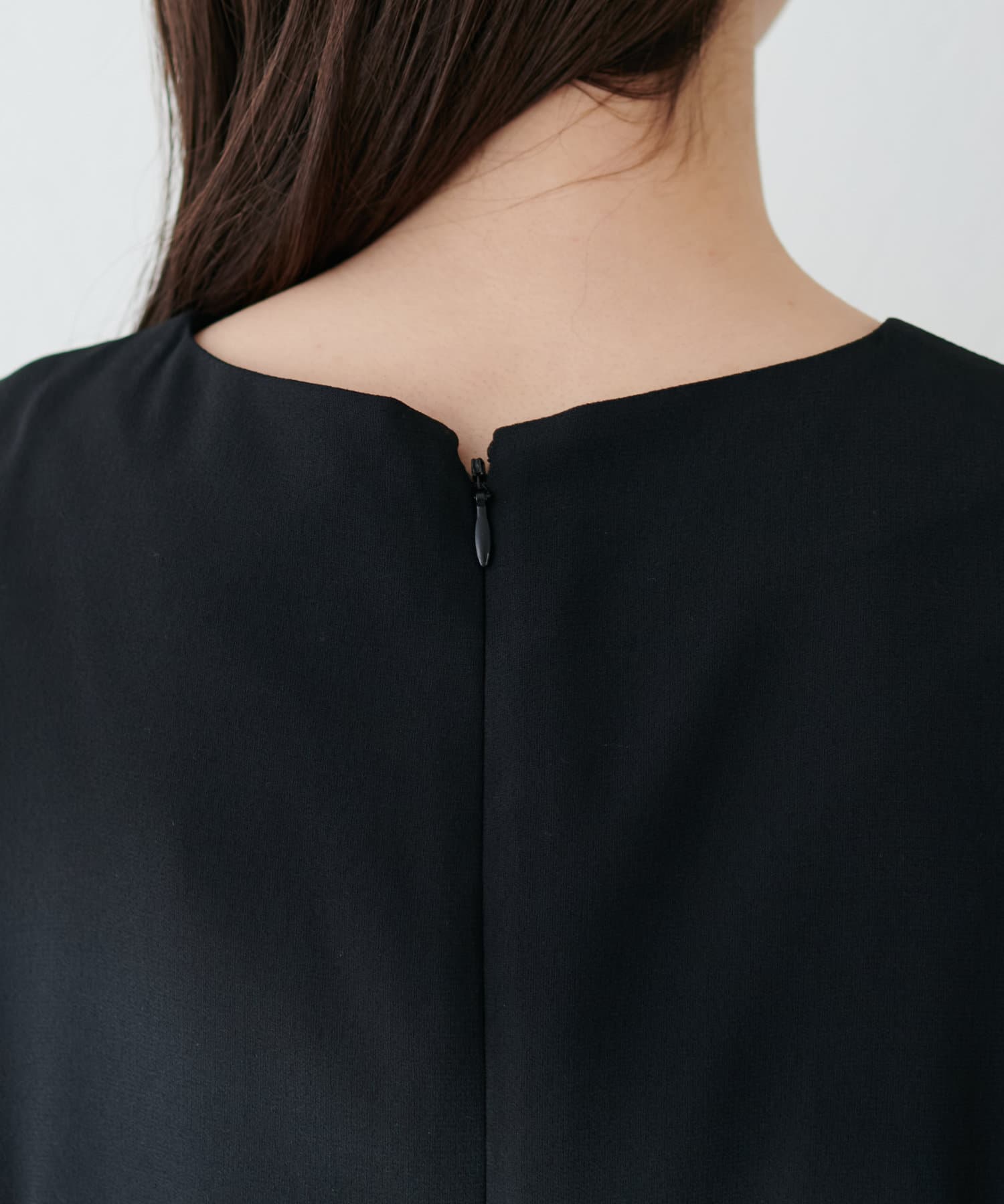 ボディは落ち感のある生地を使用し、ストンとしたシルエットで身体のラインを拾いにくく、体形カバーもばっちり。