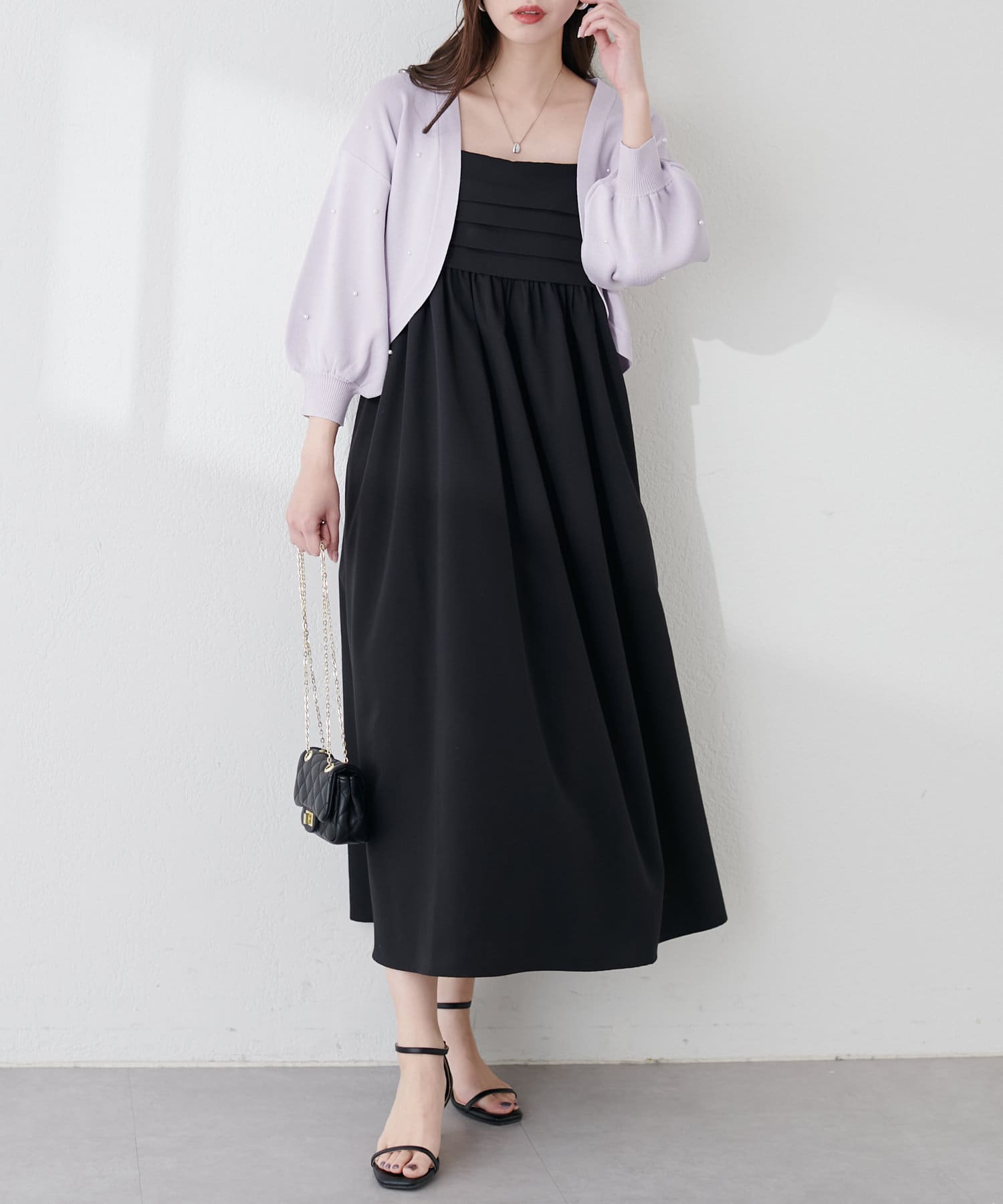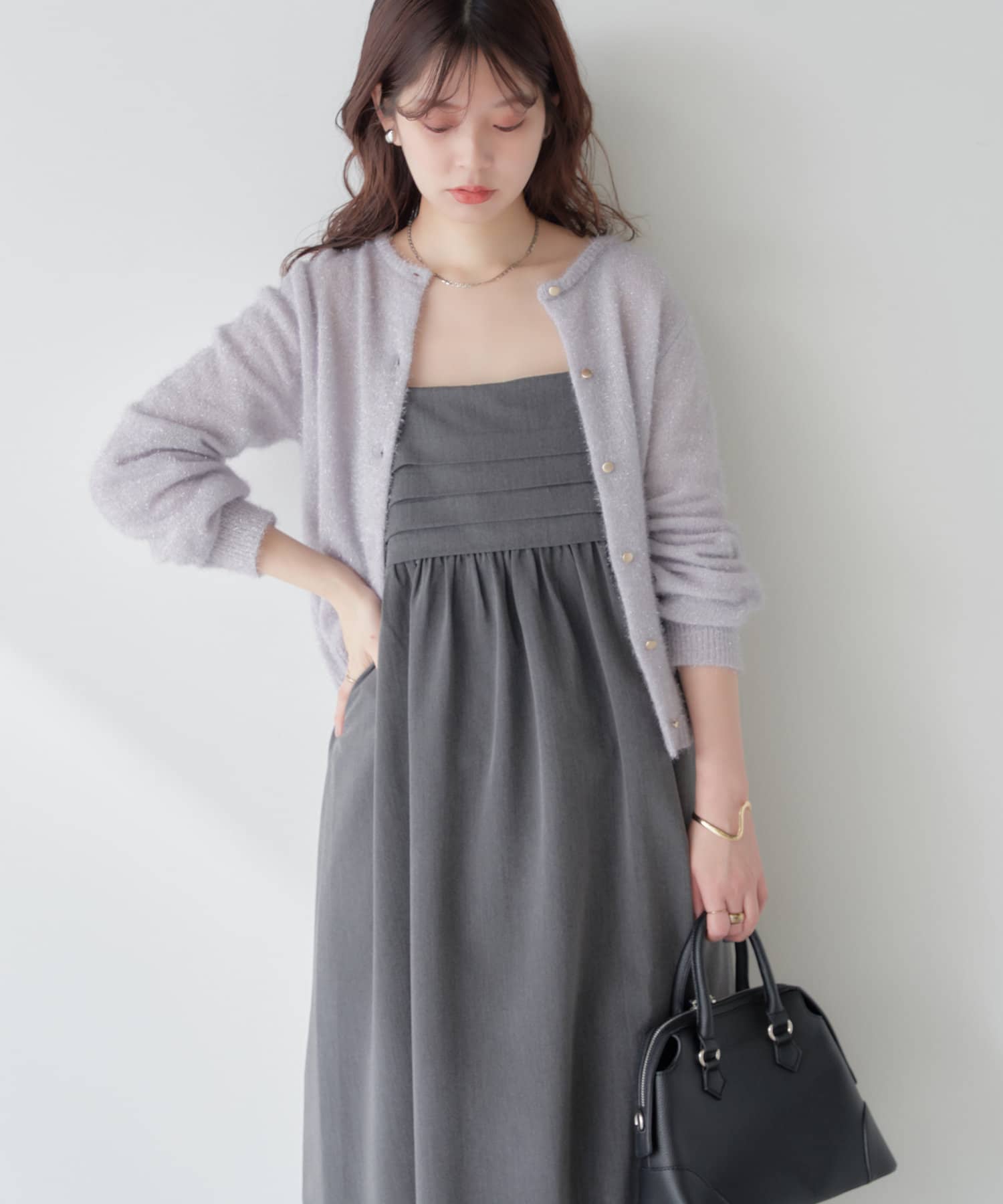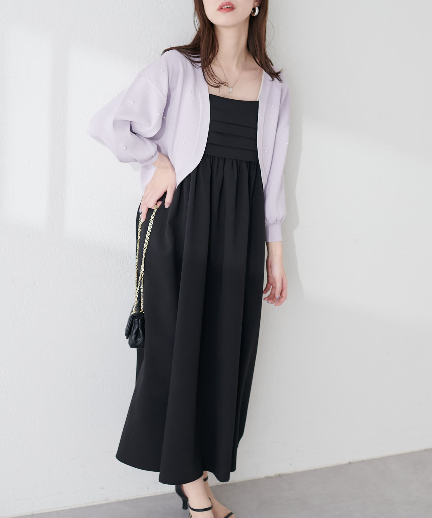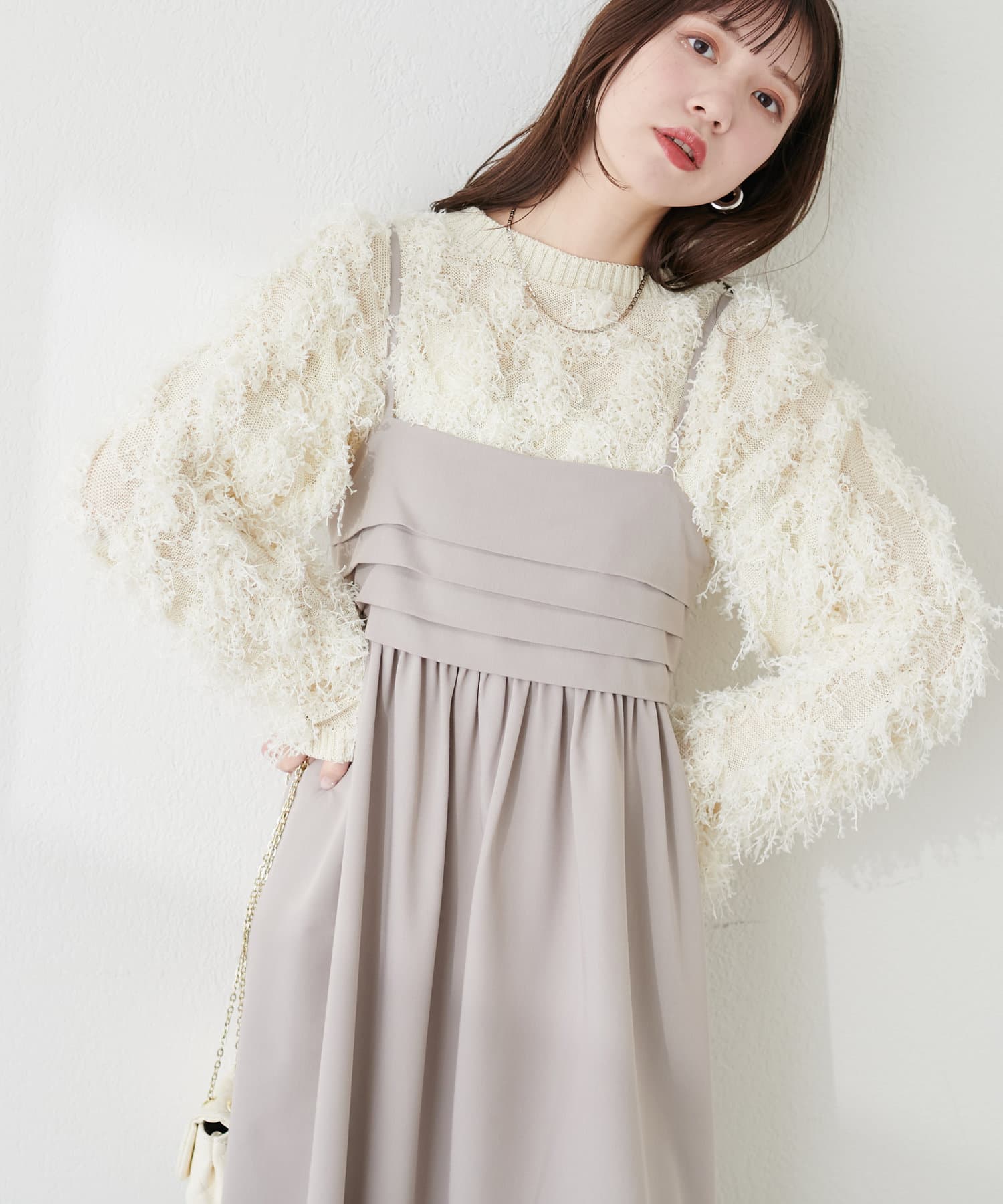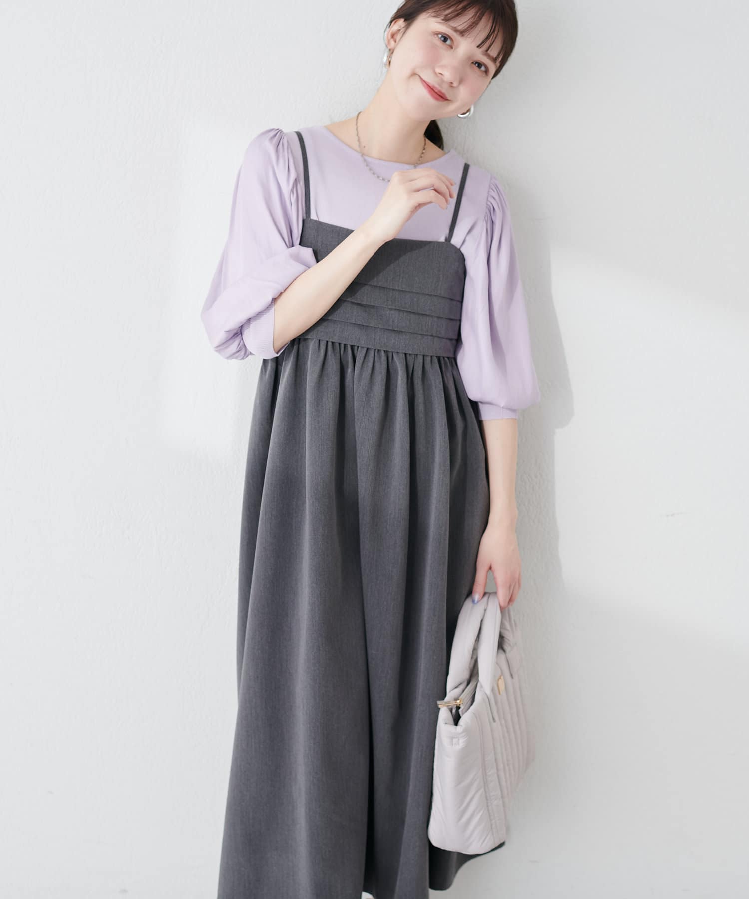 胸元のタックデザインがポイントのキャミワンピース。