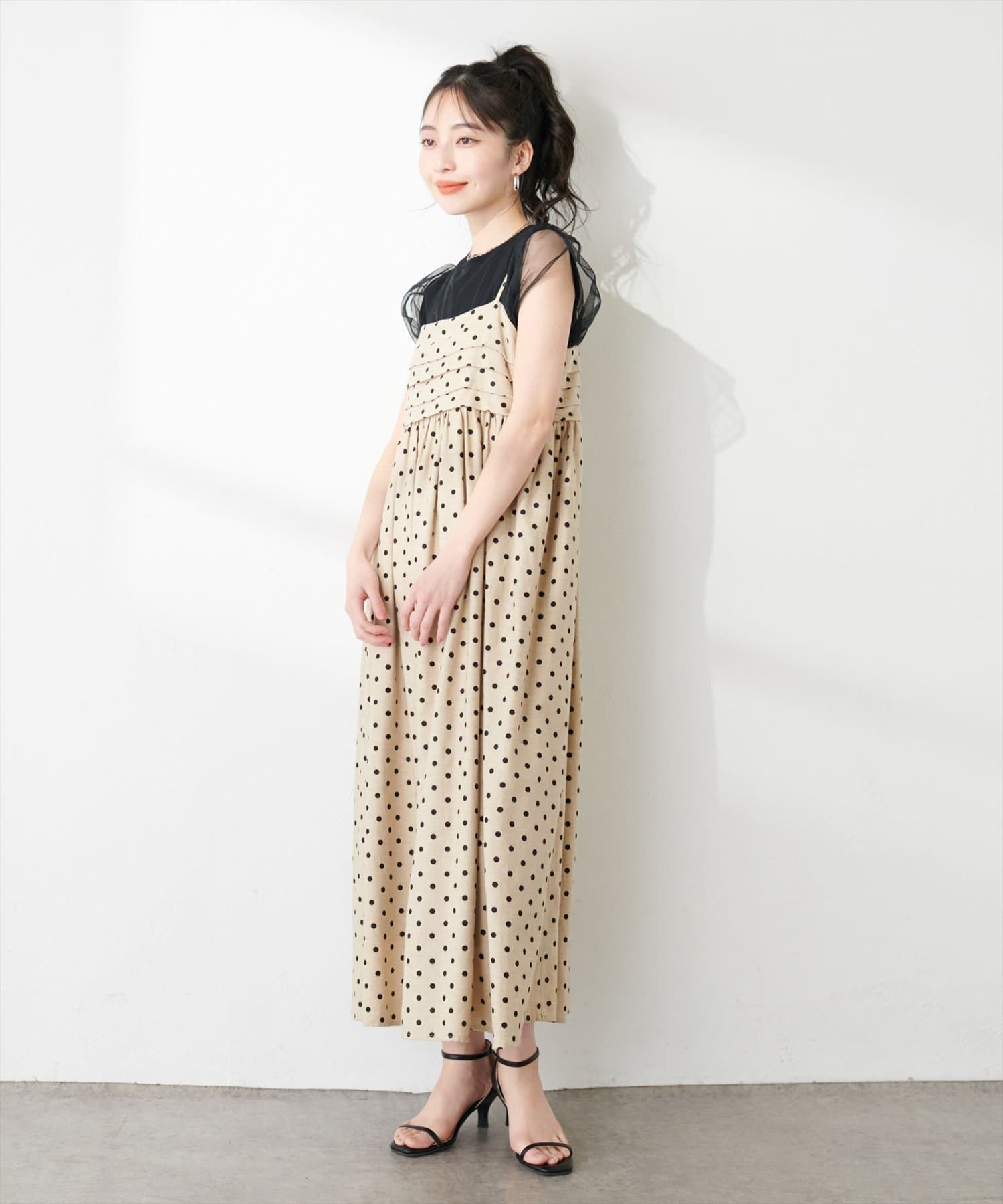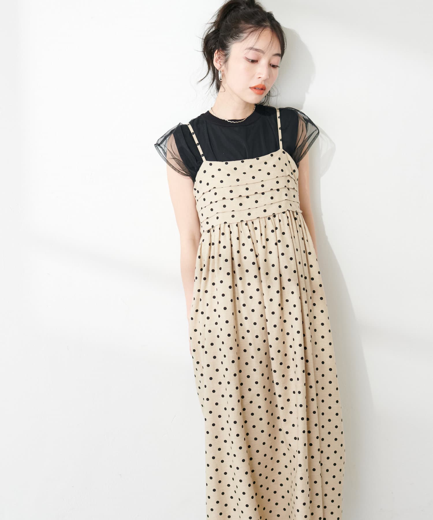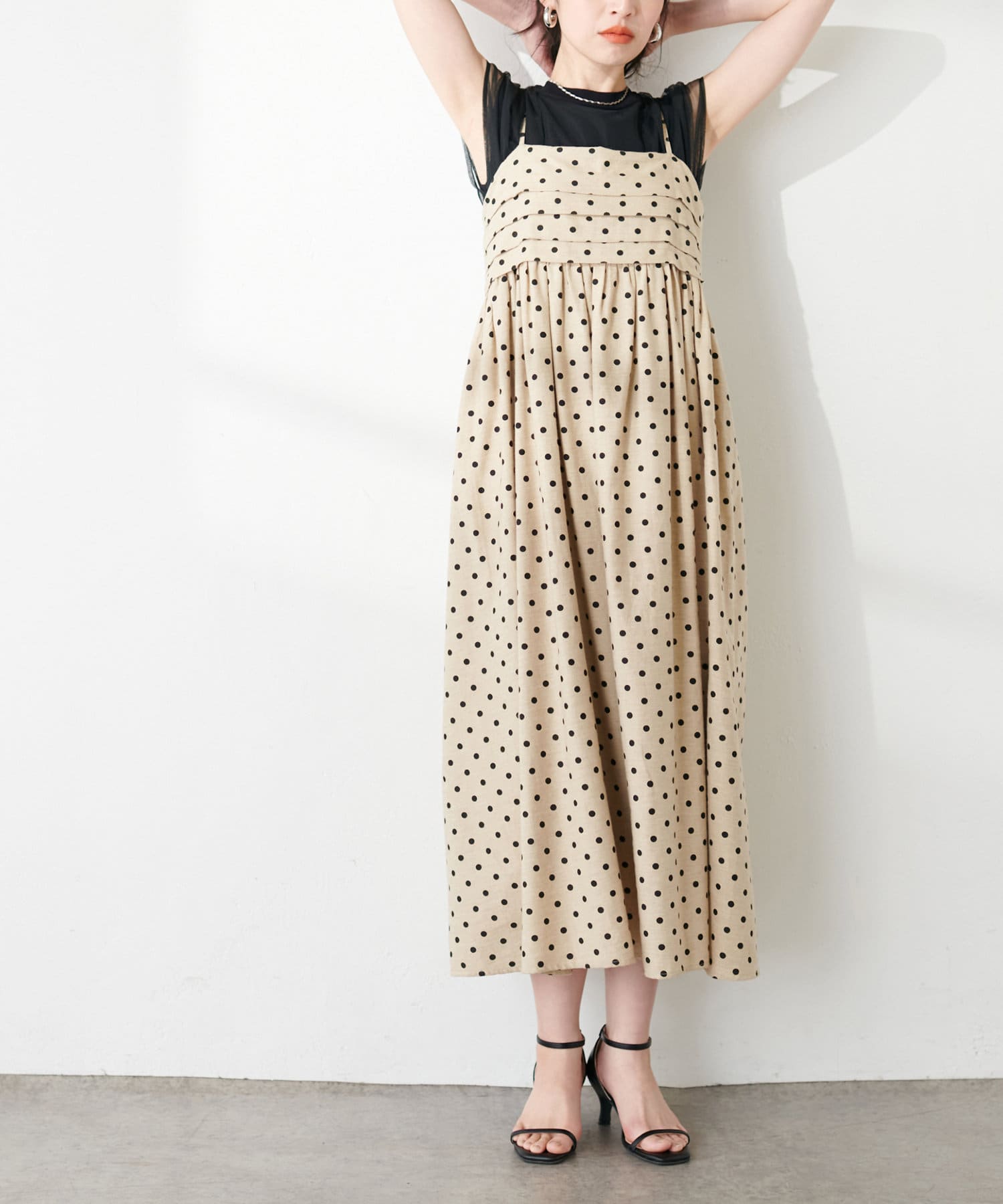 タックデザインがポイントのキャミワンピース