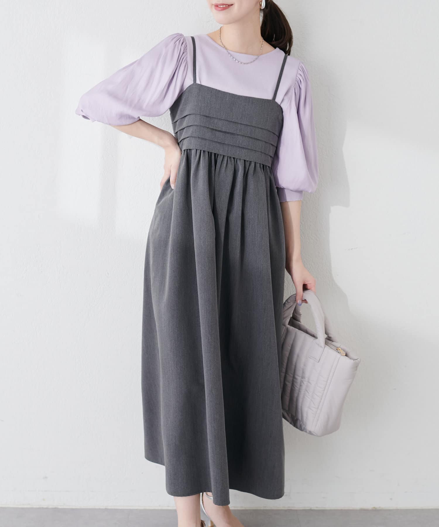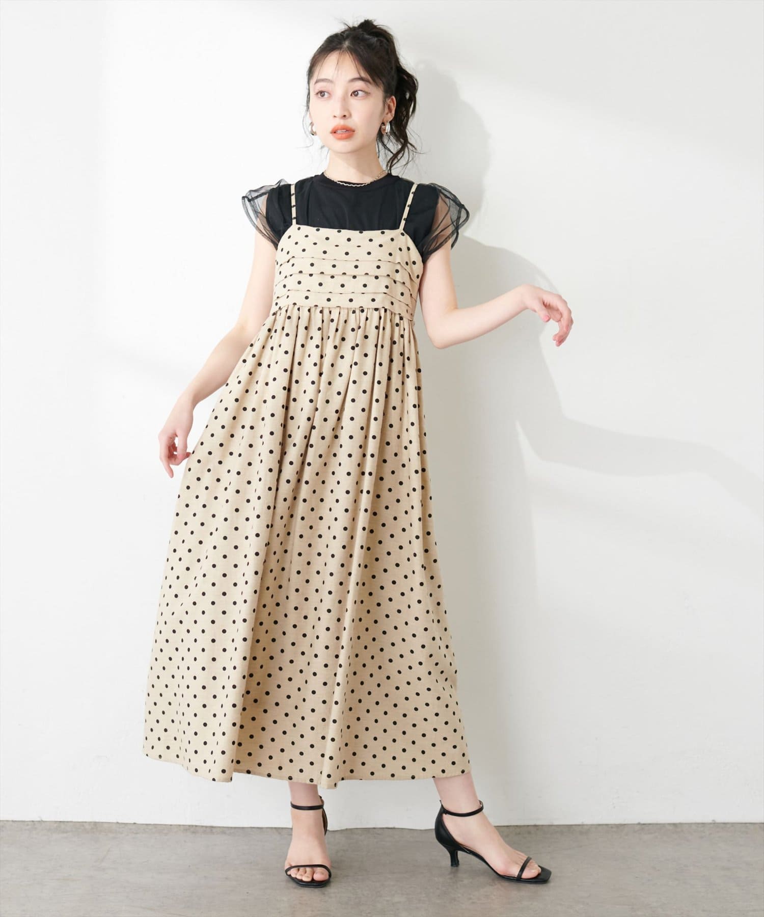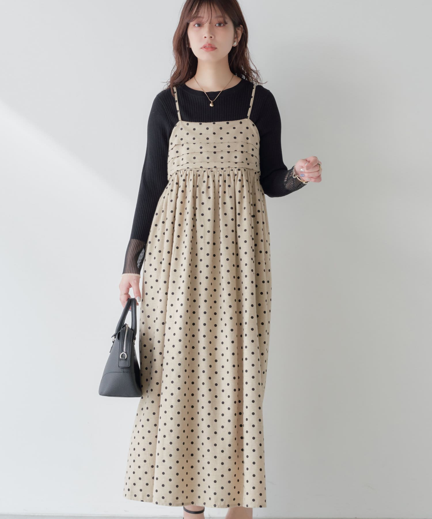 タックデザインがポイントのキャミワンピース