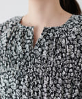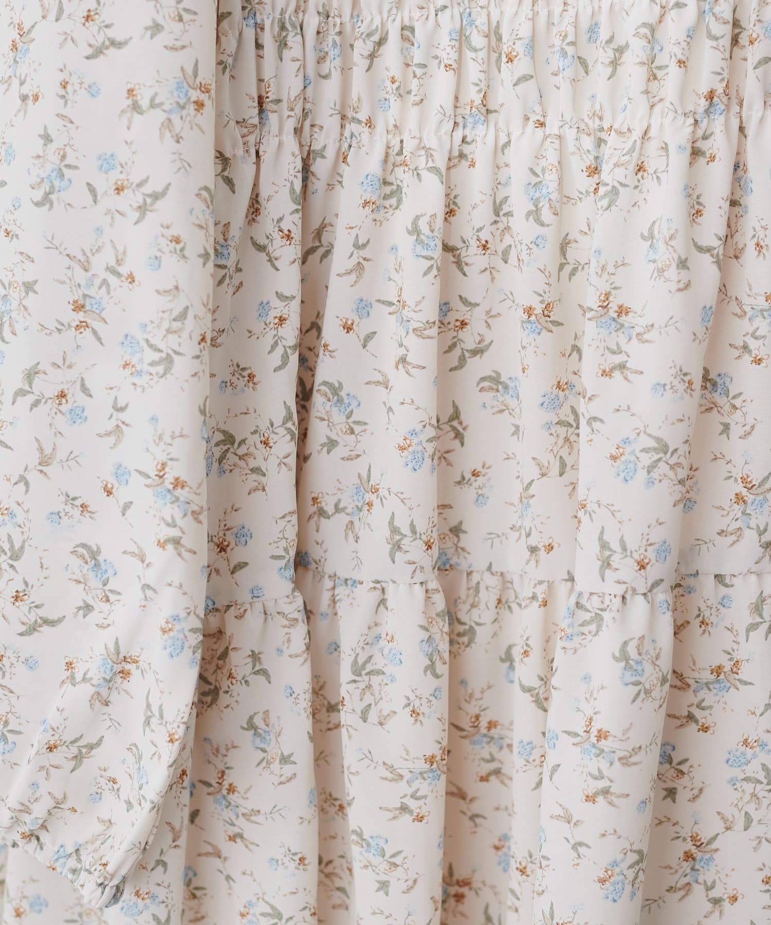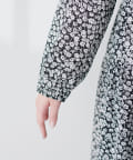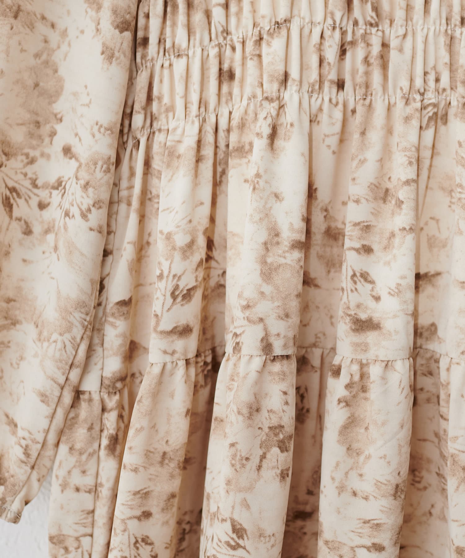 見頃部分のシャーリングと裾にむかってフワッと広がるシルエットでキレイなラインに。