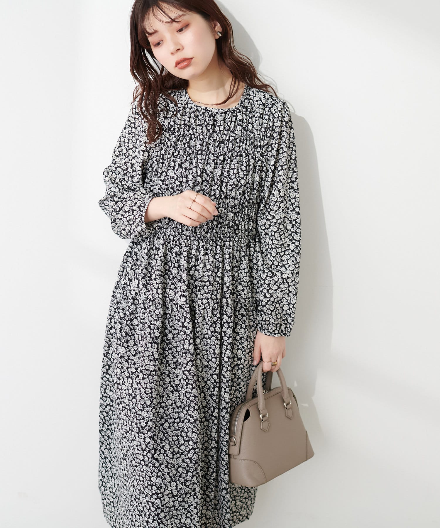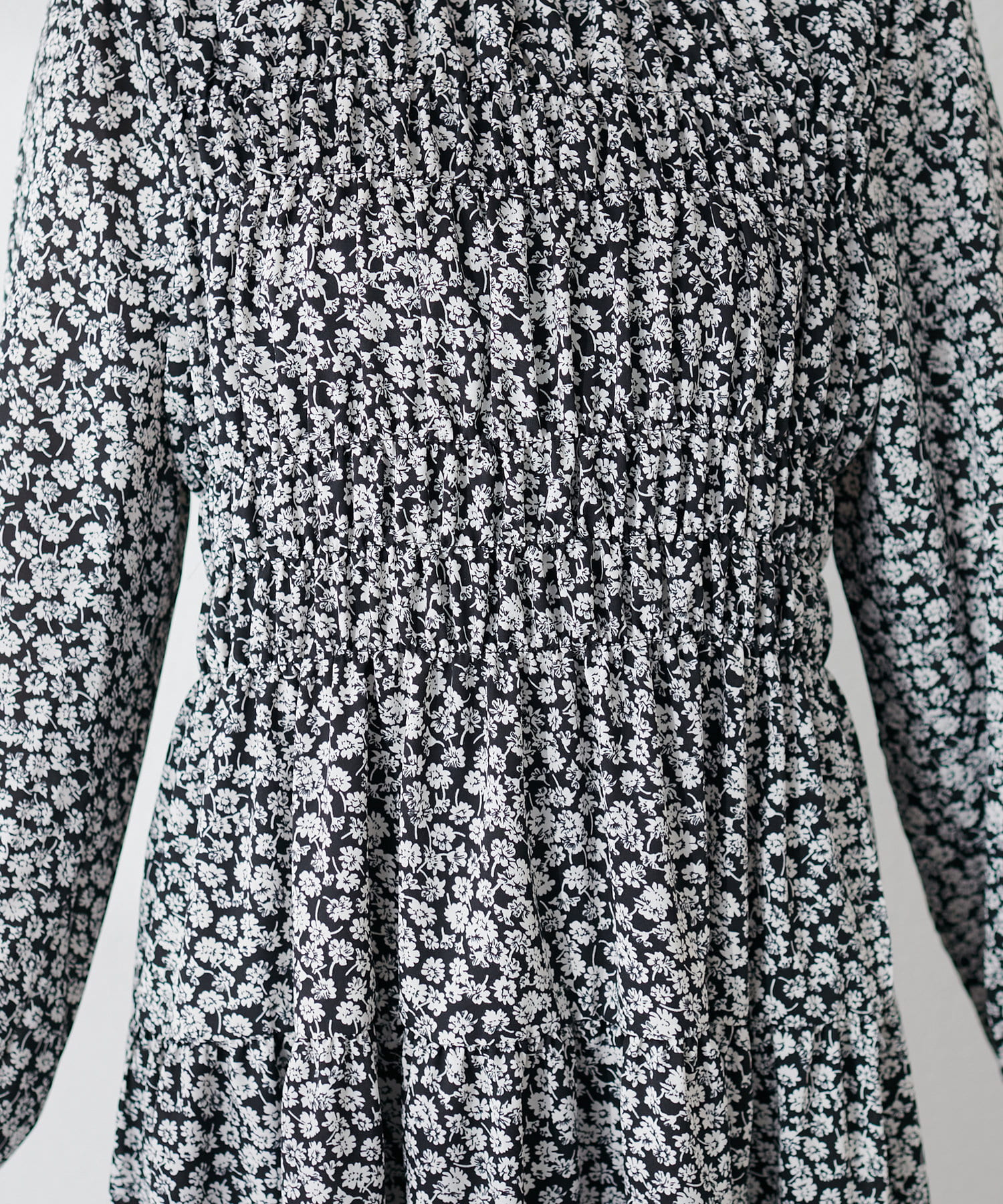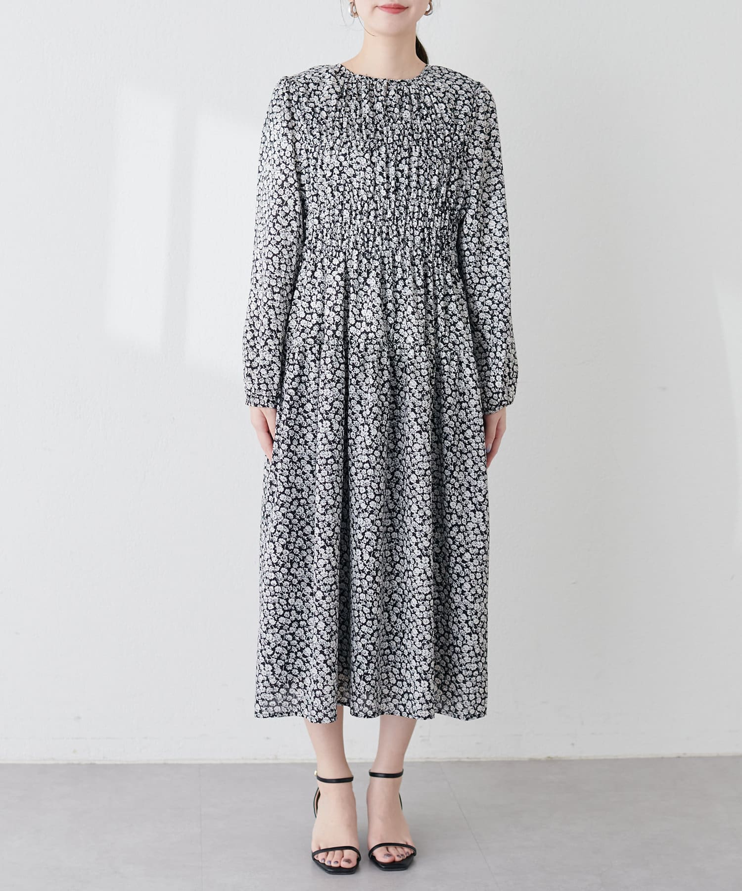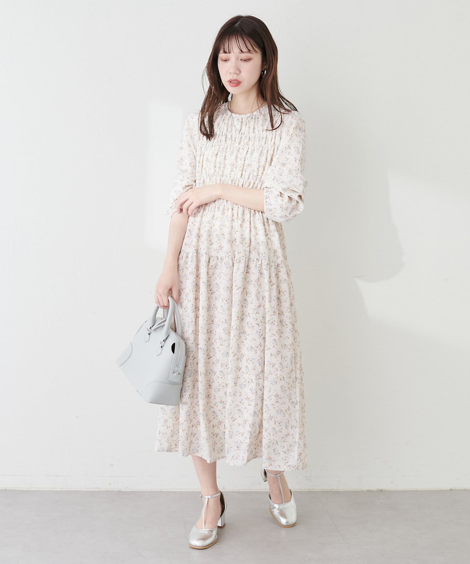 見頃部分にたっぷりシャーリングの入ったワンピース。