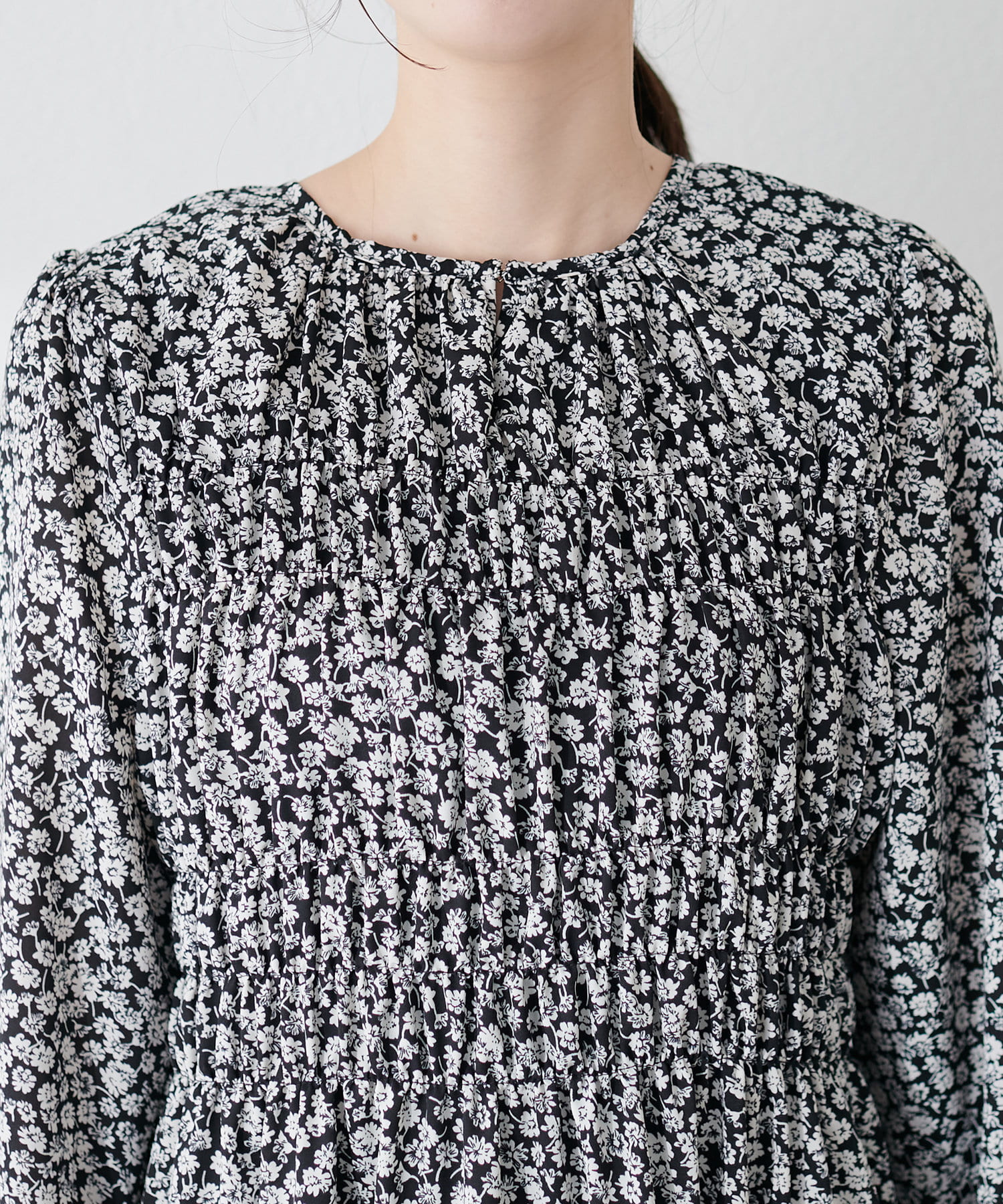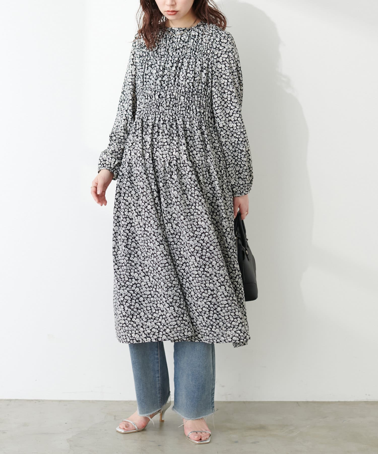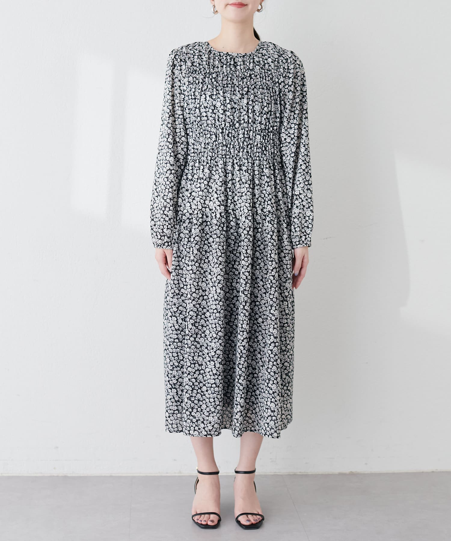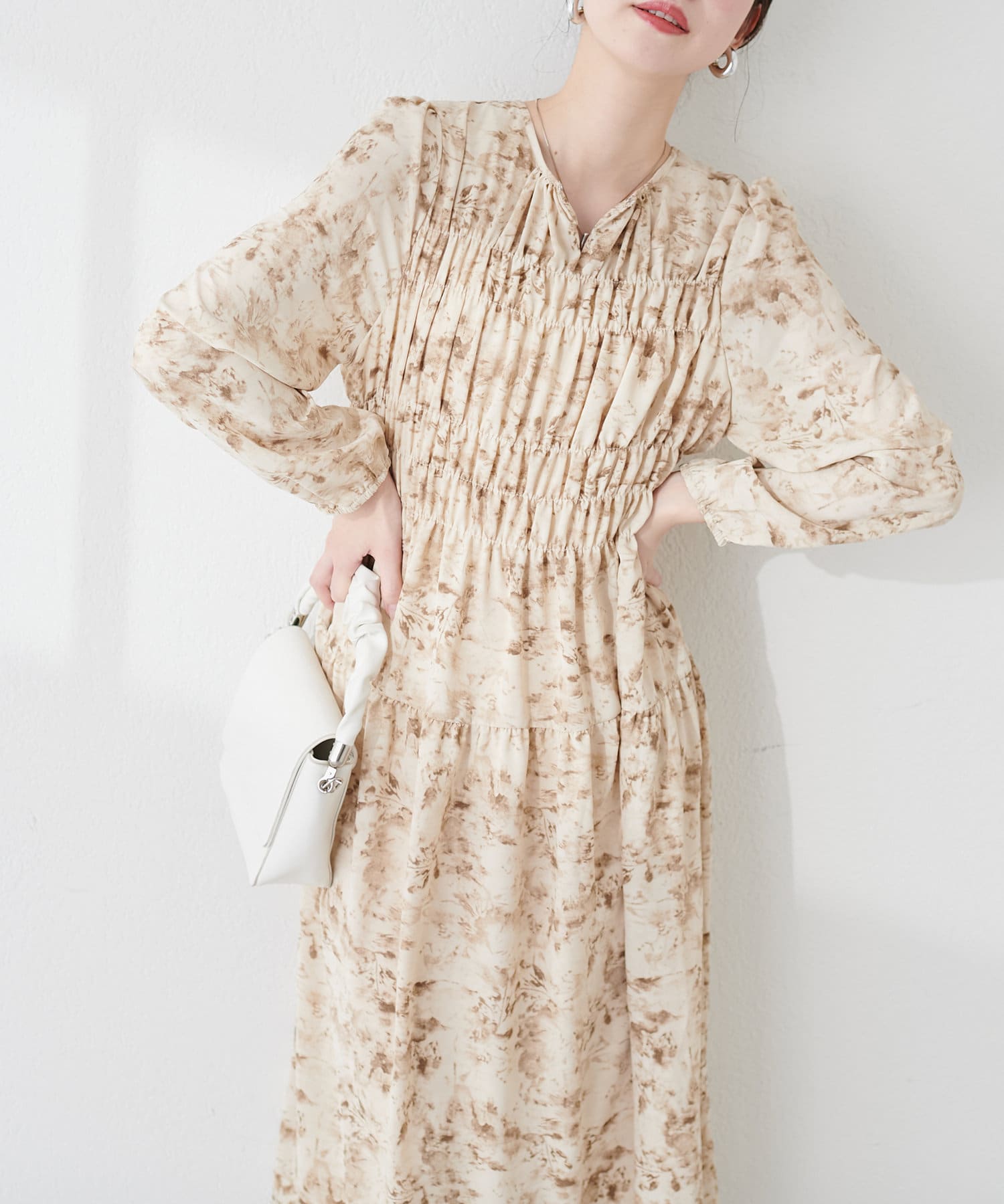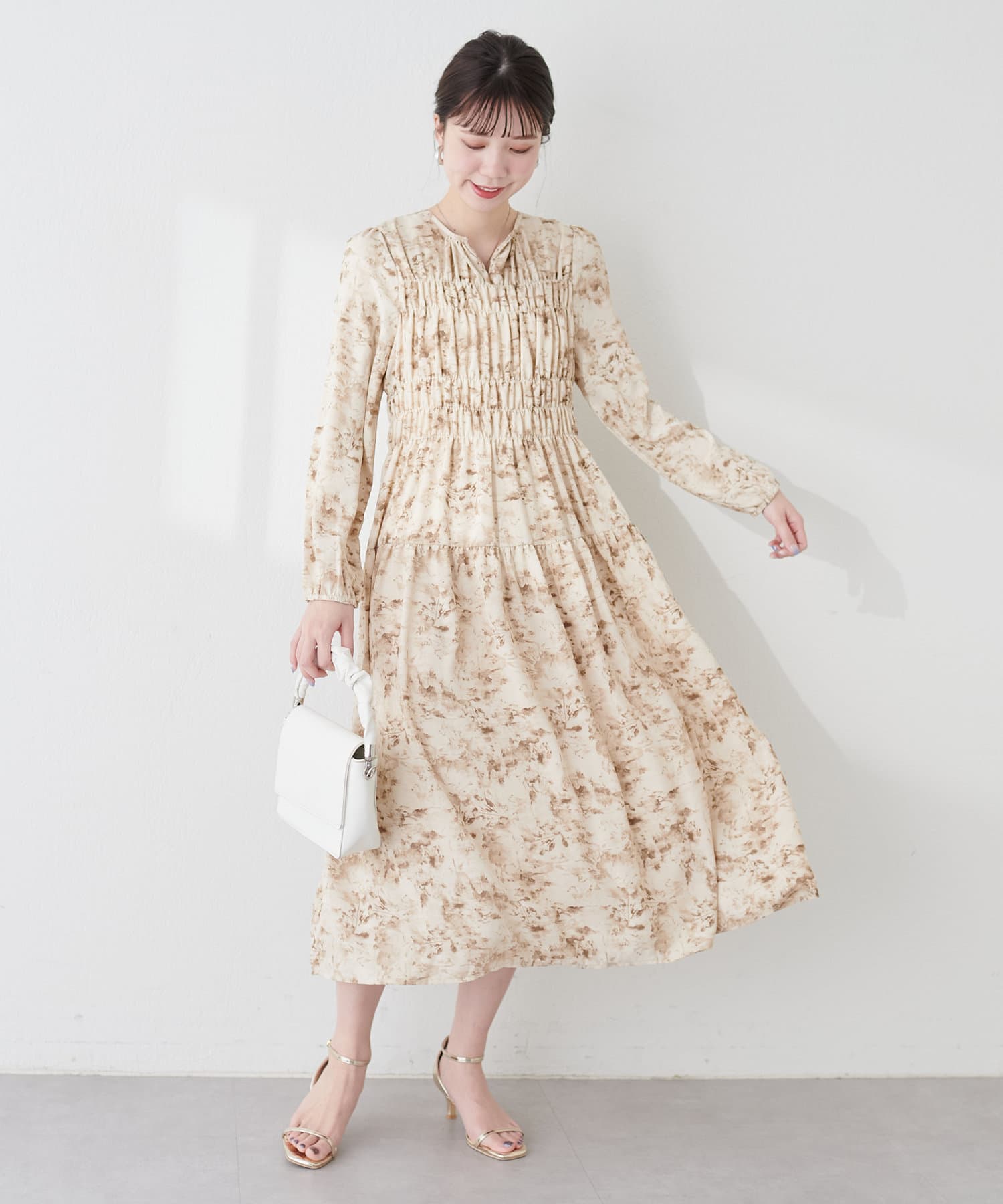 見頃部分にたっぷりシャーリングの入ったワンピース。