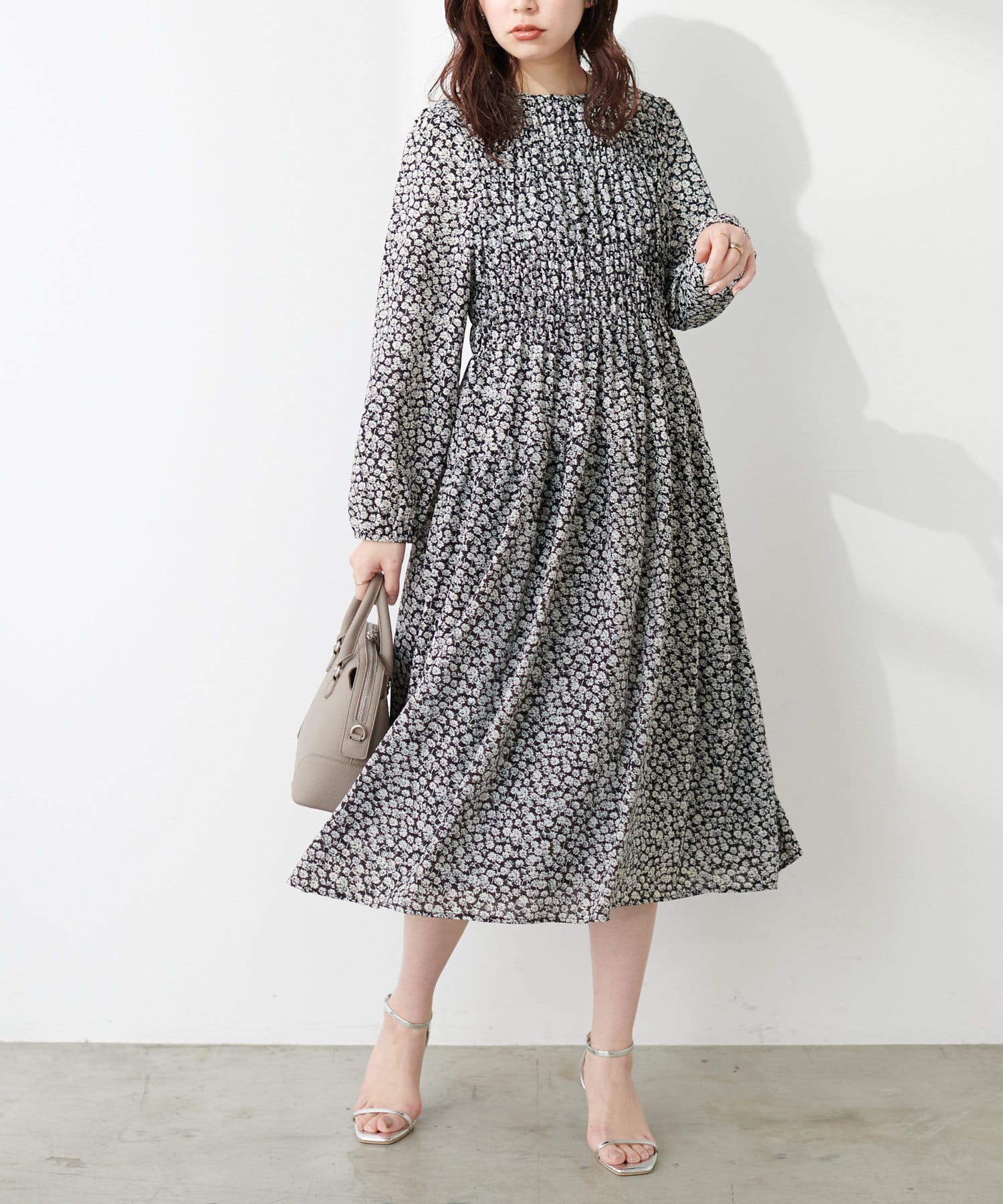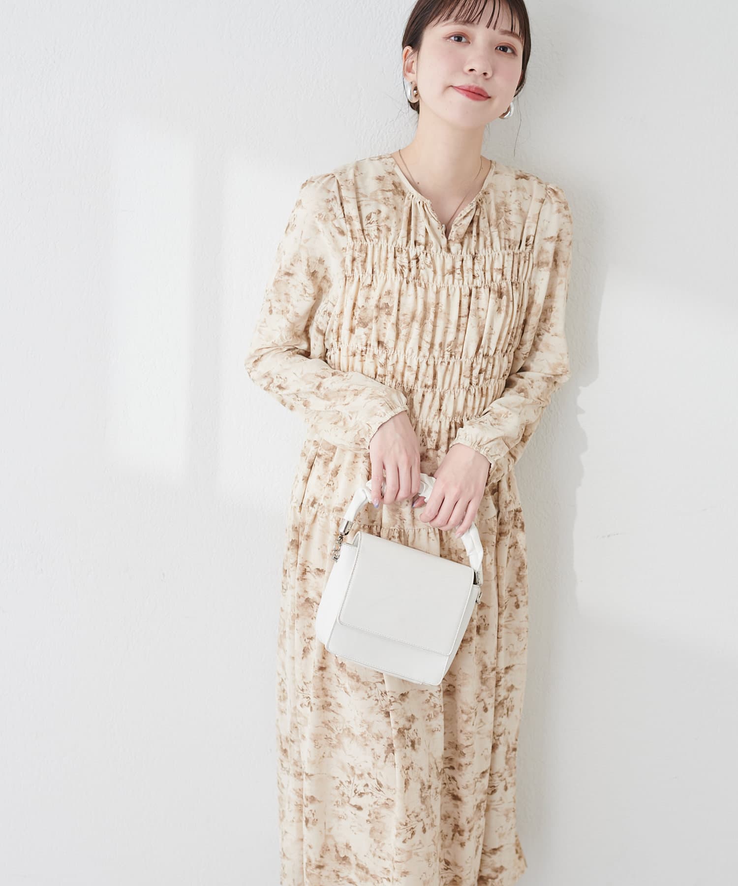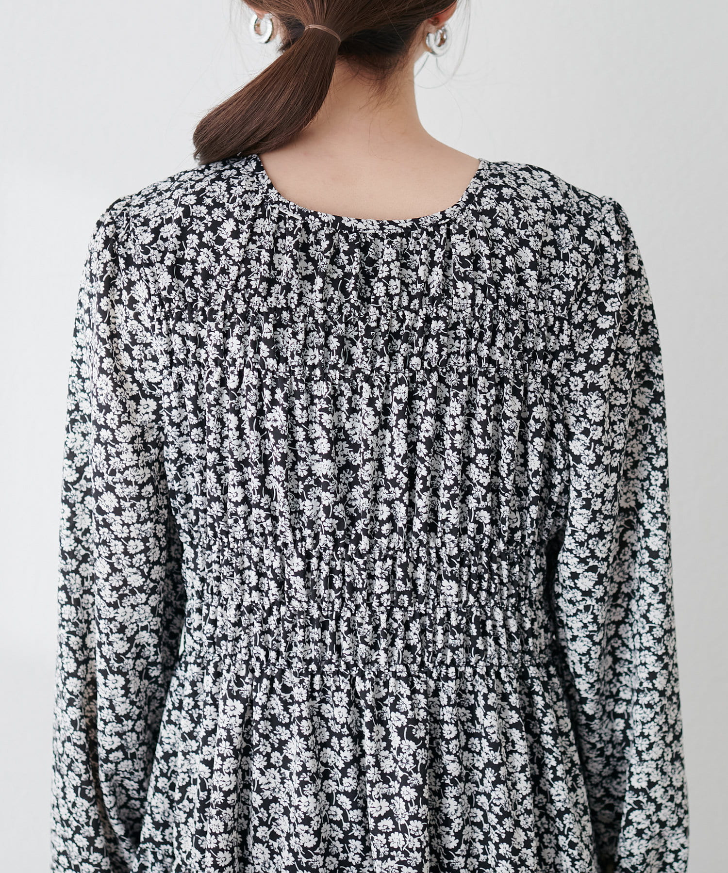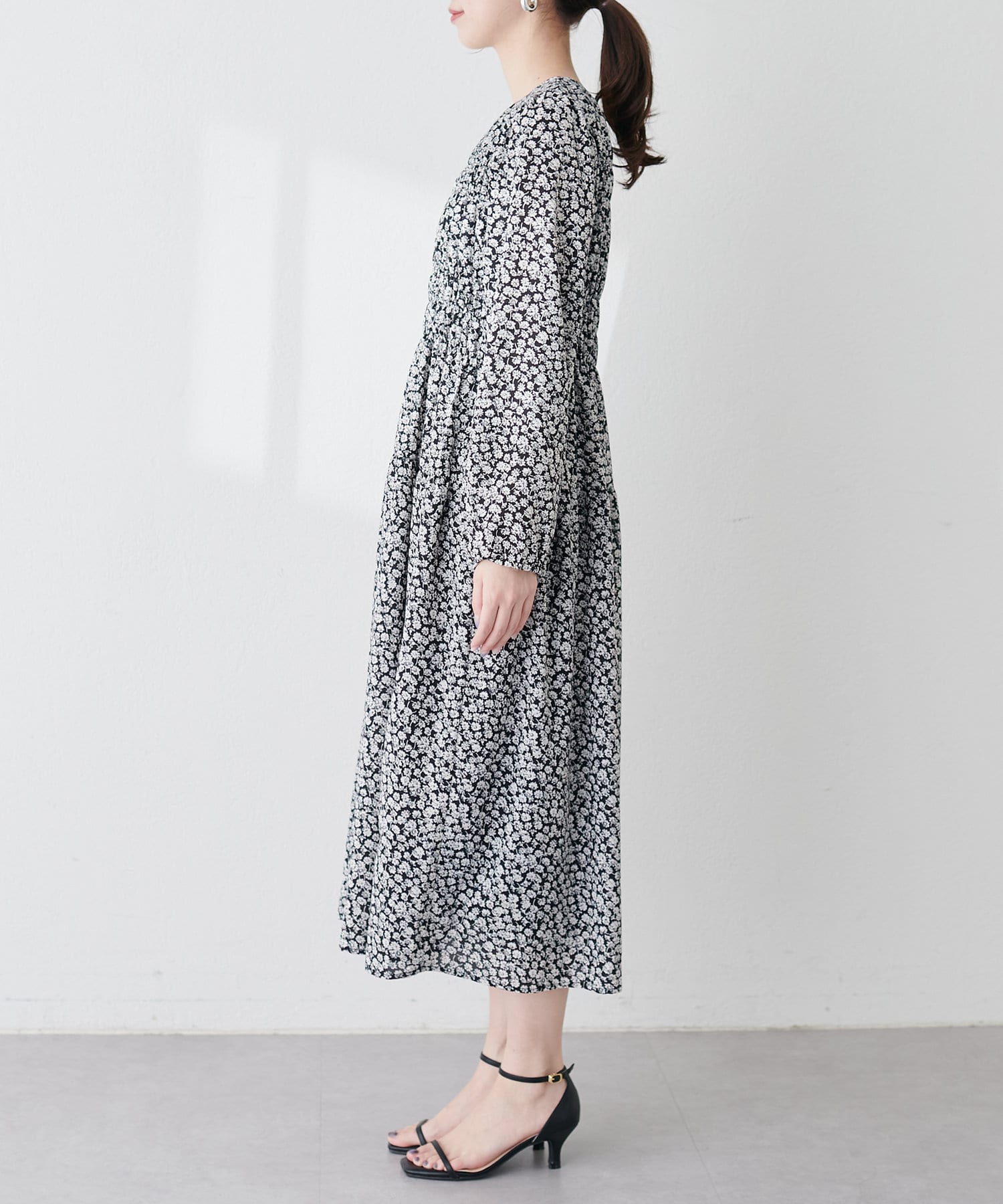 見頃部分にたっぷりシャーリングの入ったワンピース。