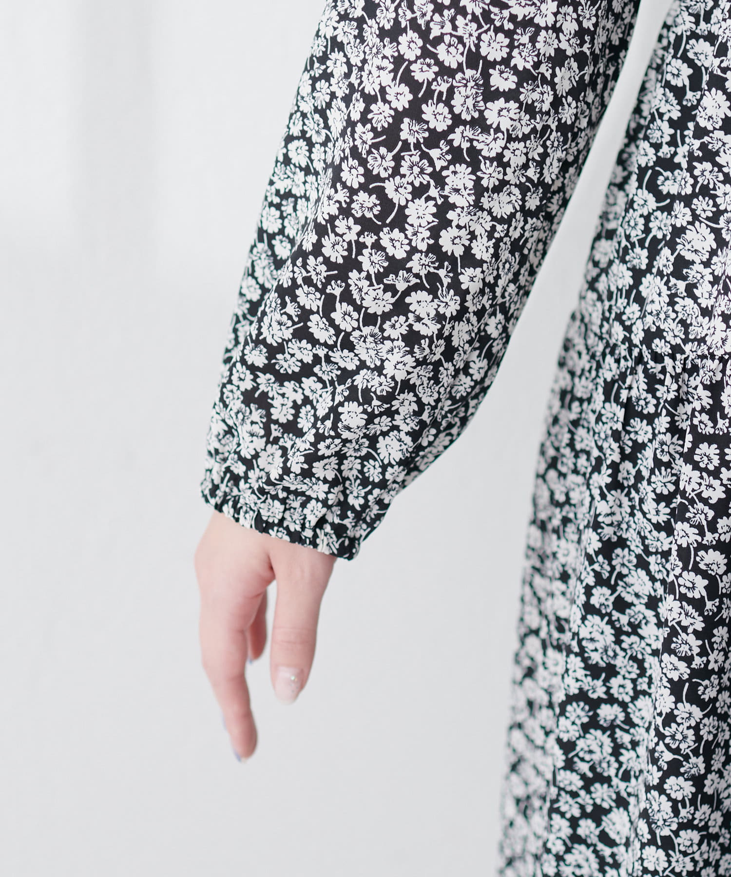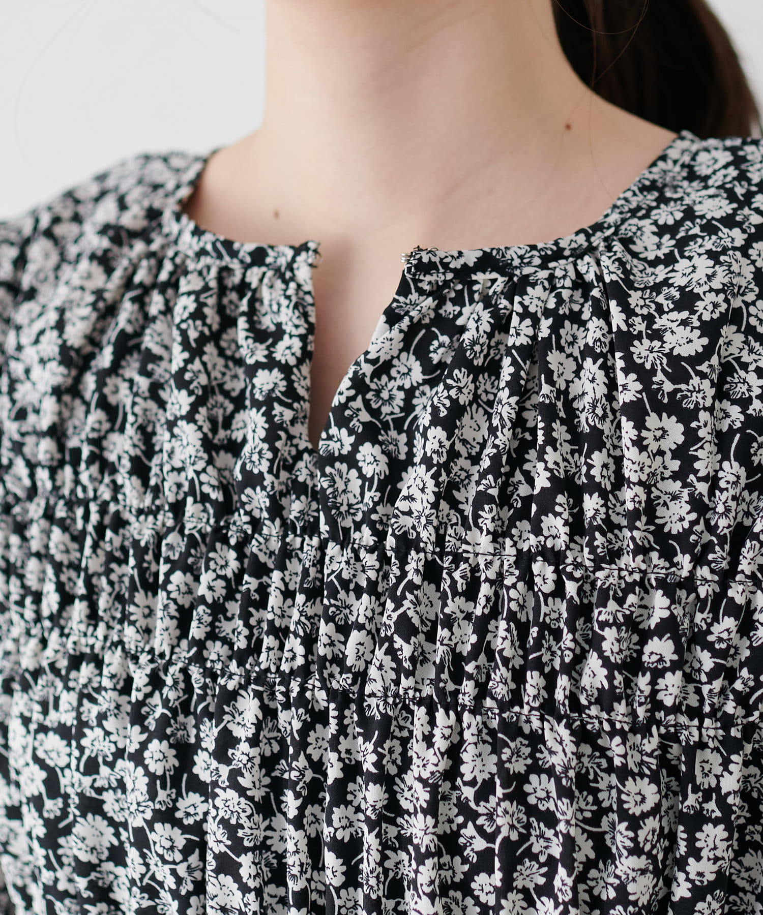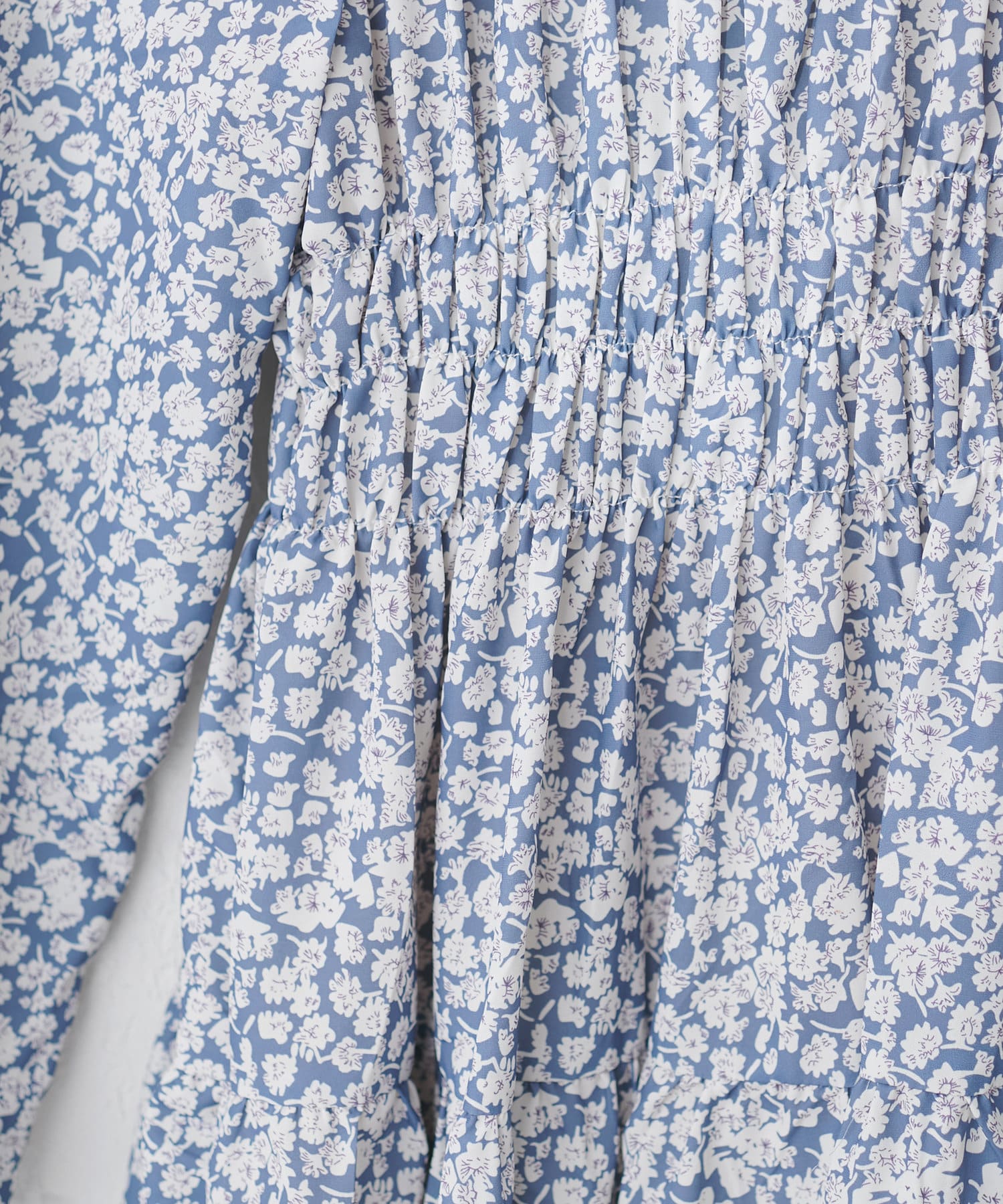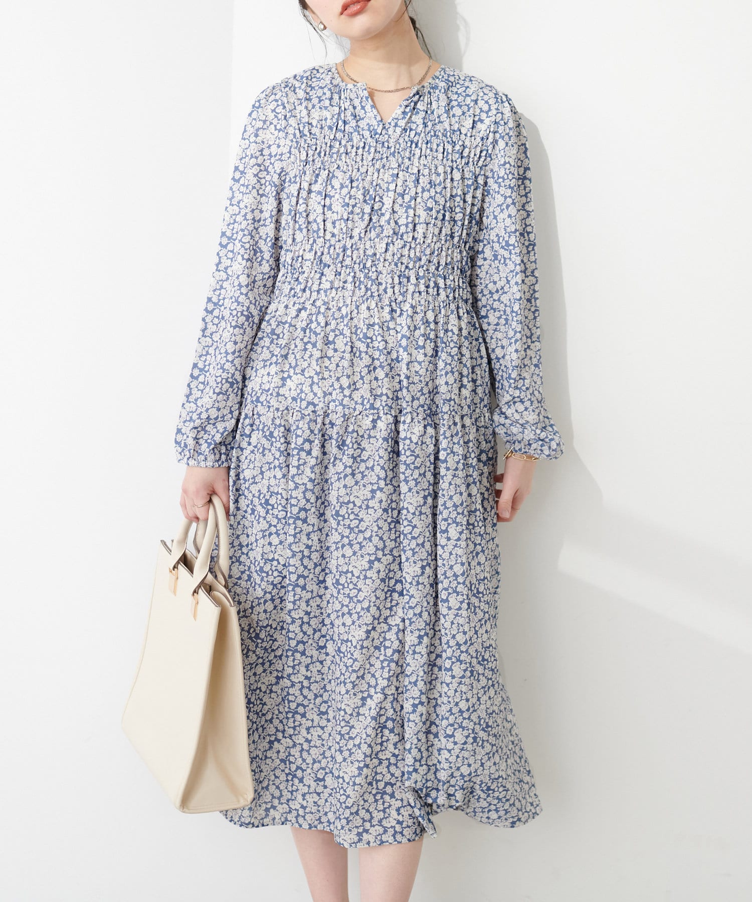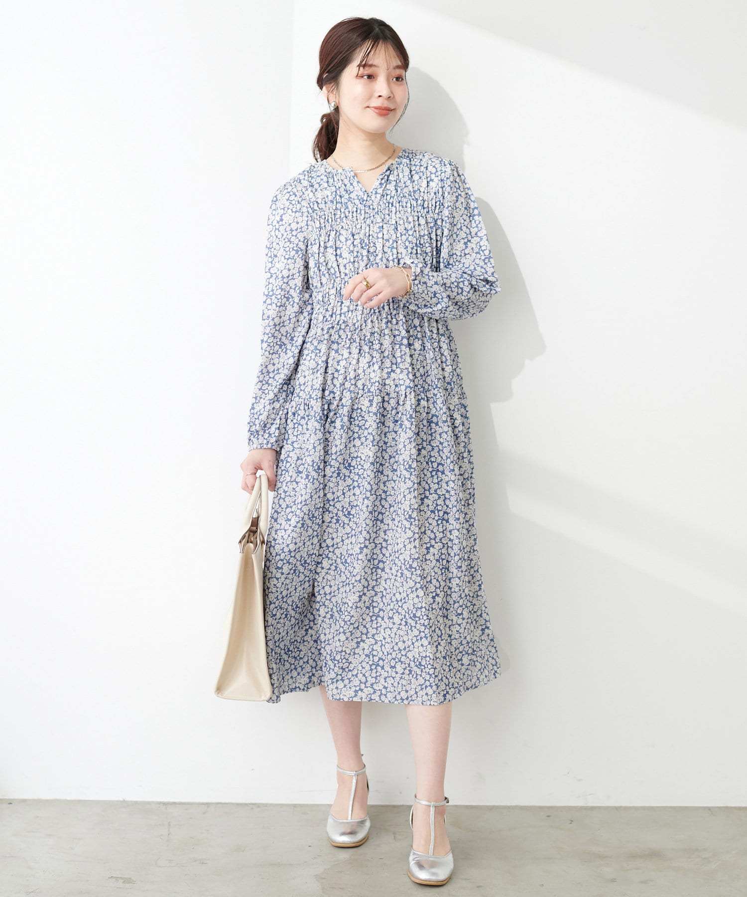 見頃部分にたっぷりシャーリングの入ったワンピース。