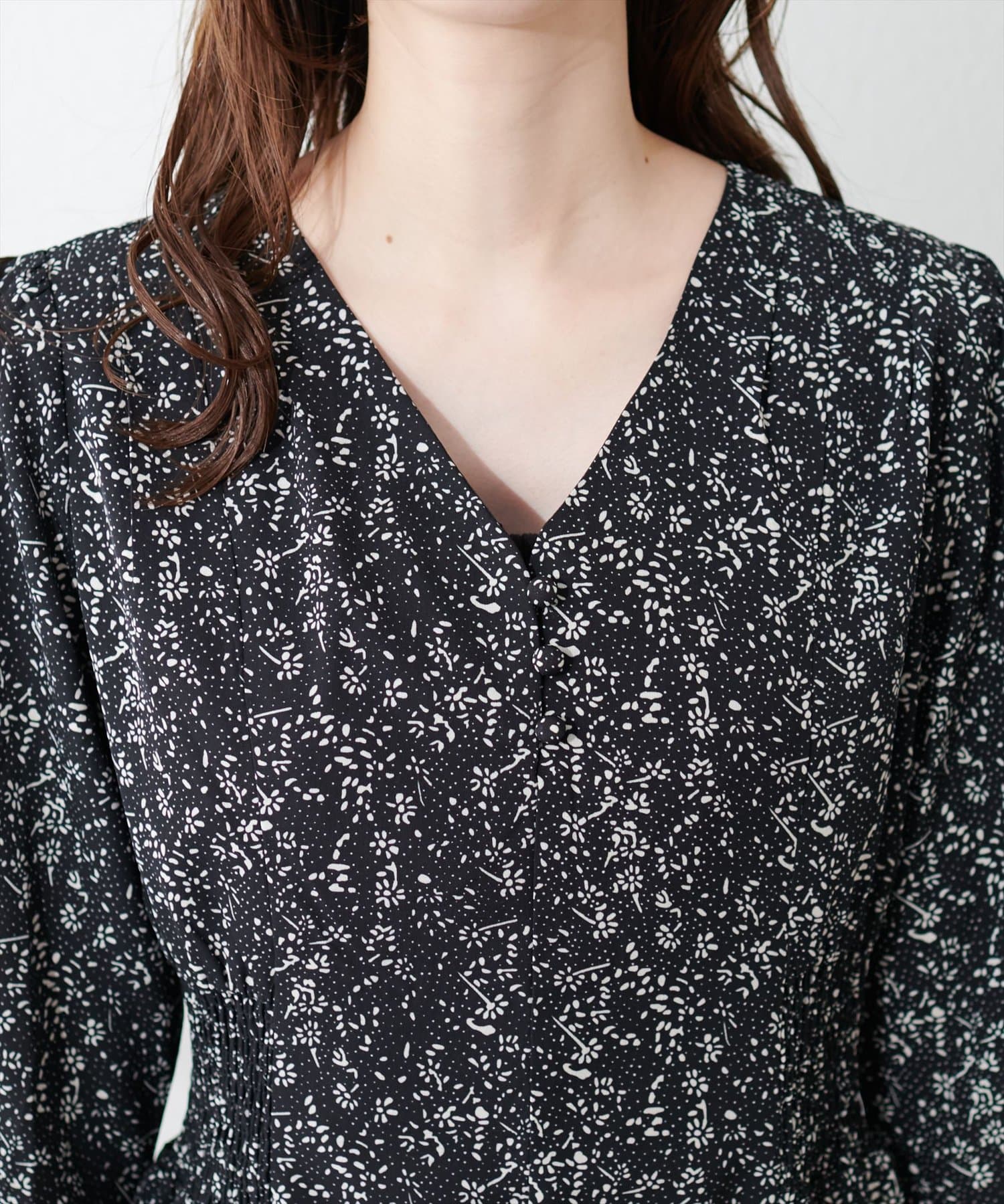 デコルテラインをヘルシーにすっきりと見せてくれるネックラインと、ほんのりパフスリーブのディテールが、