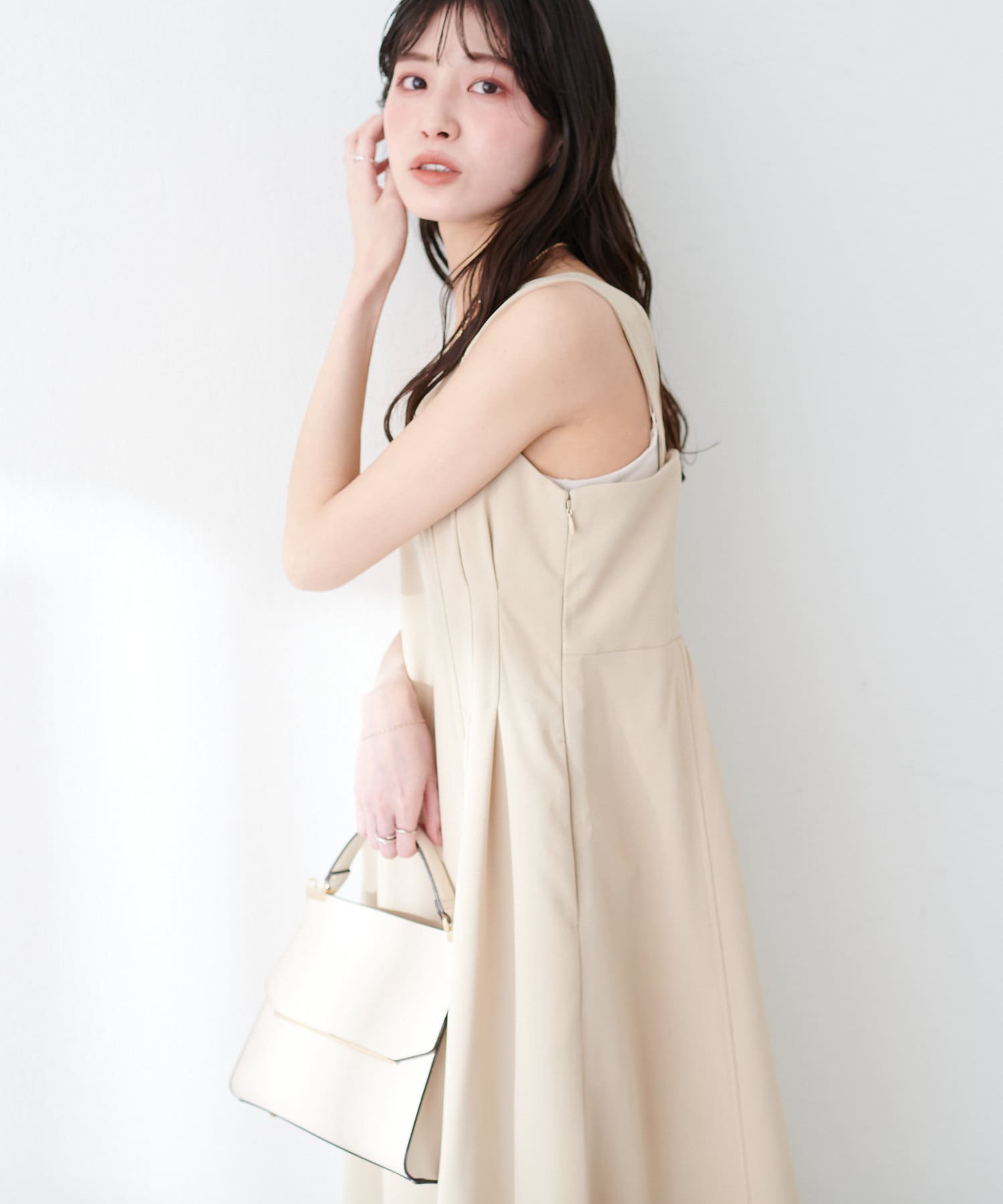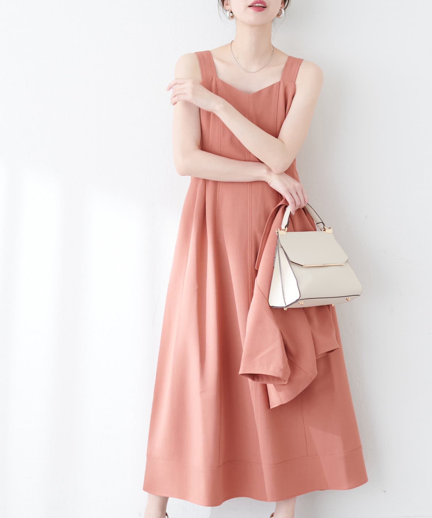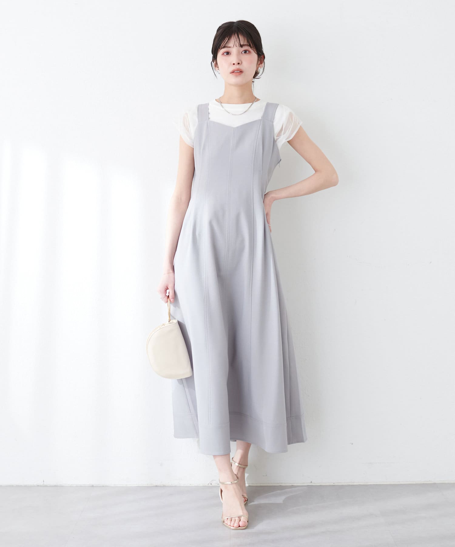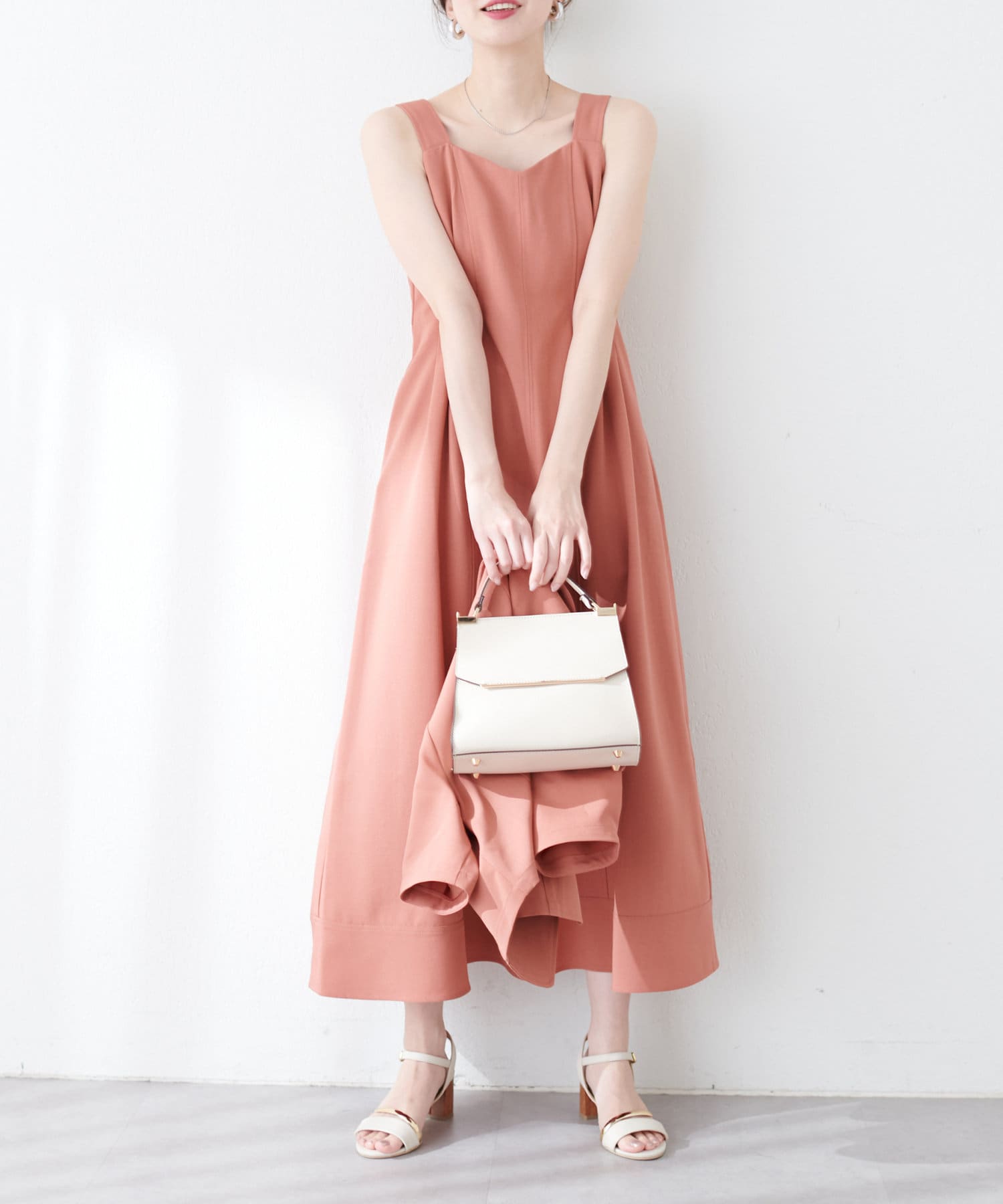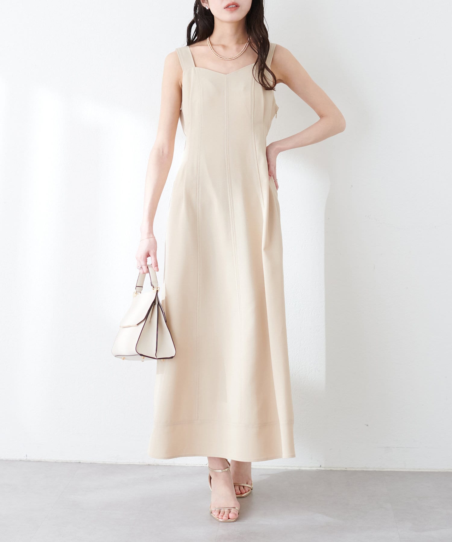 ワンピースは裾にかけて緩やかで美しいフレアラインを意識し、