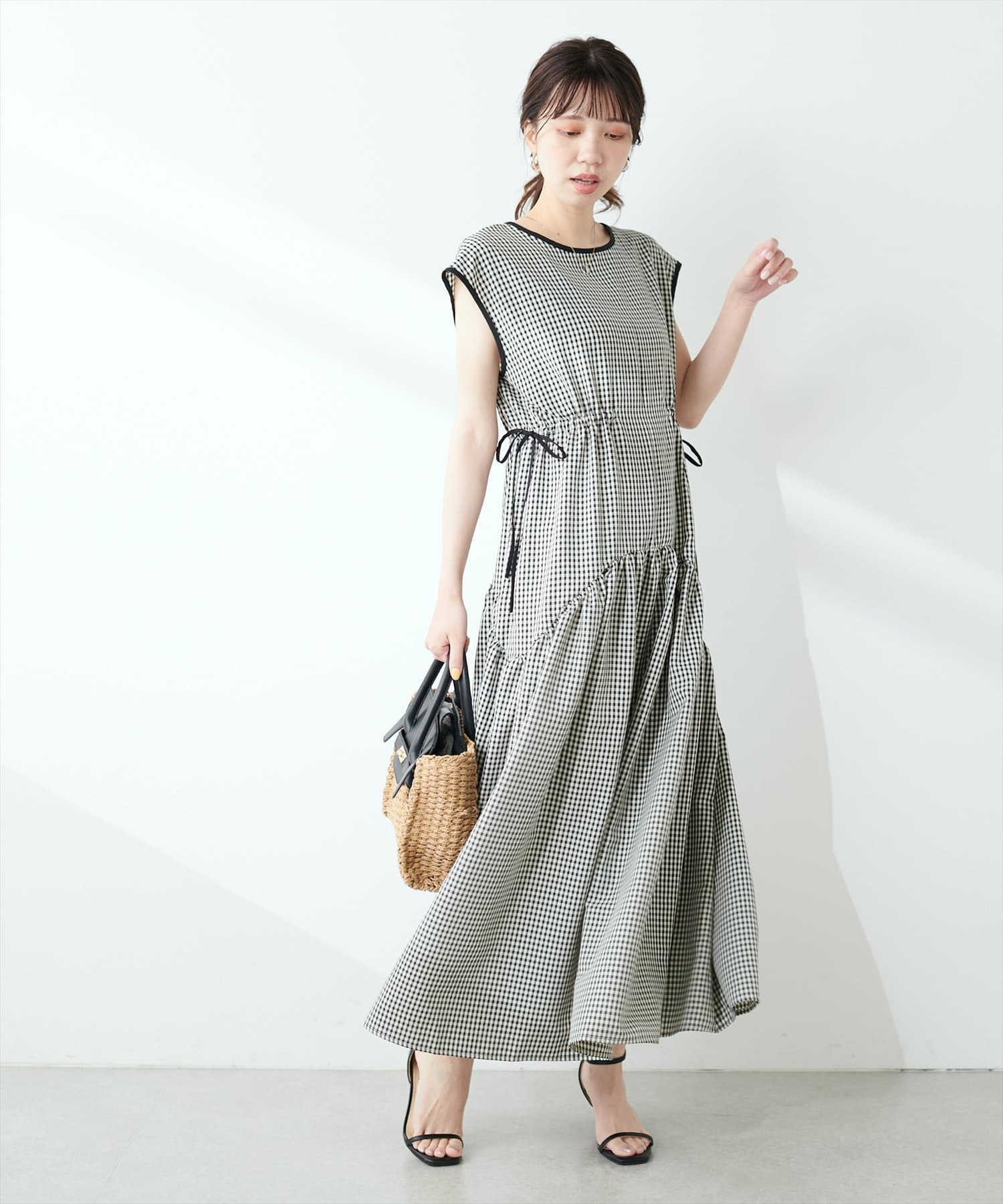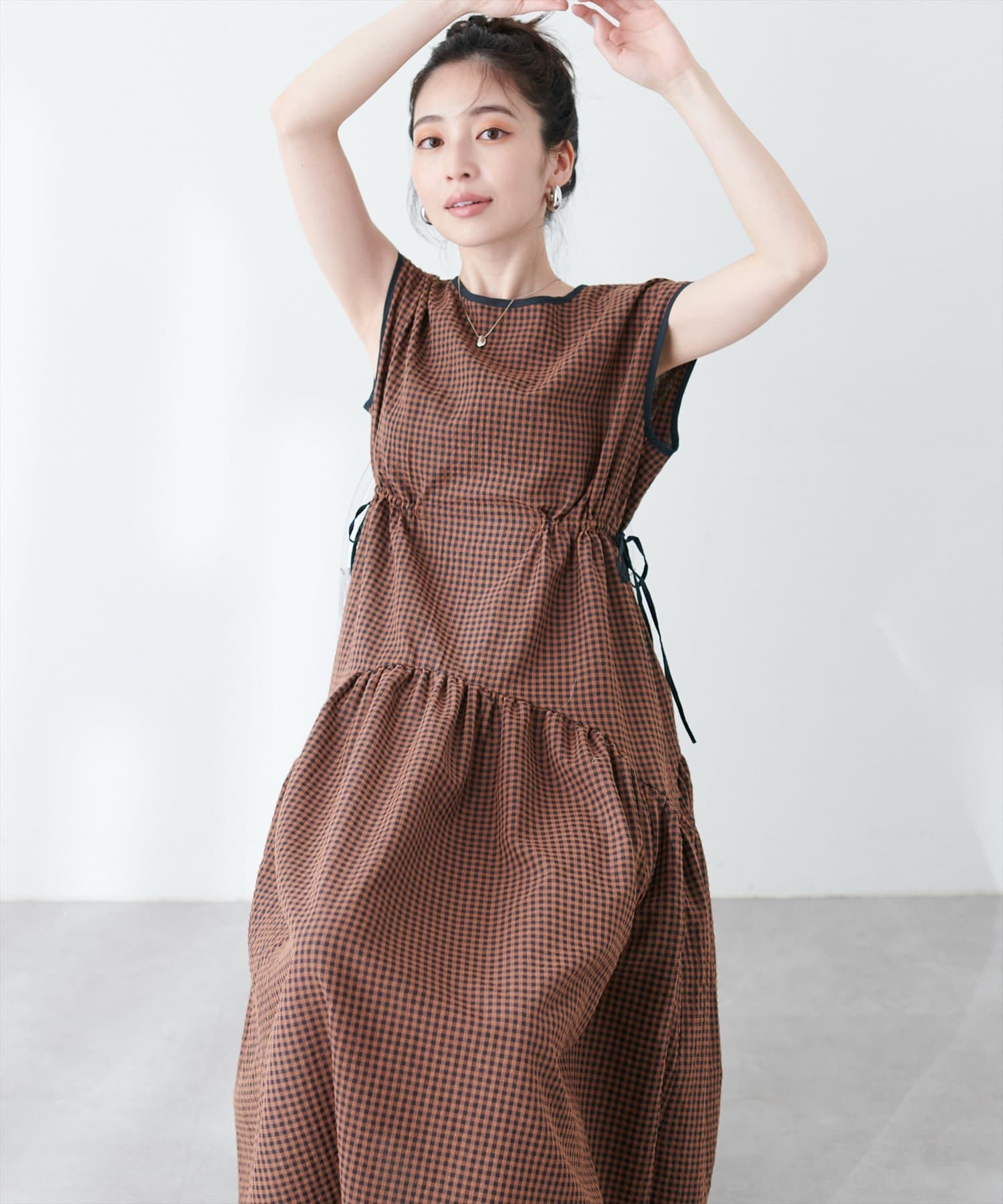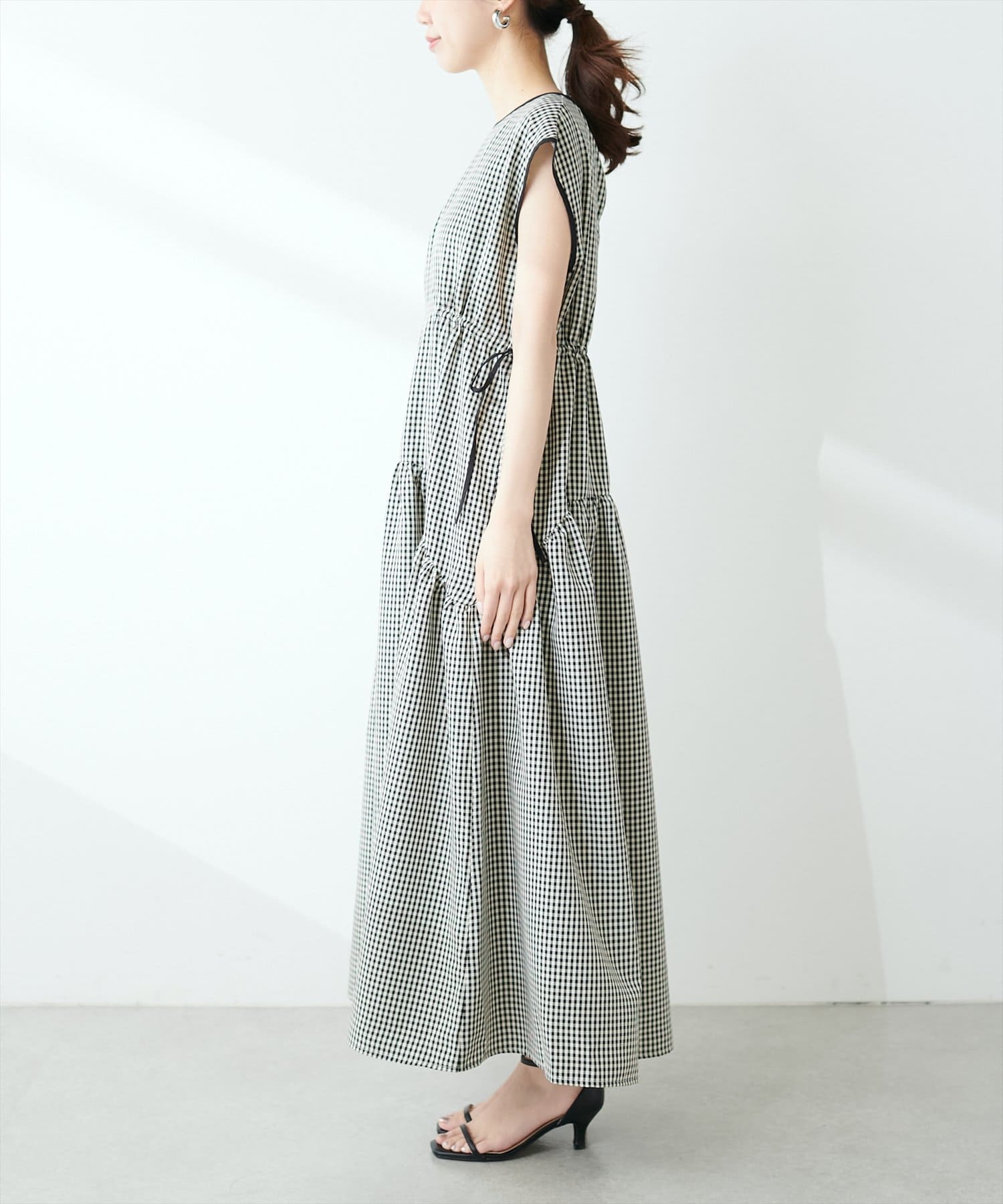 ウエストのドロストデザインがトレンドライクなノースリーブワンピース。
