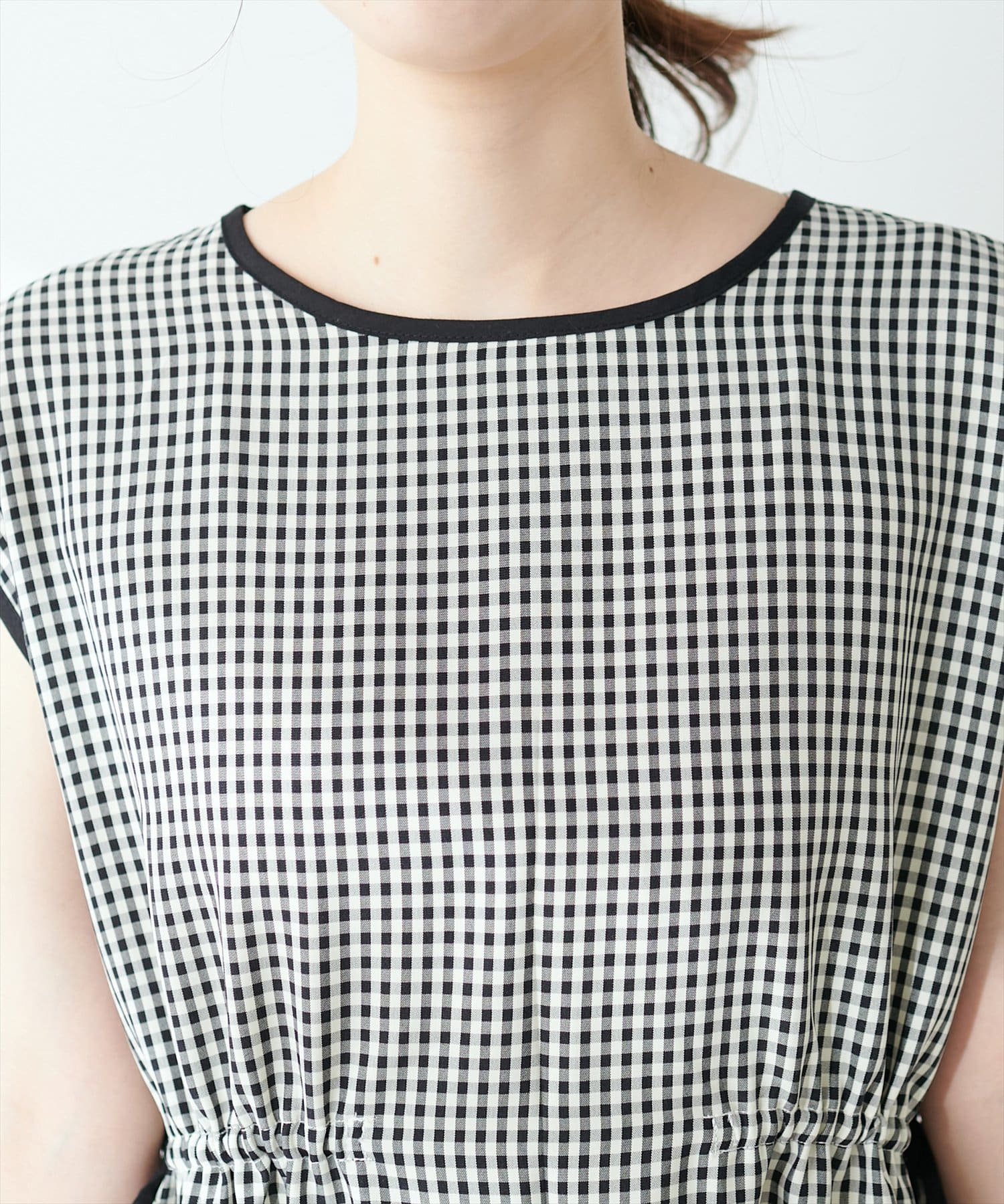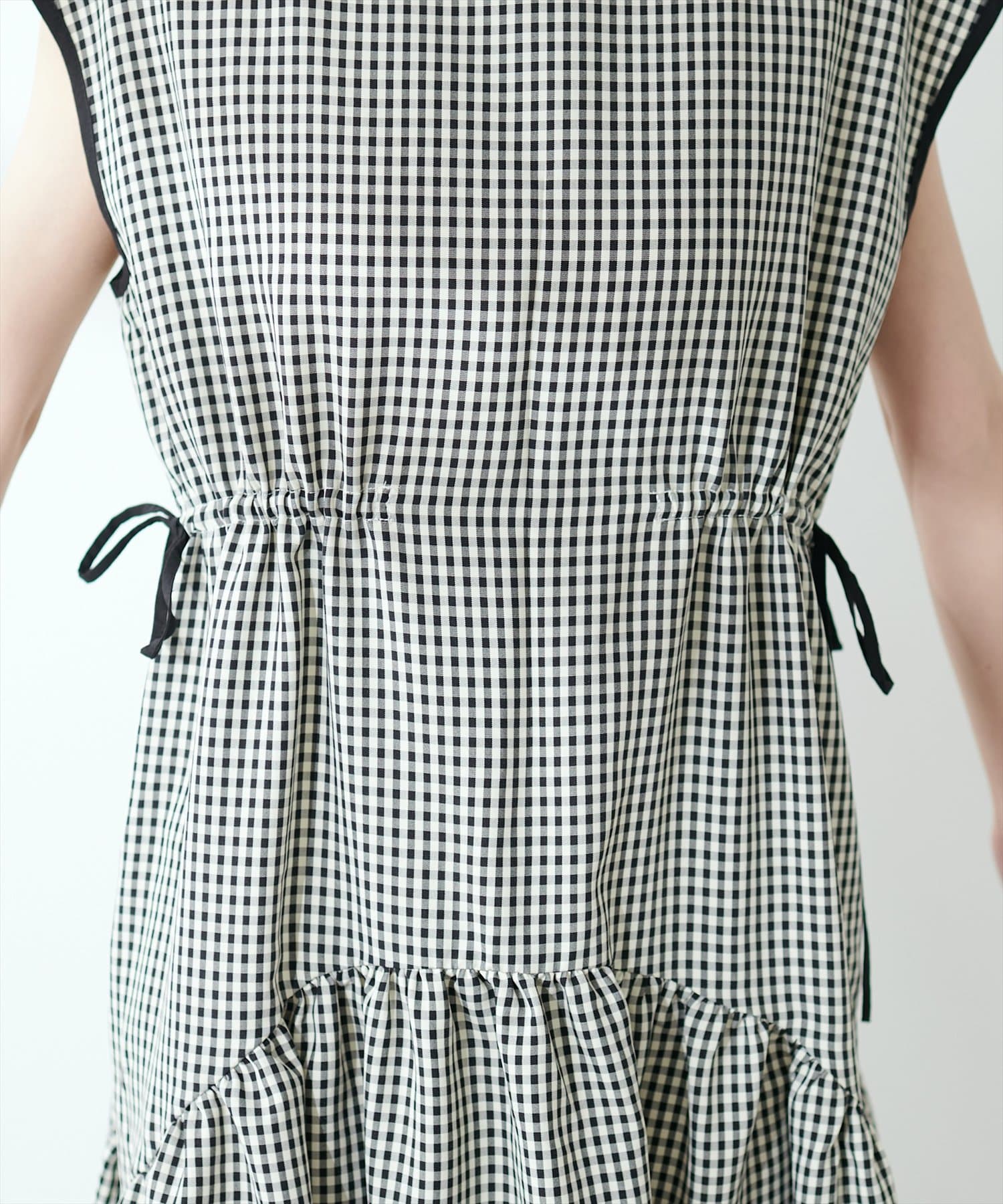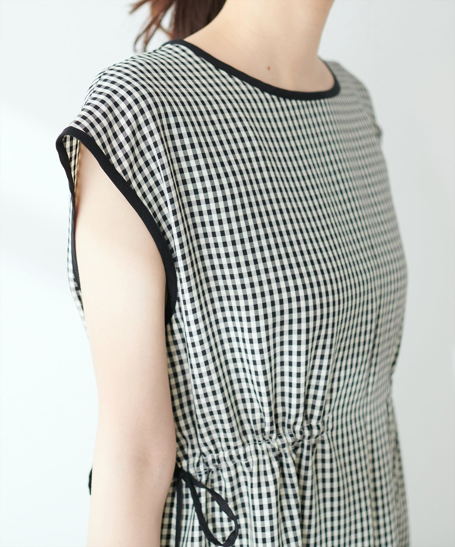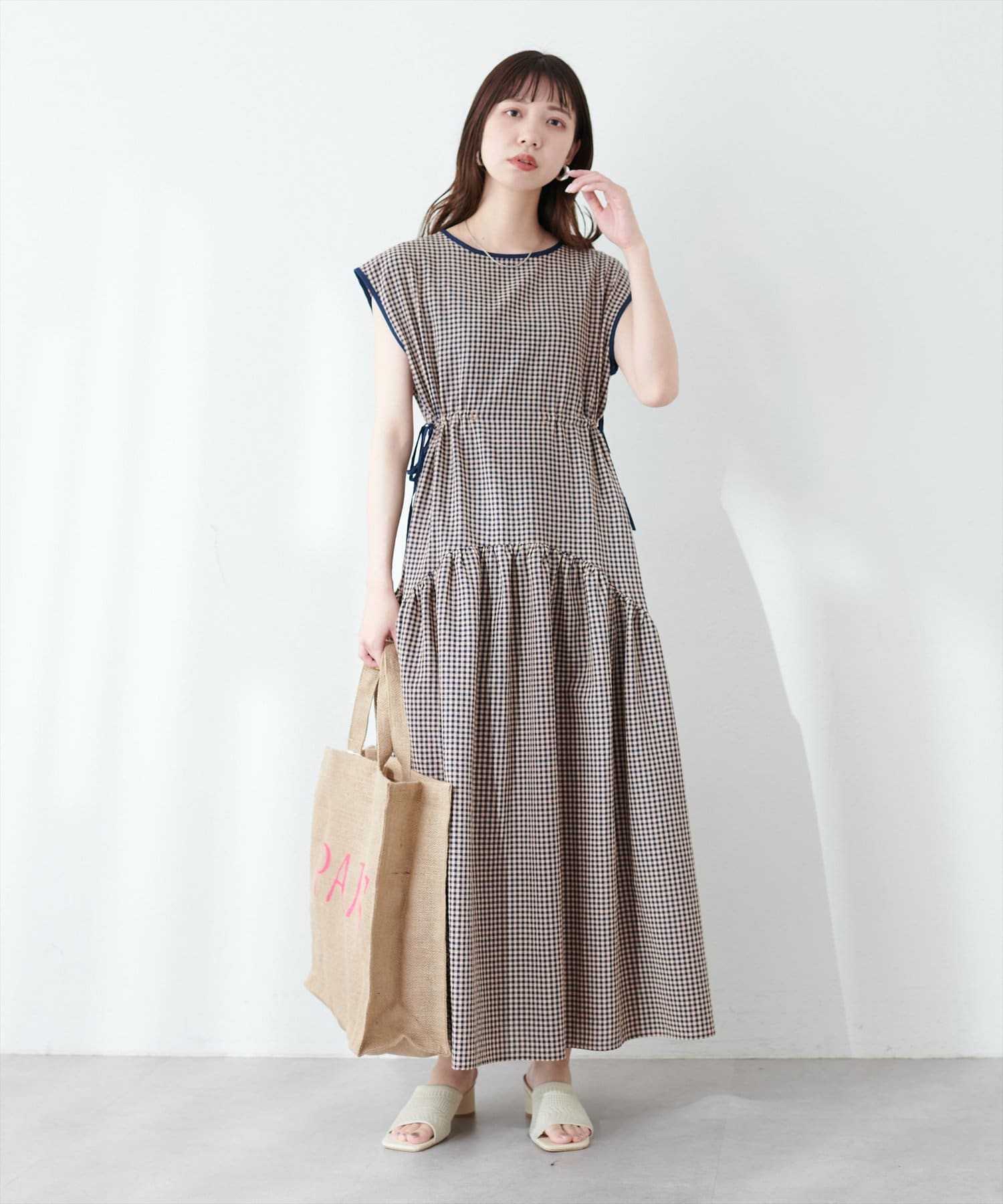 ウエストのドロストデザインがトレンドライクなノースリーブワンピース。