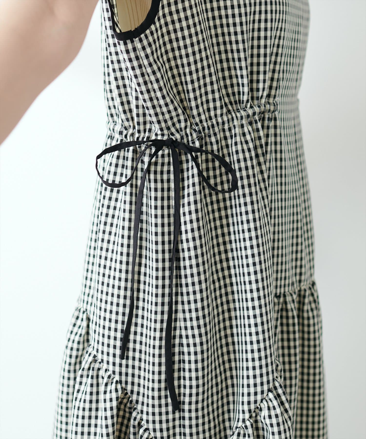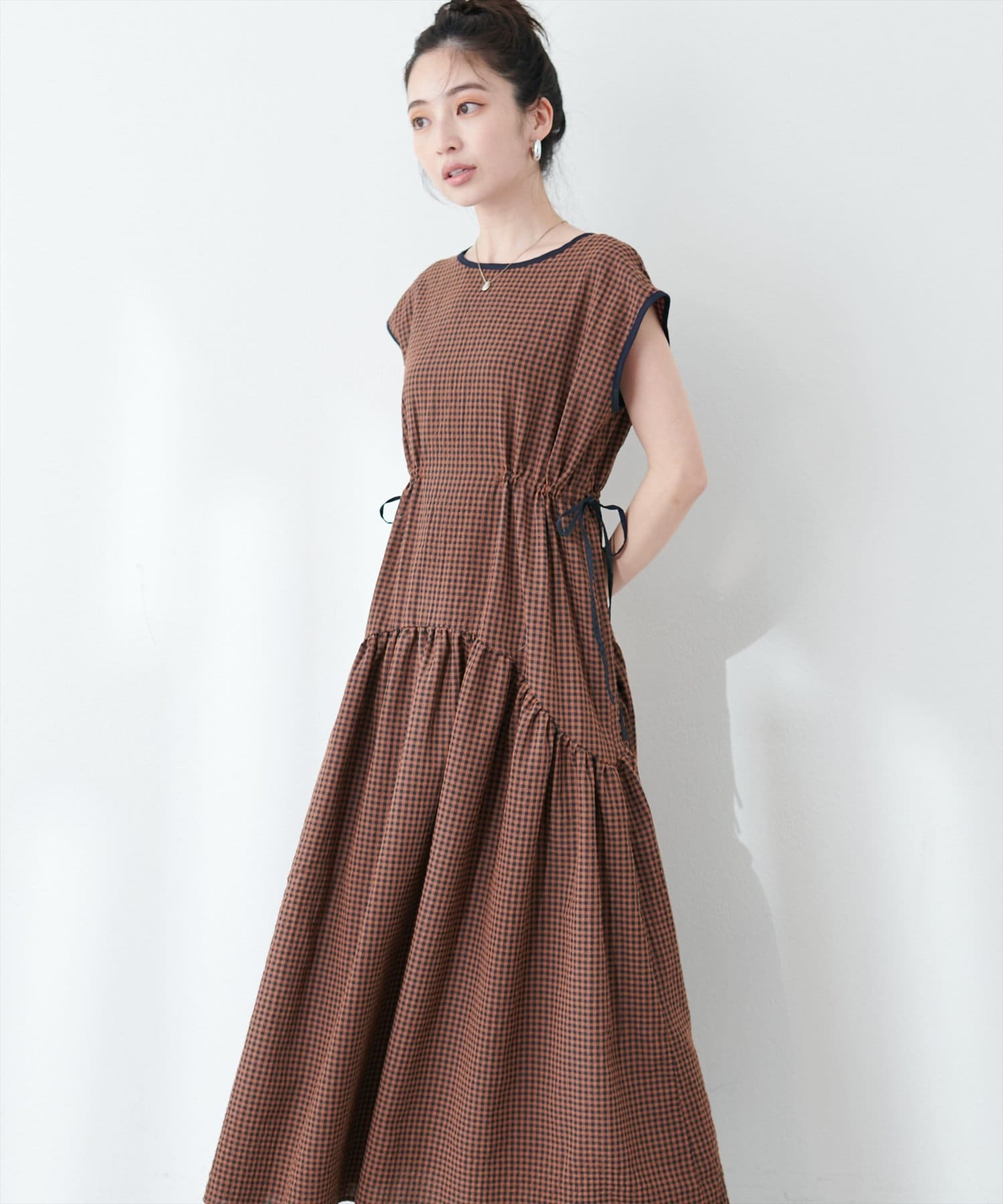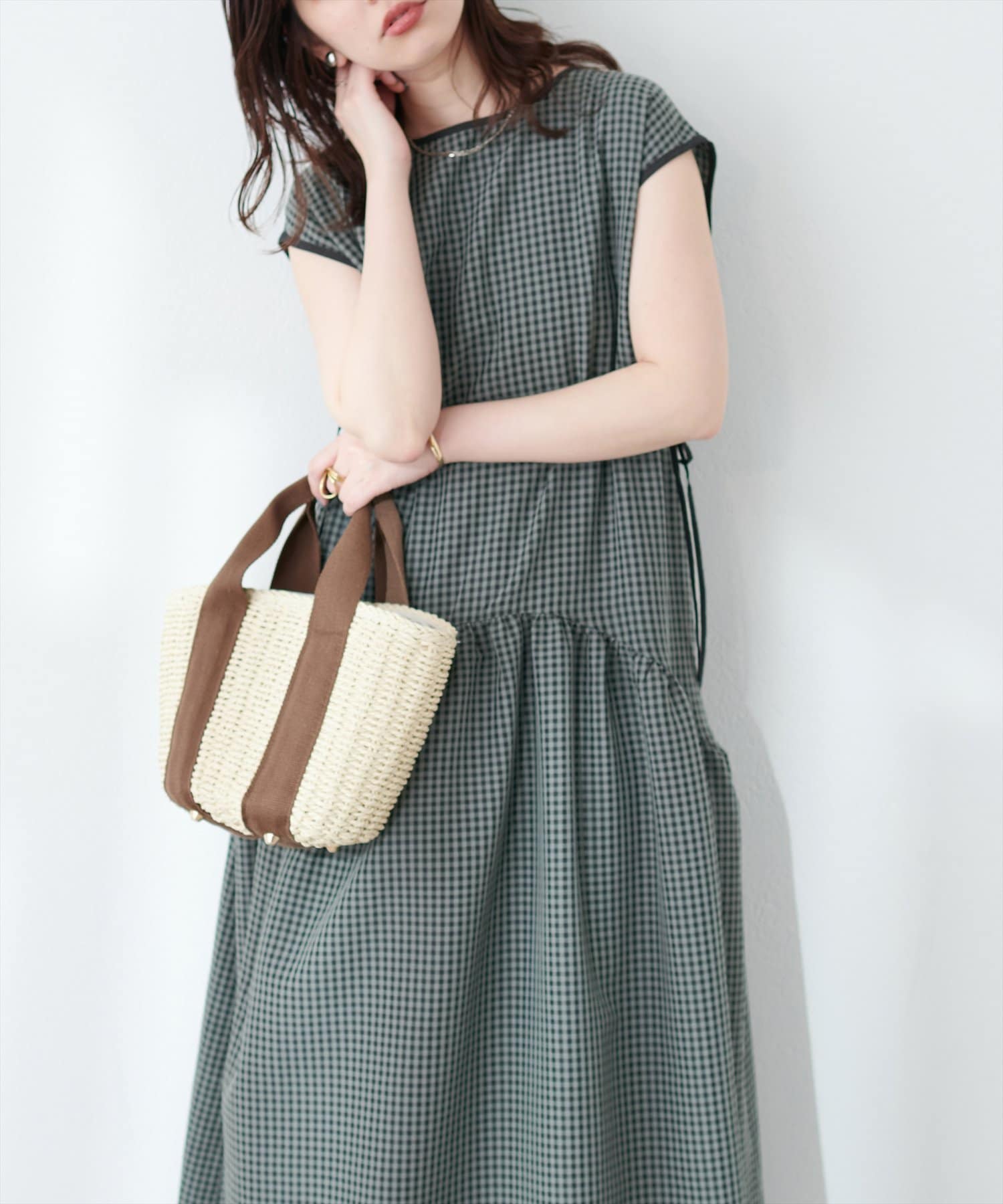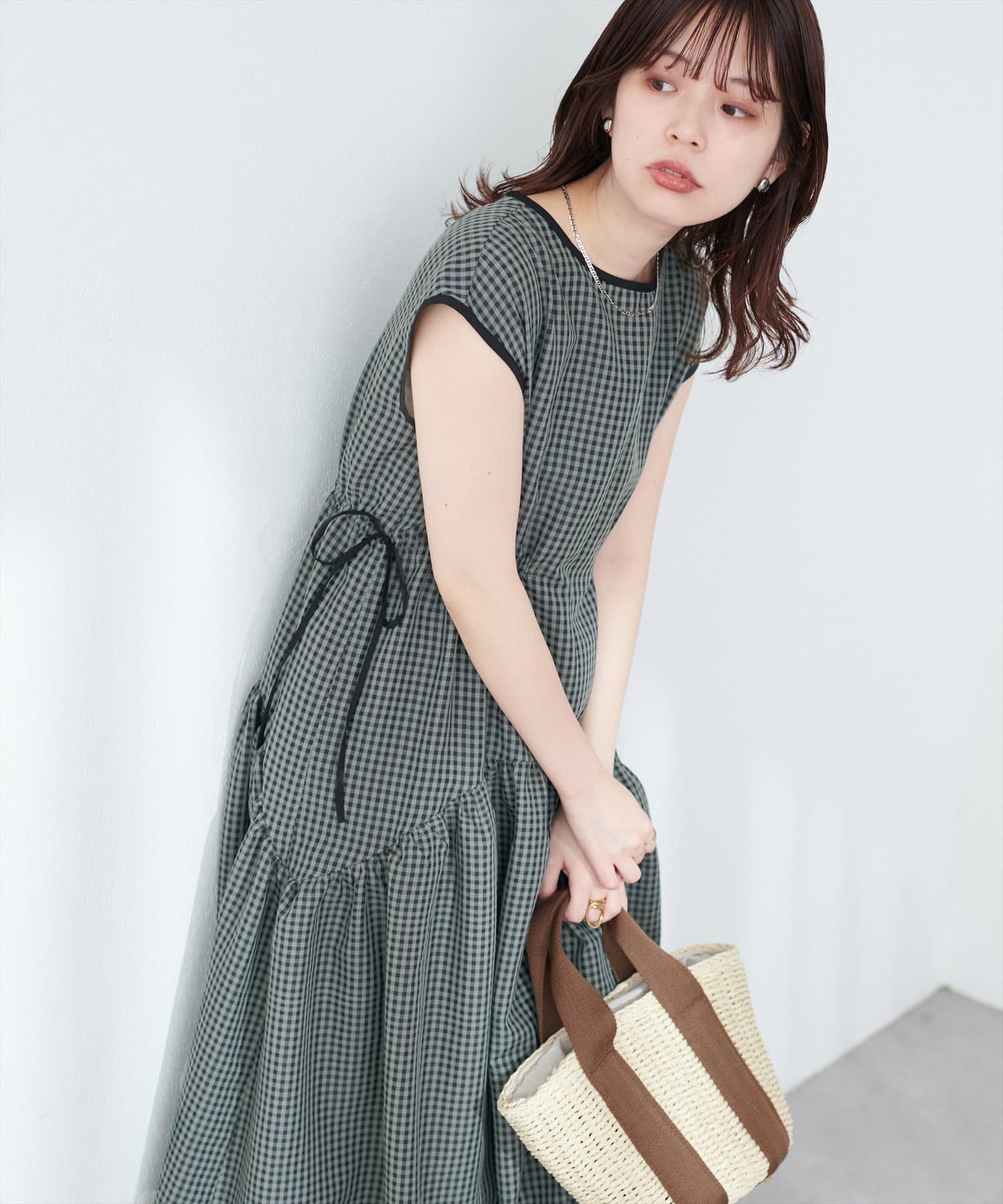 【WEB限定】ドロストデザインチェック柄ワンピース