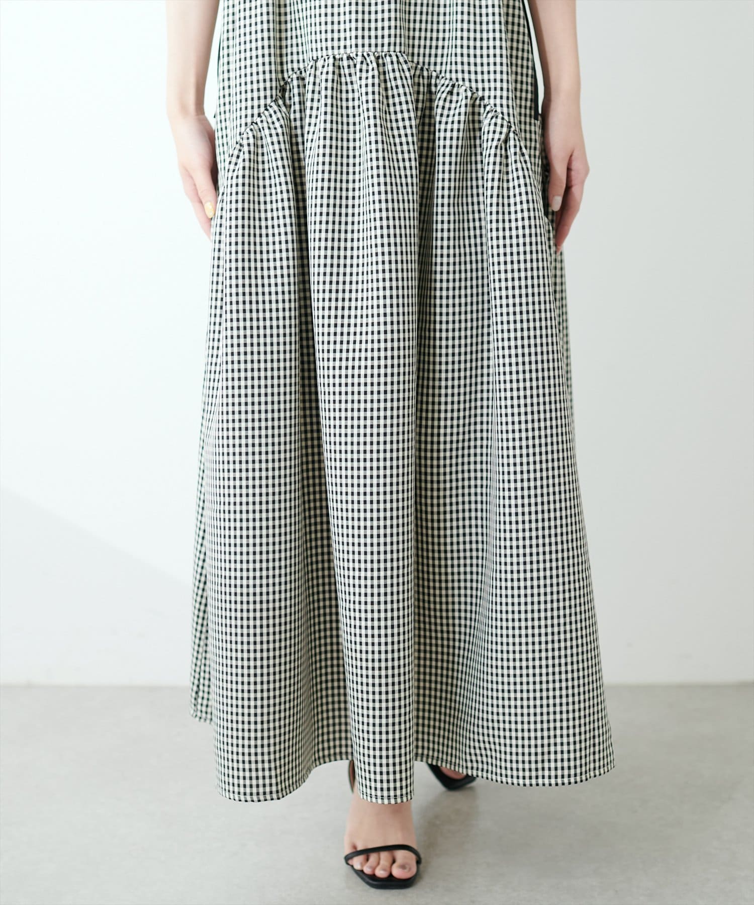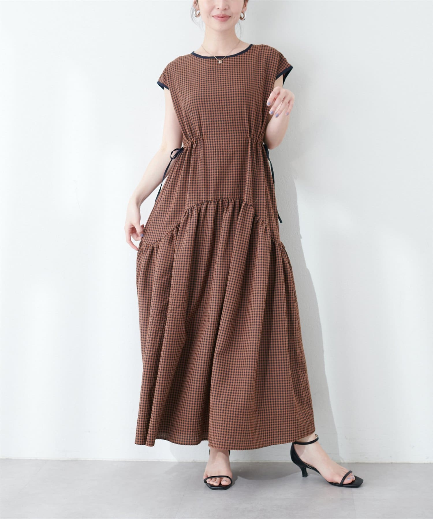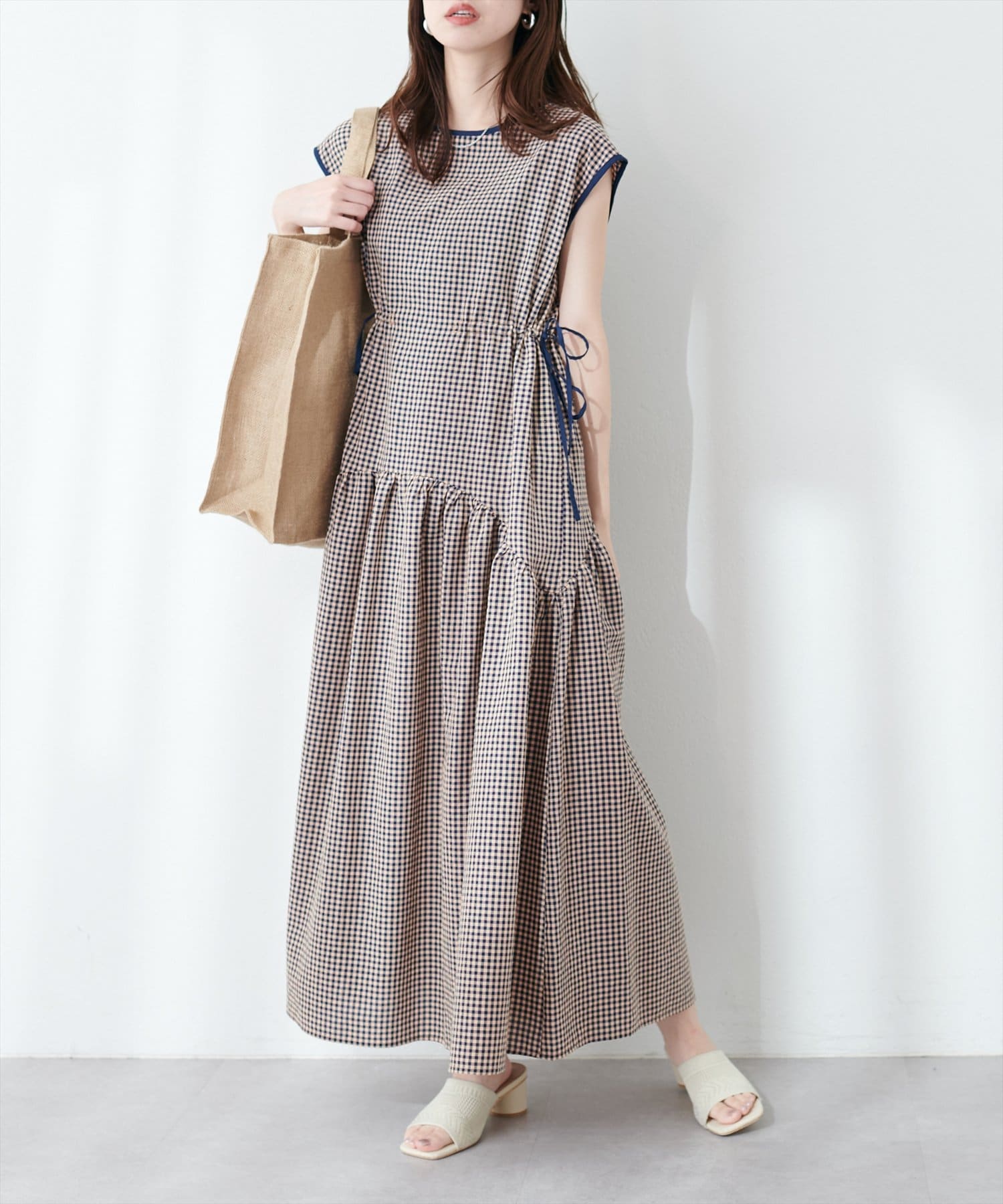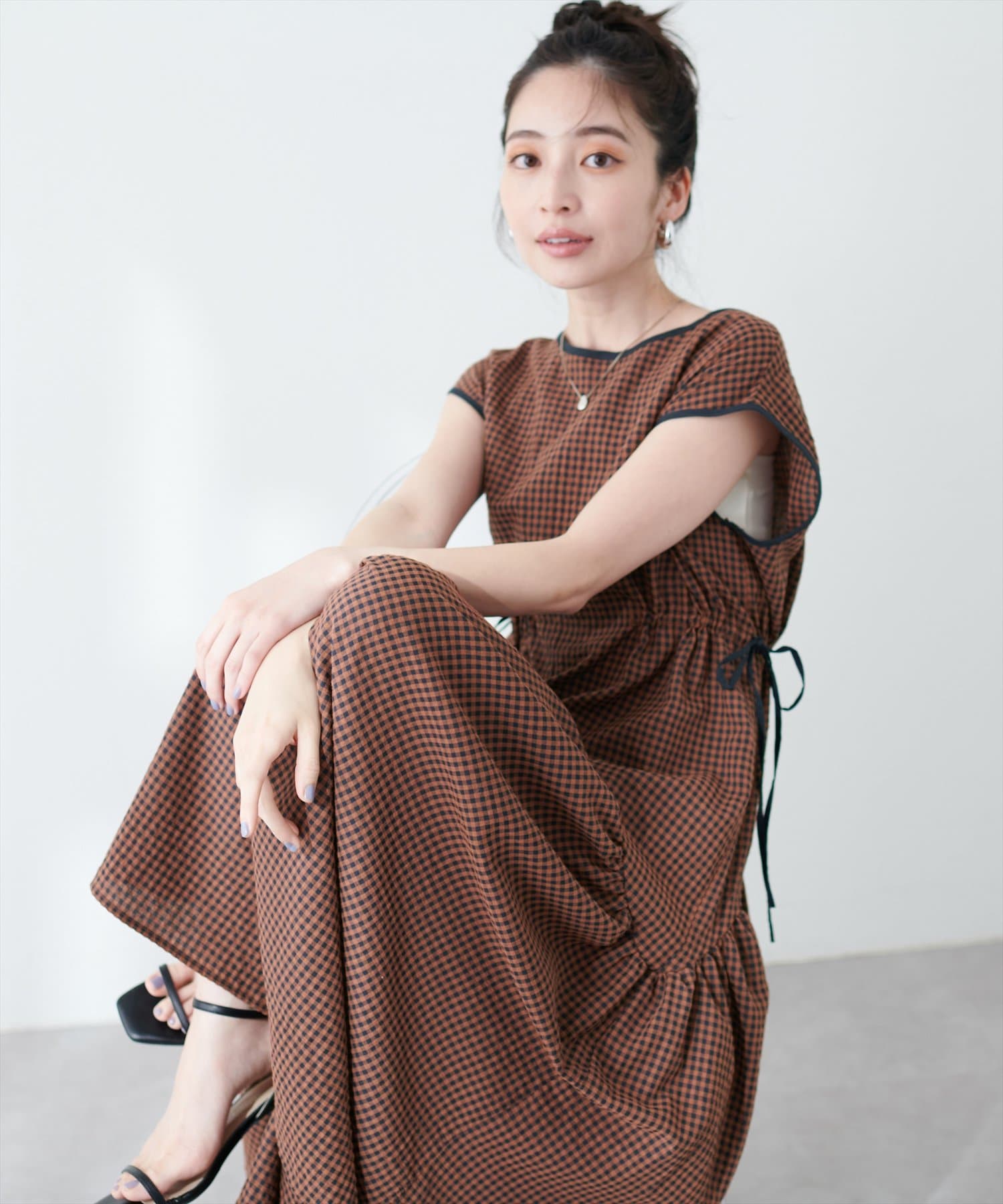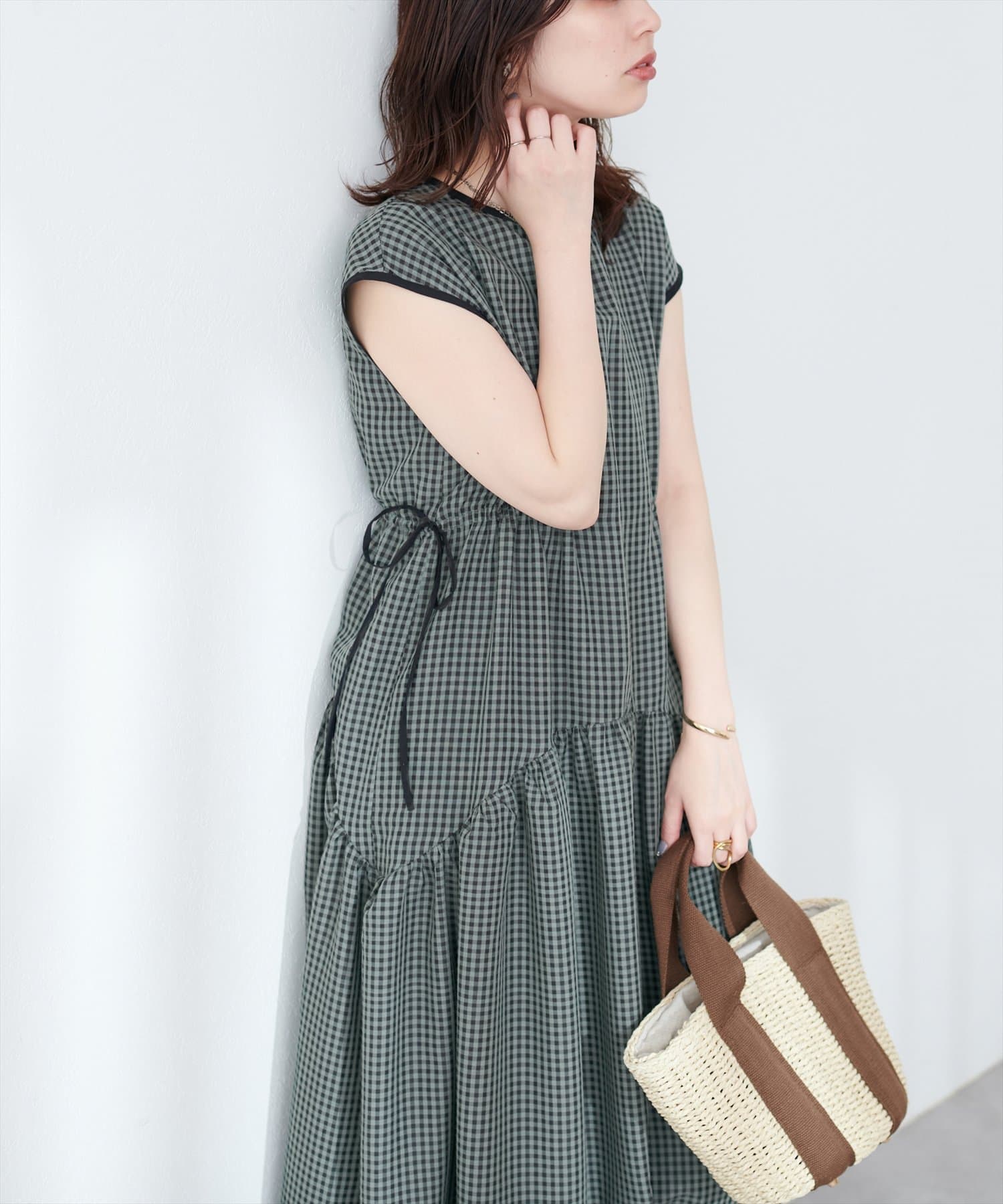 【WEB限定】ドロストデザインチェック柄ワンピース