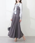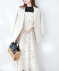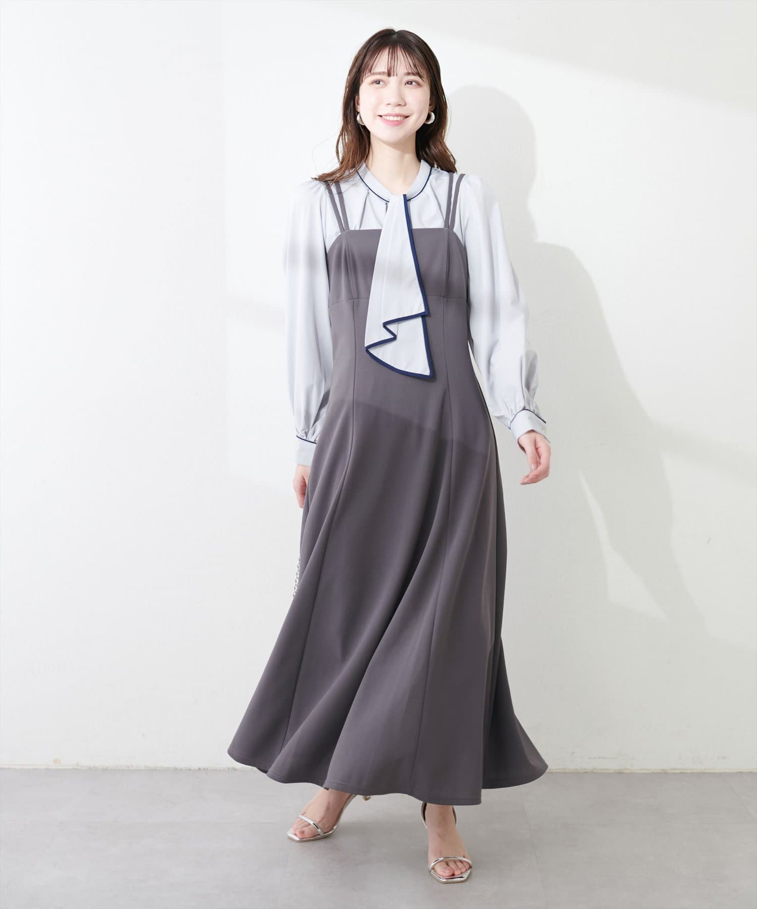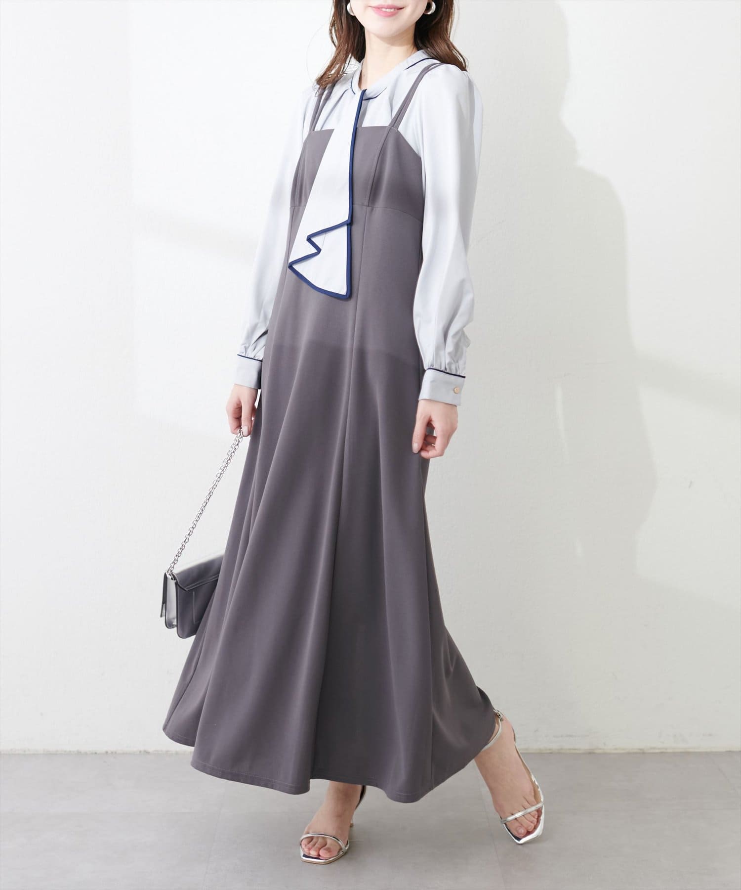 裾にかけてのゆるやかなフレアシルエットが女性らしさを演出し、身体のラインをすっきり見せてくれる大人レディな一着。