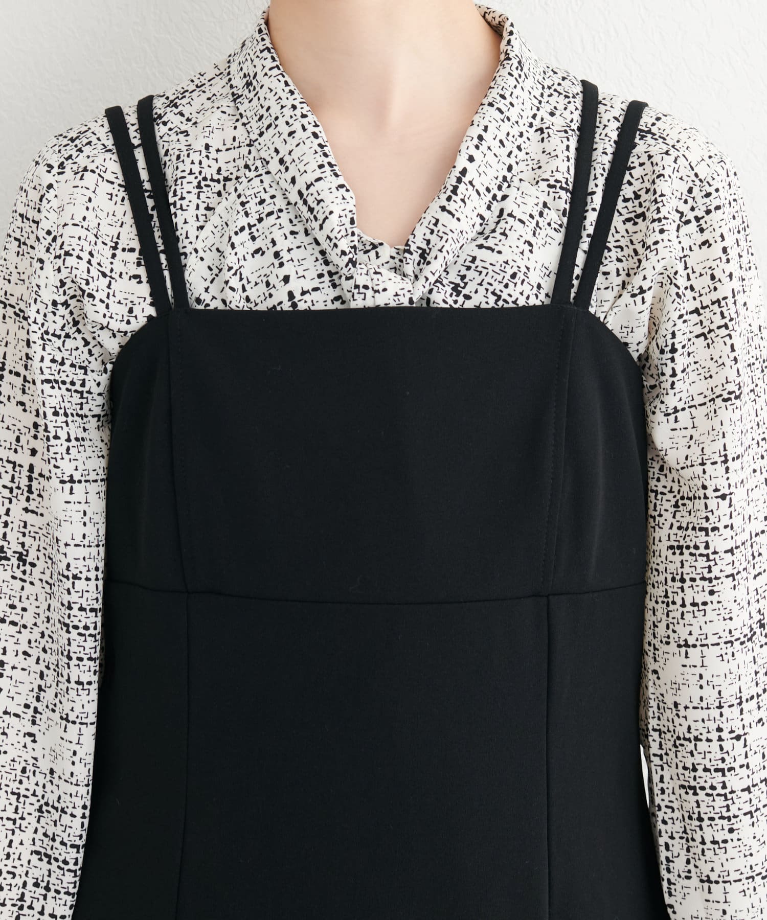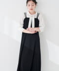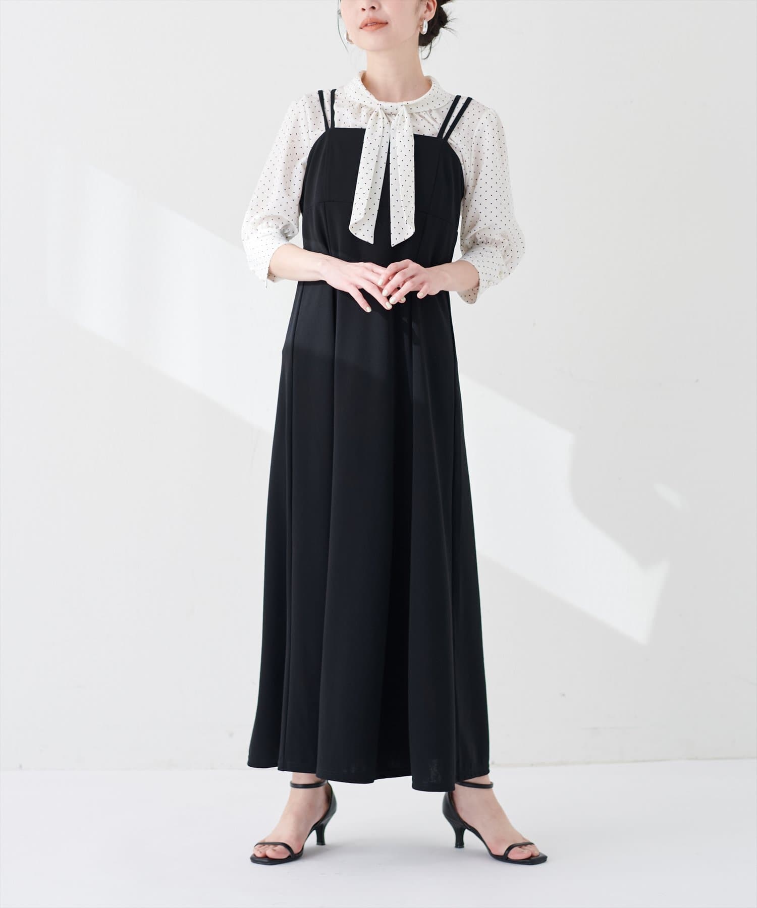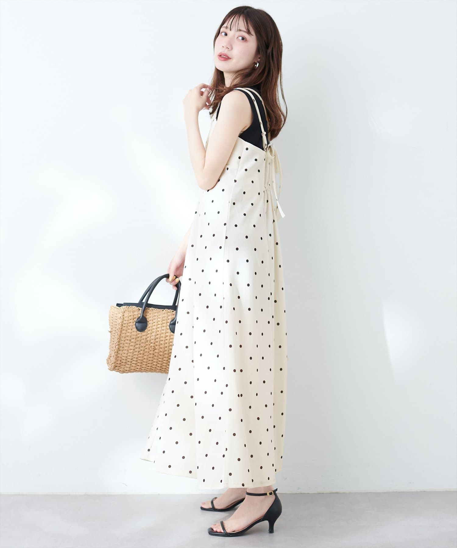 肩ヒモとリボンの2本使いで後ろ姿まで抜かりなく!アジャスターで着丈の調節もラクラクです。