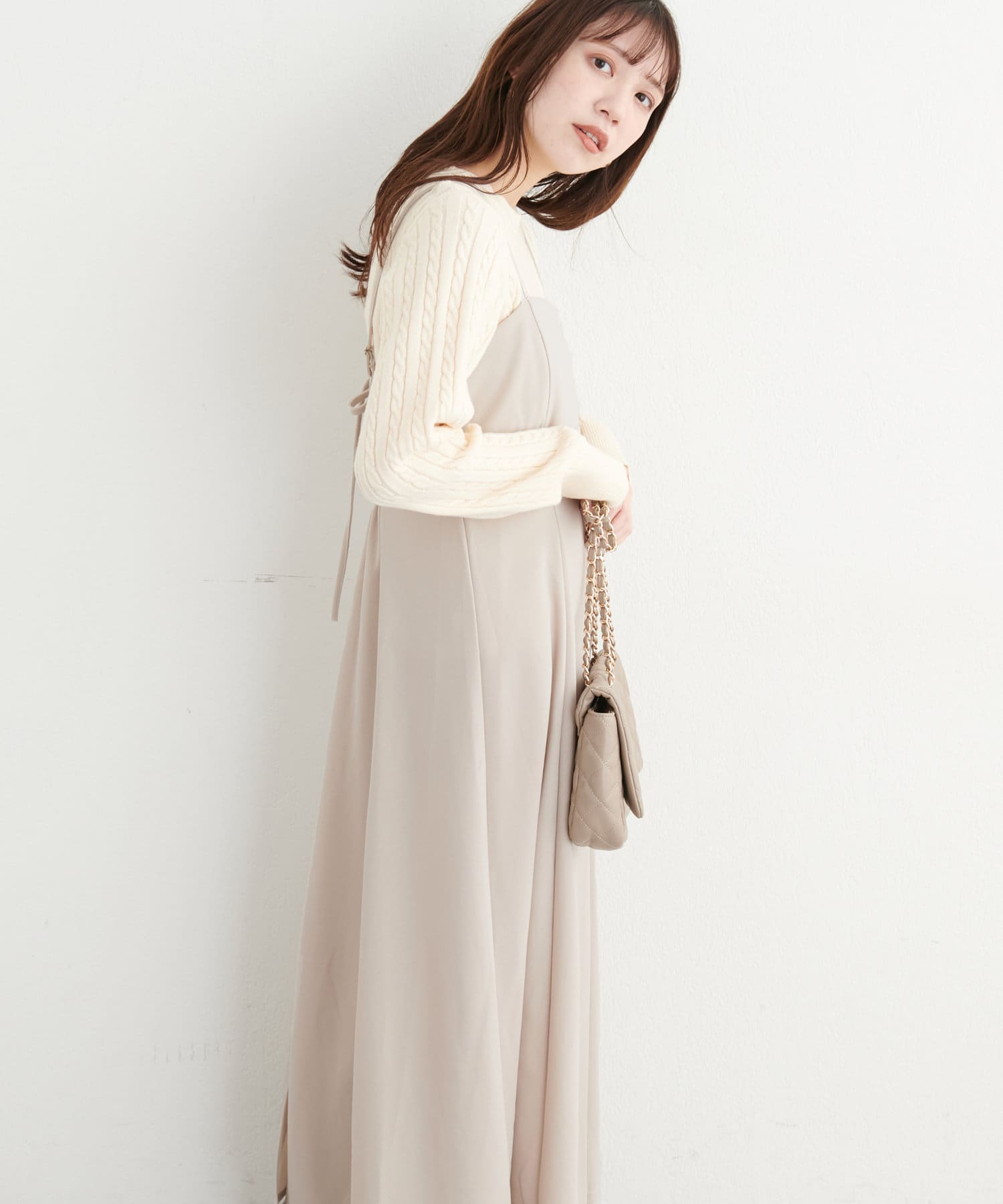 キャミワンピに抵抗があったのですが、これでデビューしました!ベージュなので何に合わせてもオシャレになって合わせやすいです!
