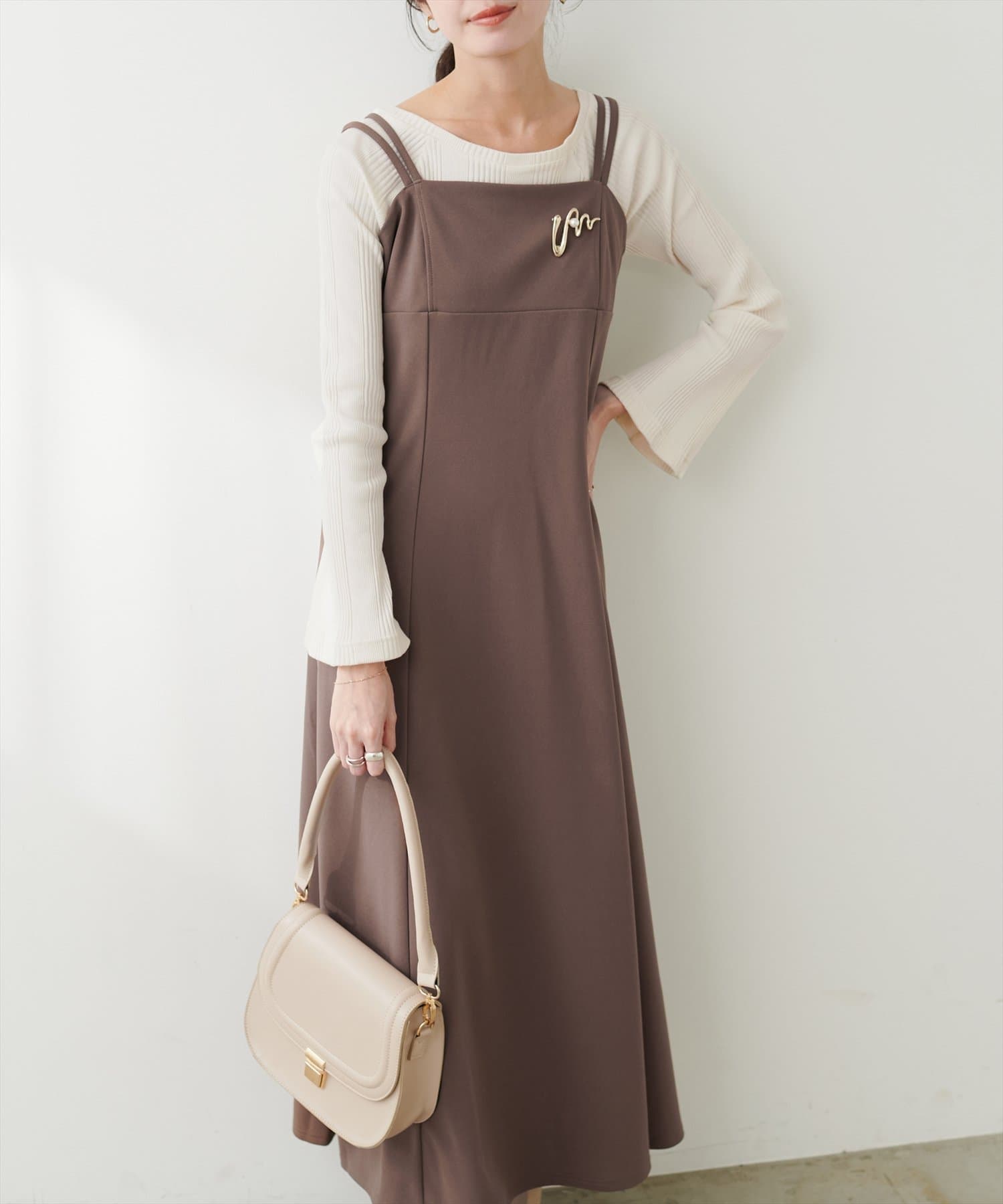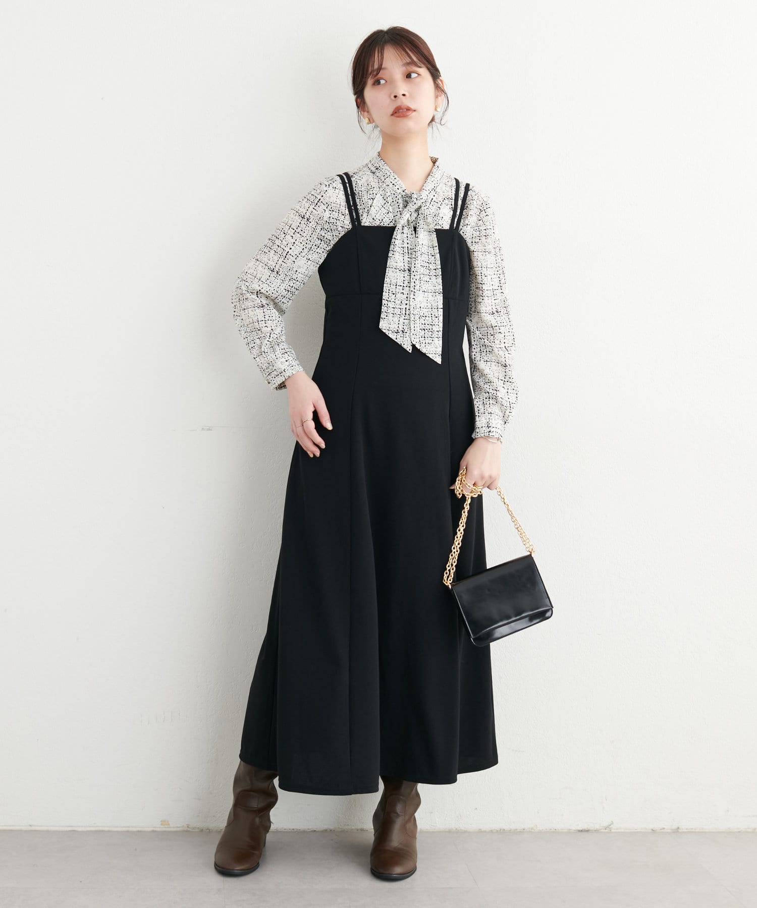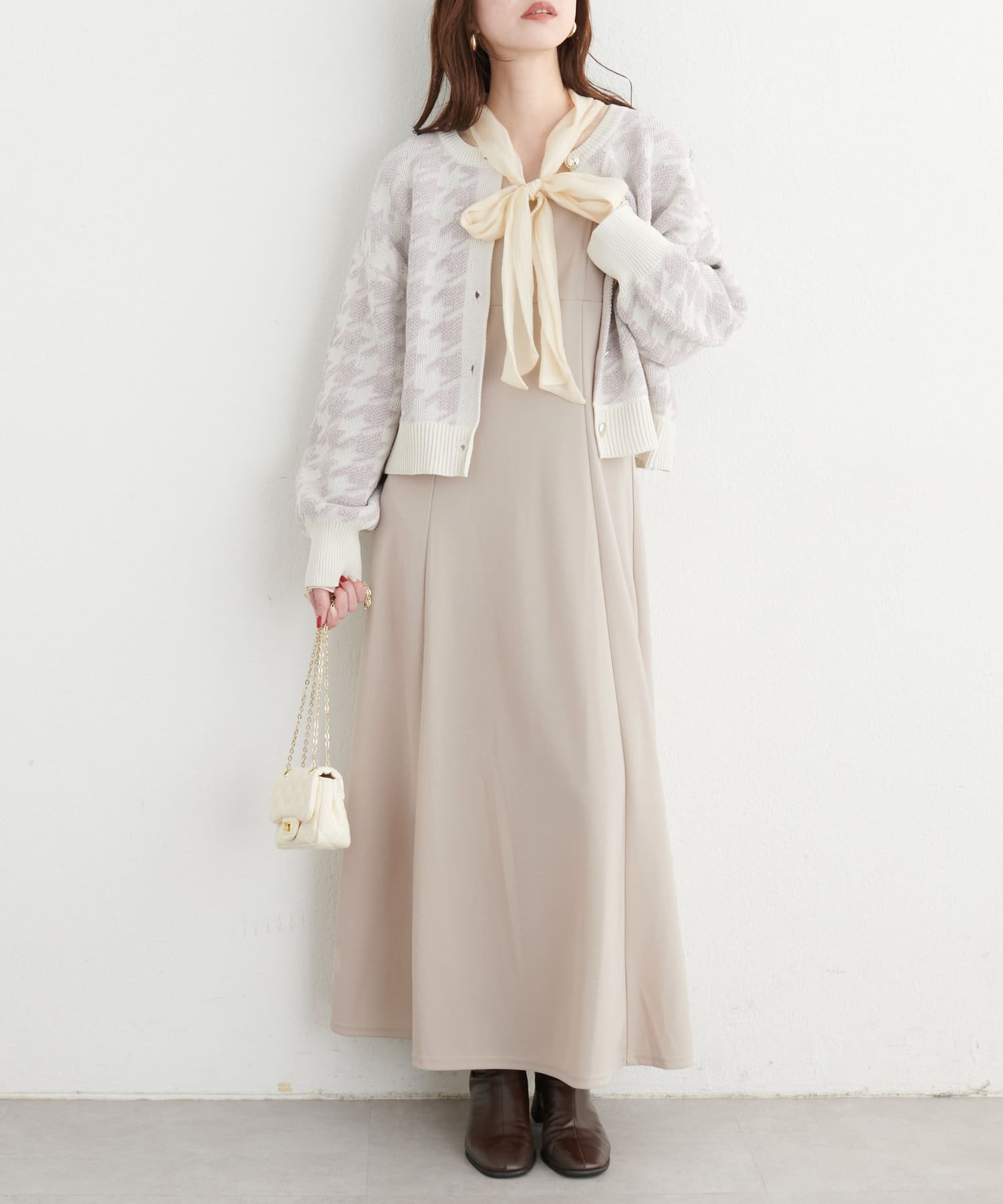 ニットなどをワンピの上に着て、レイヤードスタイルでも秋冬らしく決まります。