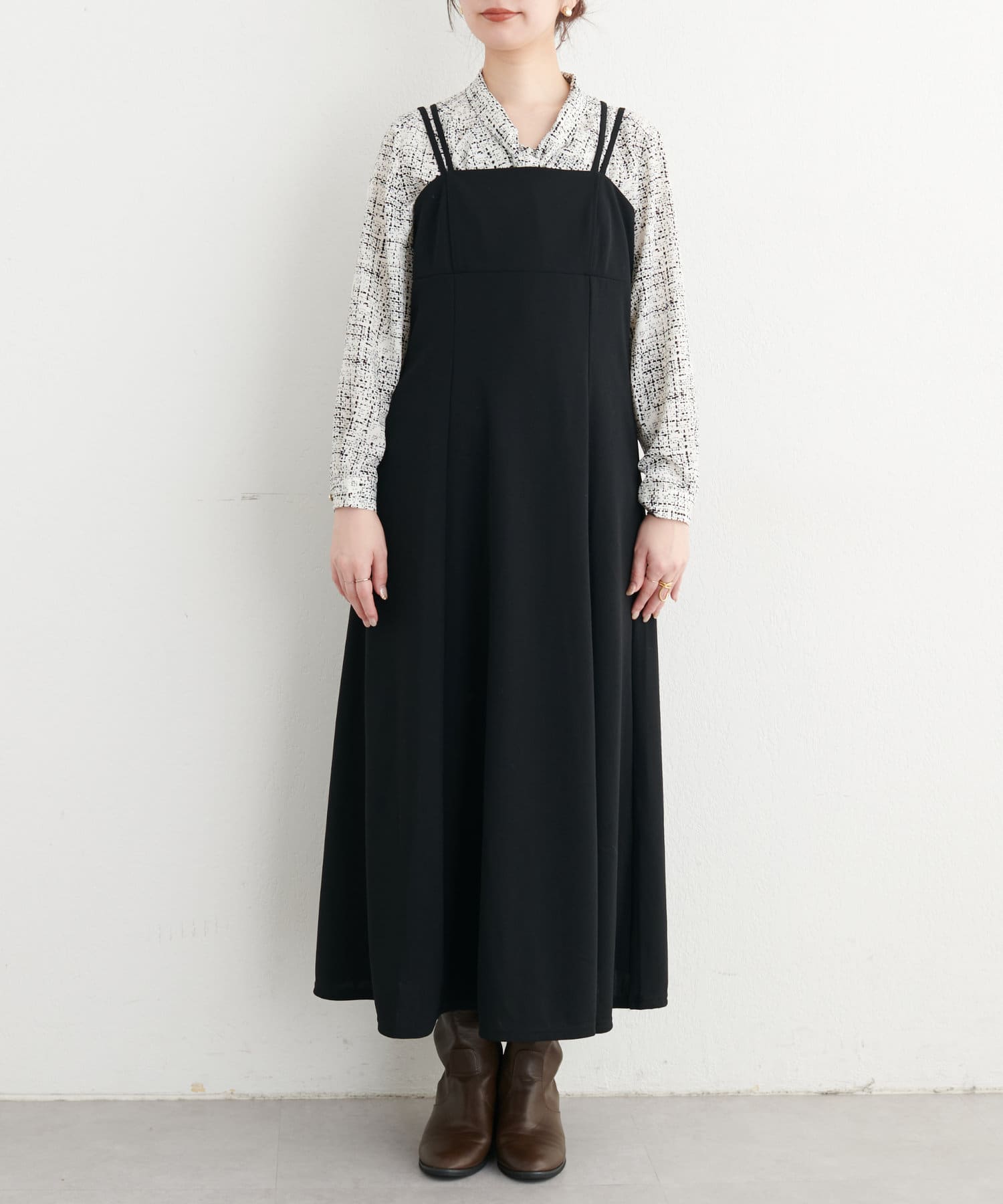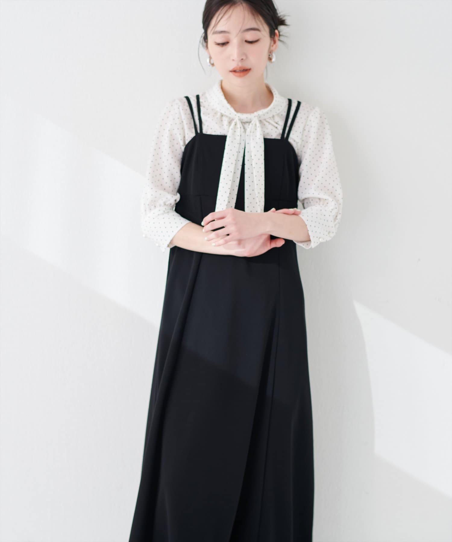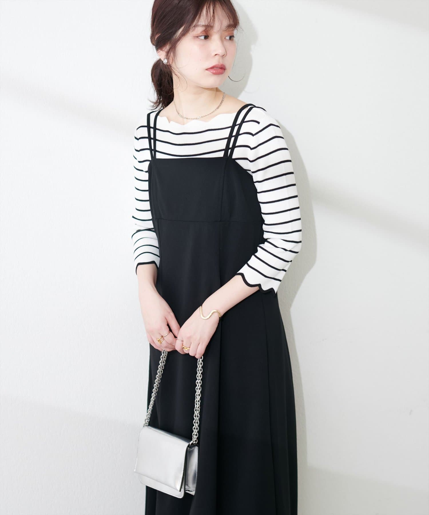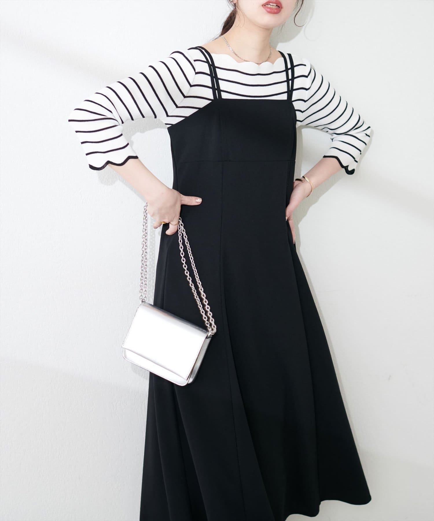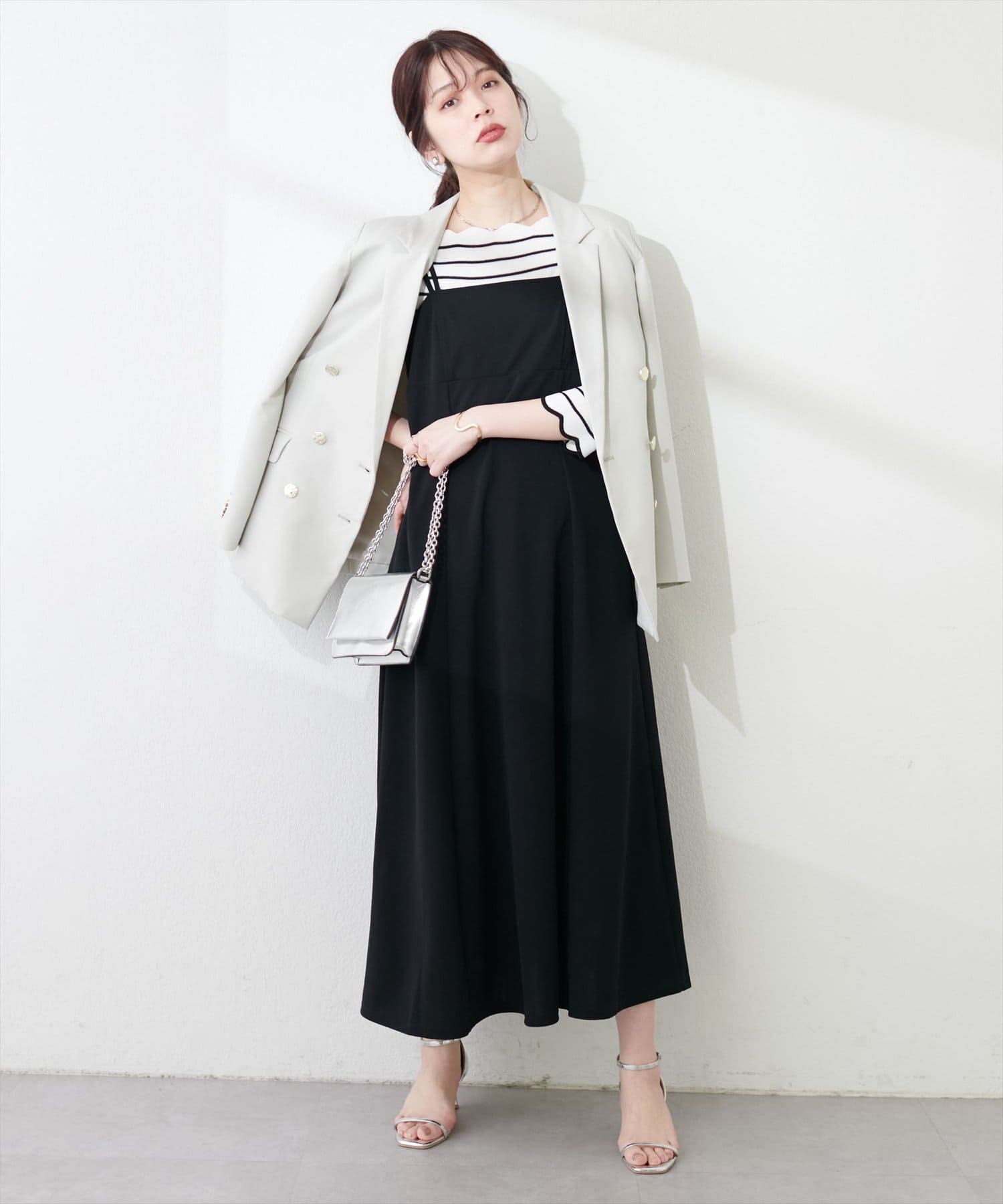 黒のキャミワンピースは何枚かあるのですが、こちらは試着してみたら、本当にスタイルアップしたので購入しました。カラダのラインにそって綺麗に着れます。コスパも良いです。