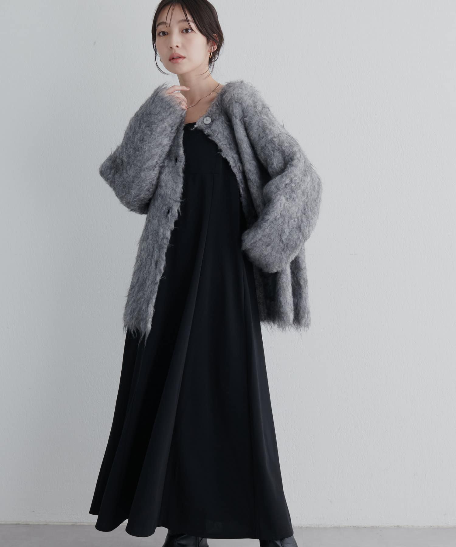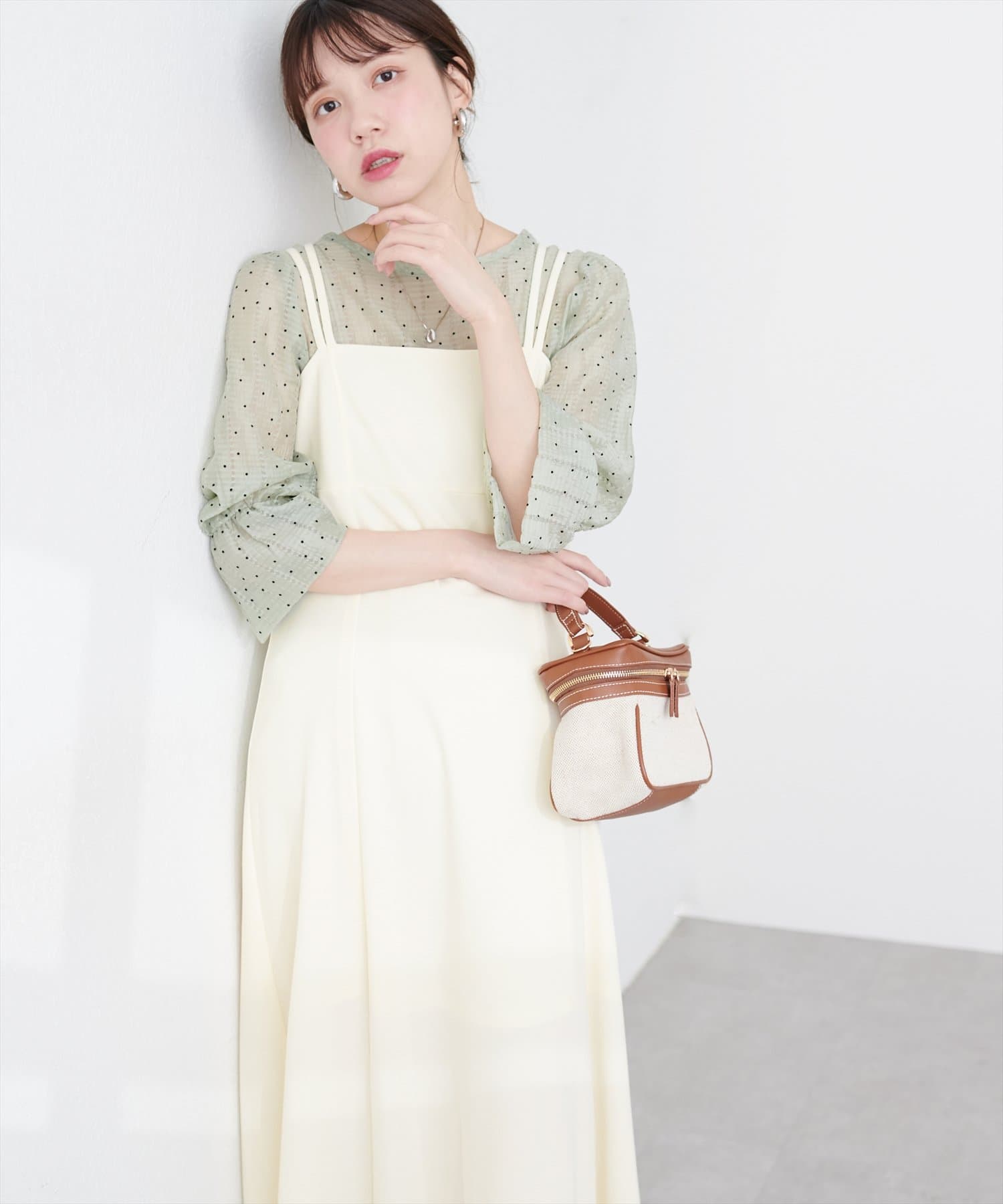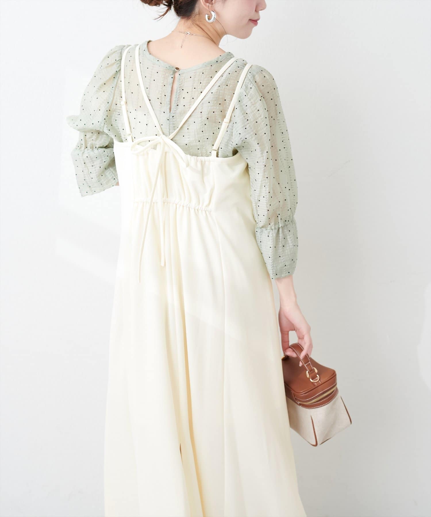 natural couture(ナチュラルクチュール) 再販 / カットジョーゼットキャミワンピース
