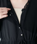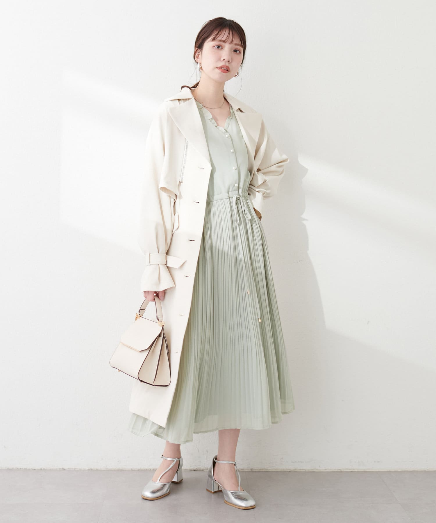 ウエストのドロストリボンを絞ればよりきれいめなスタイリングに。