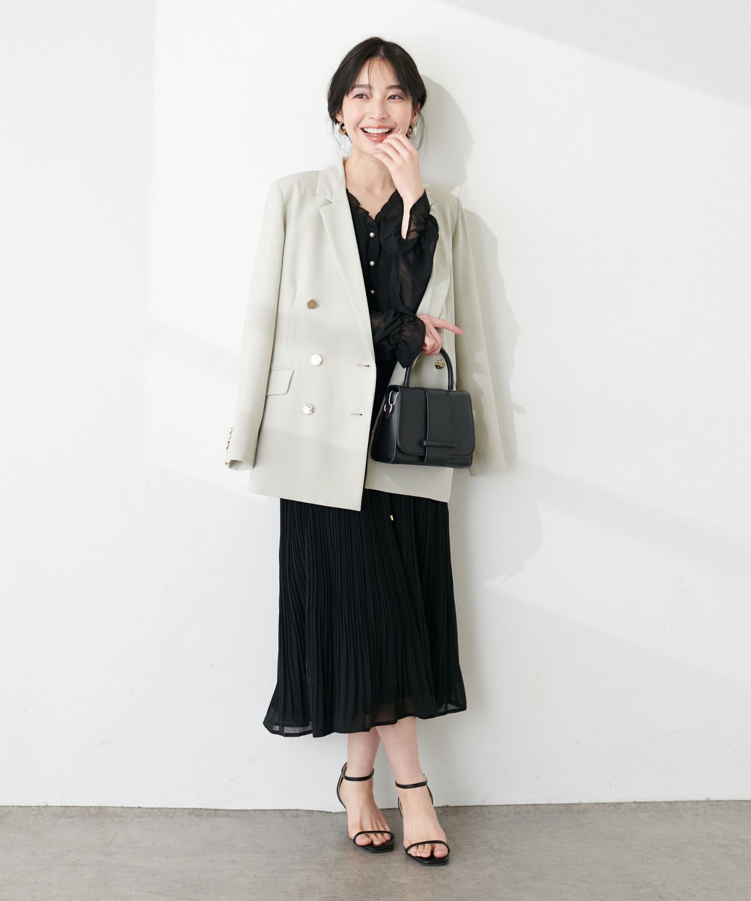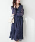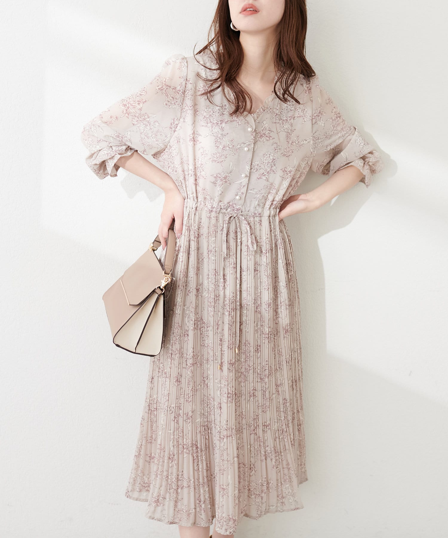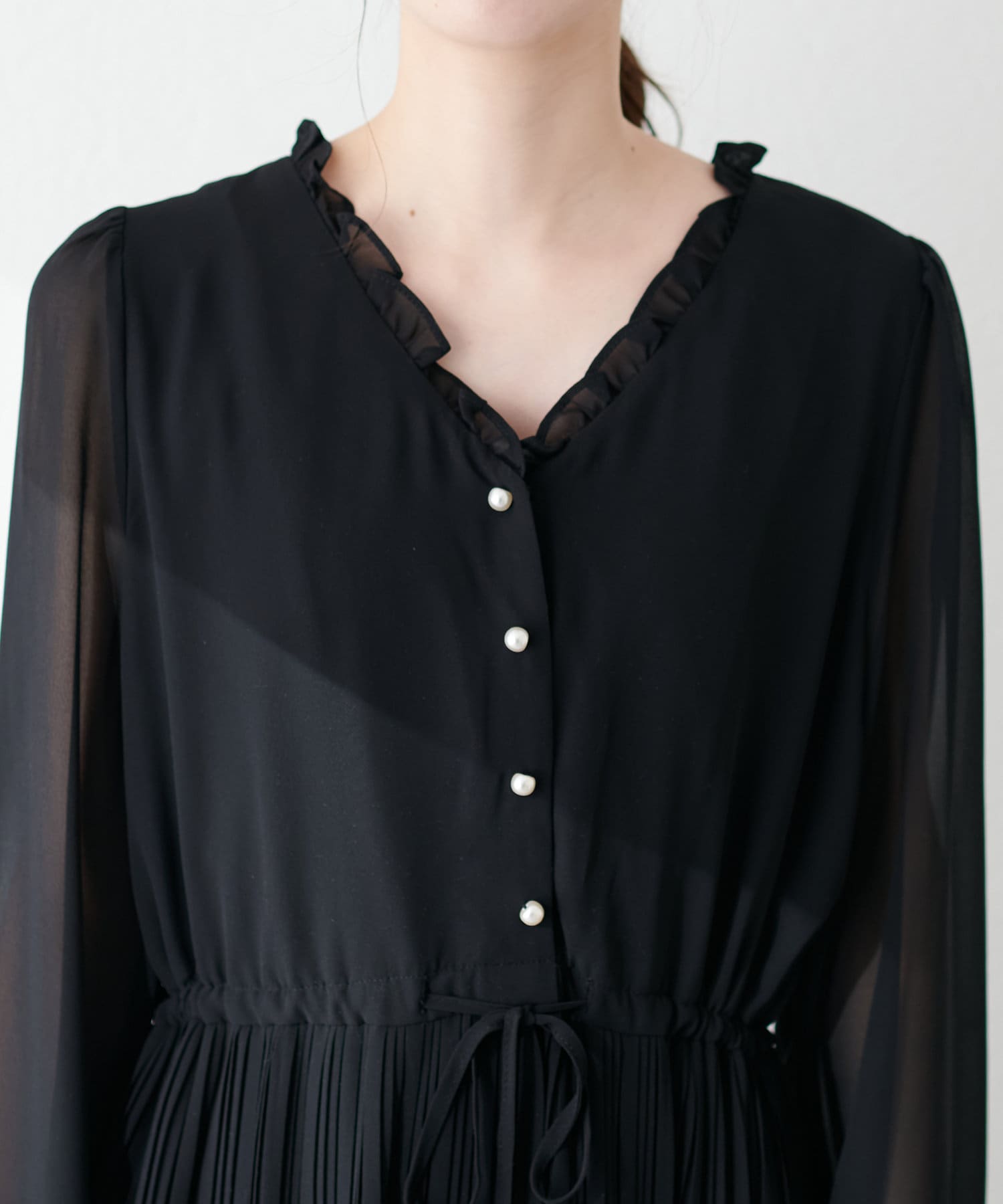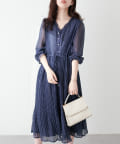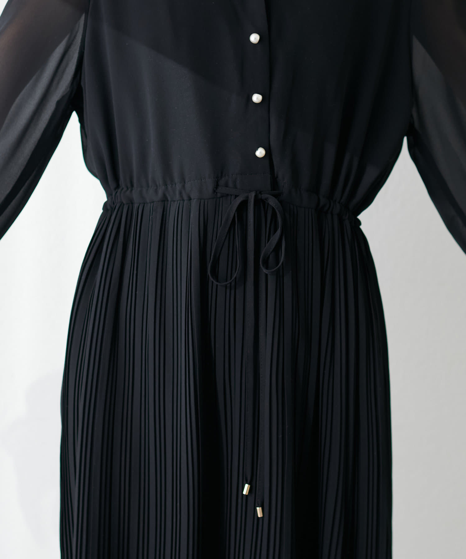 たっぷりのシフォンと細かなプリーツが動くたびにゆったりと揺れ、女性らしさを引き立ててくれるレディなワンピース。