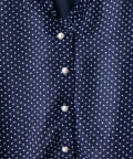 パール釦はスナップ式になっていて簡単に開閉でき、服を着たまま授乳ができる前開き仕様で、マタニティ期から産後まで大活躍の1着。