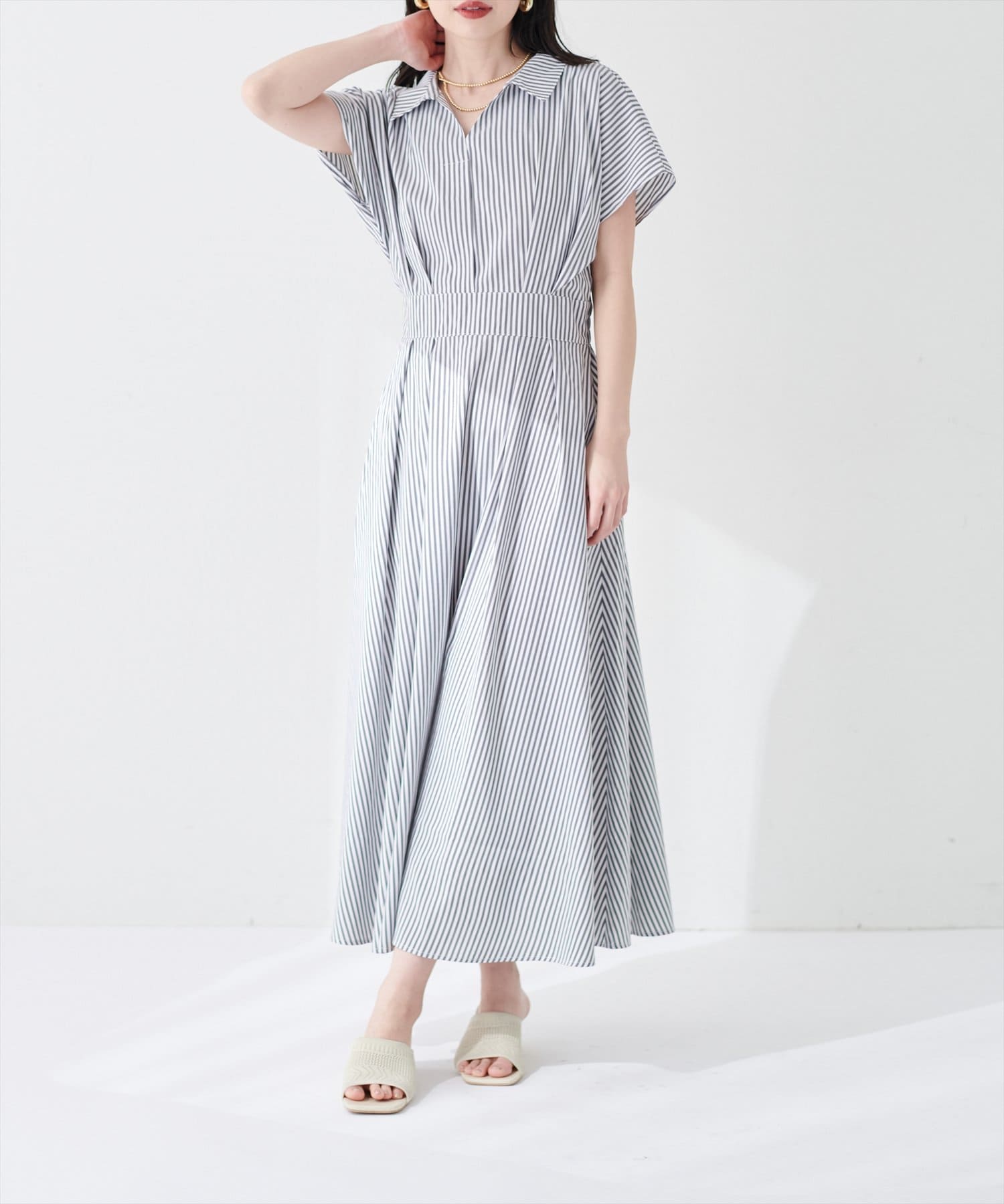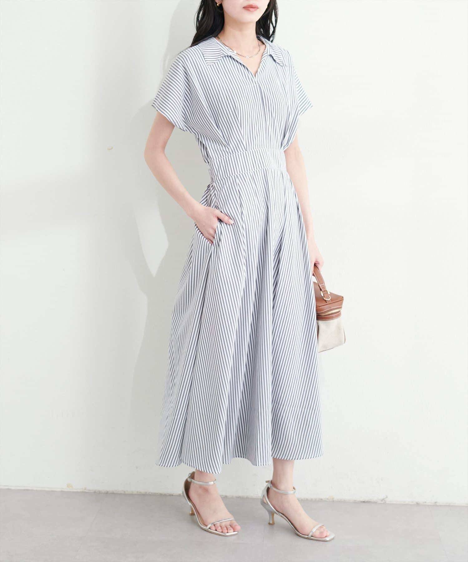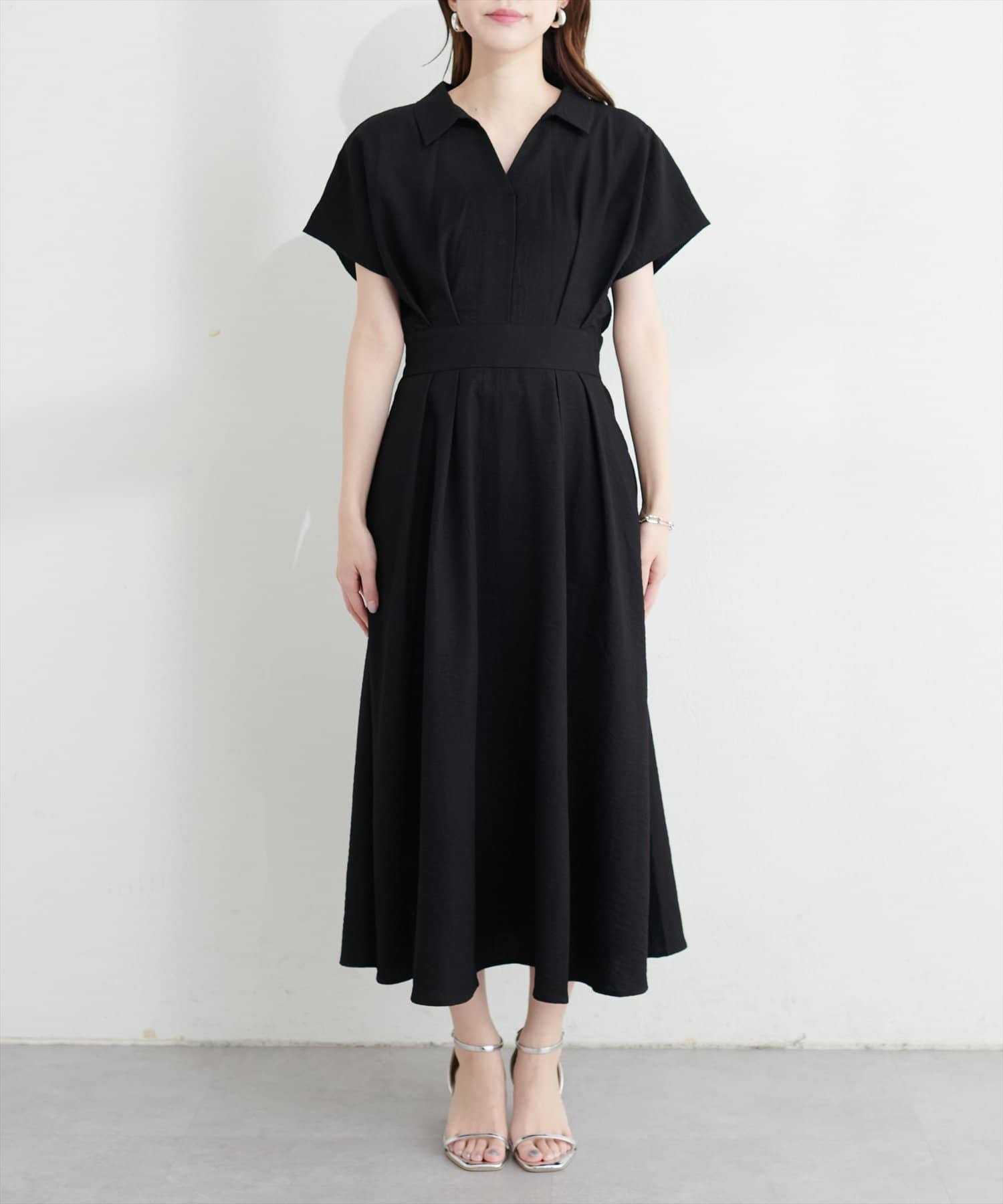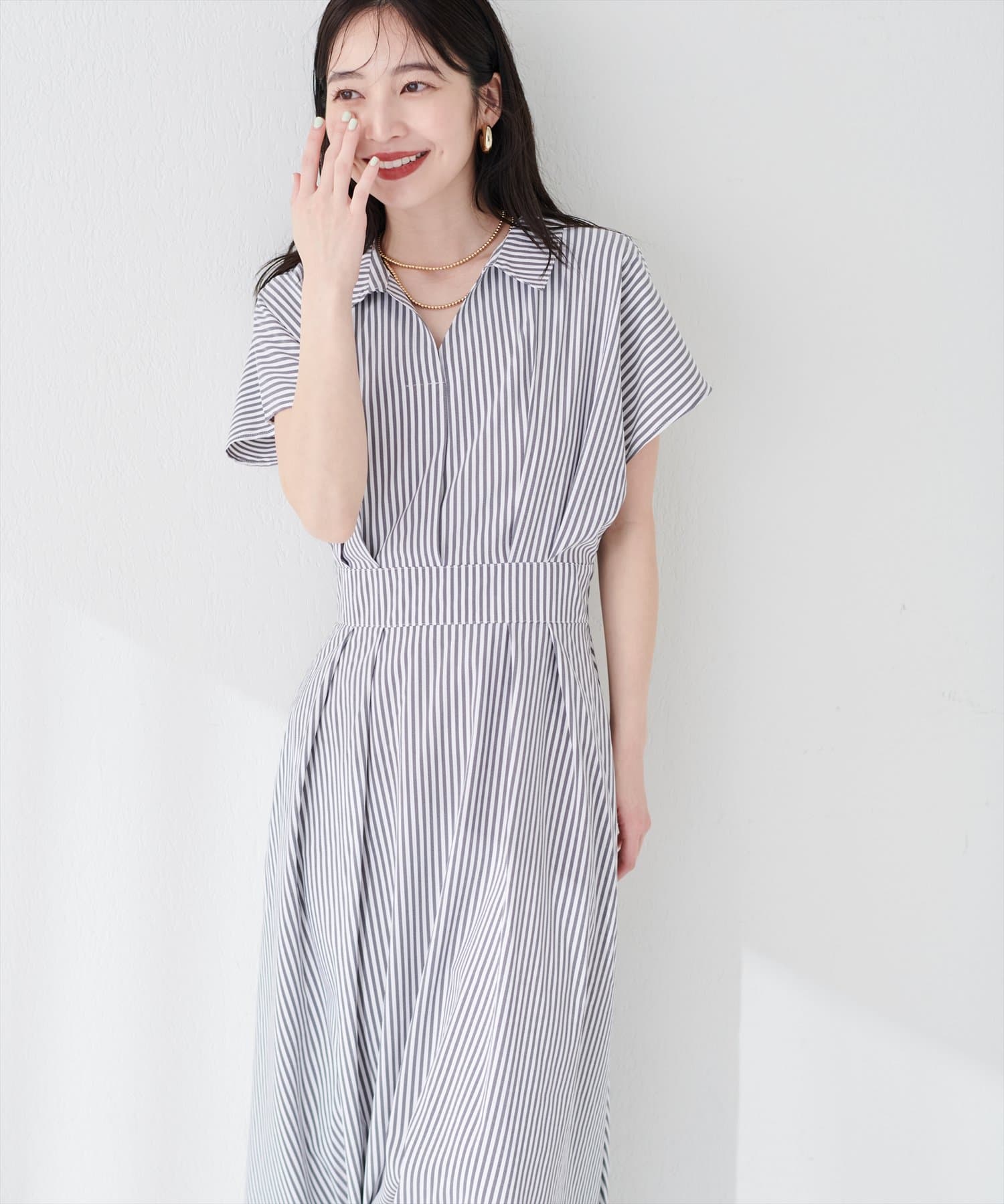 natural couture(ナチュラルクチュール) 涼しげスキッパー衿お上品ワンピース