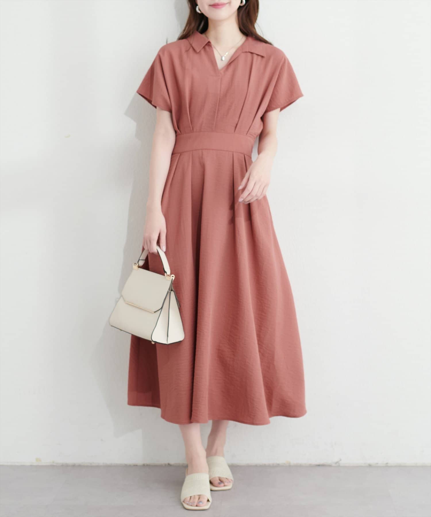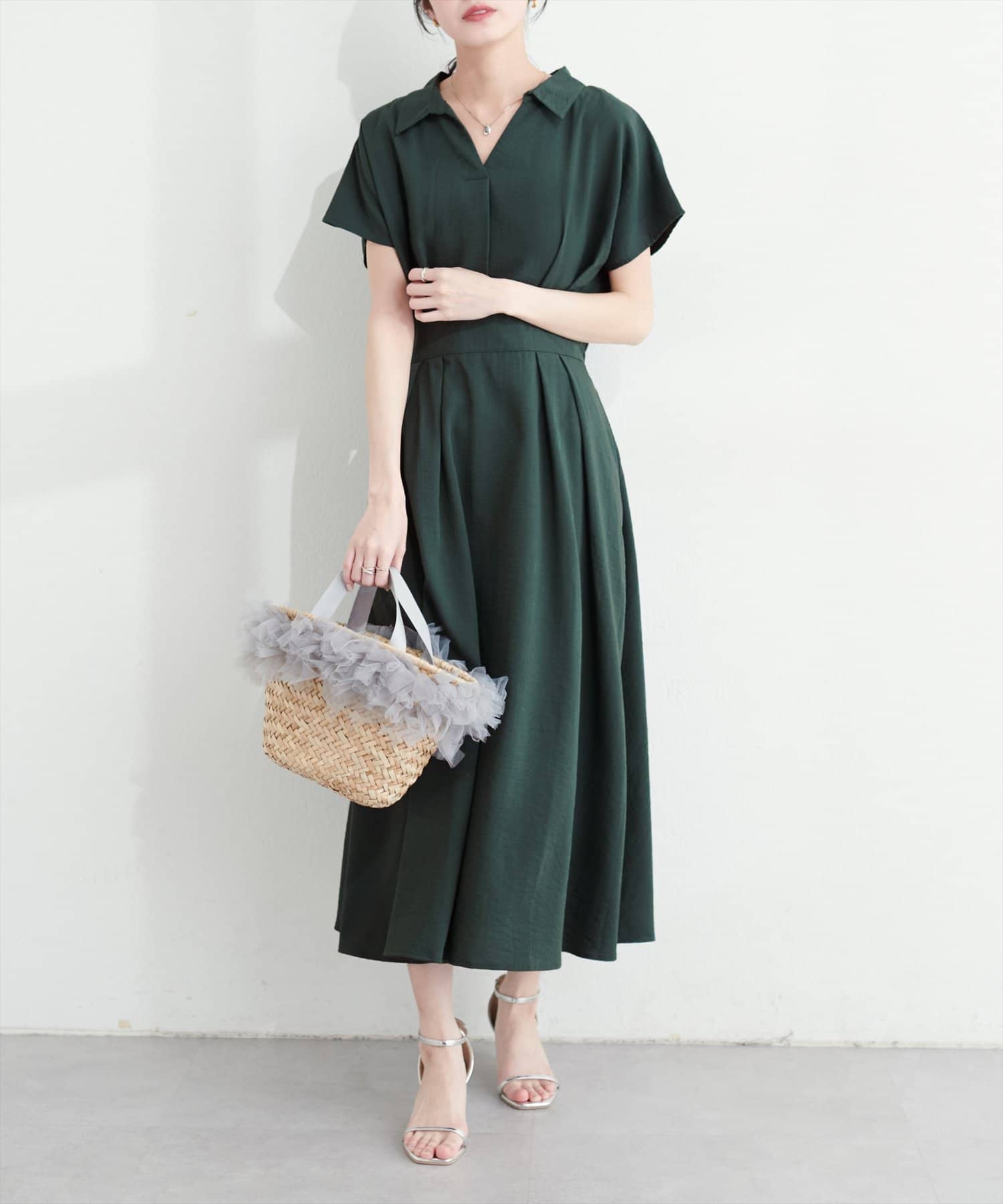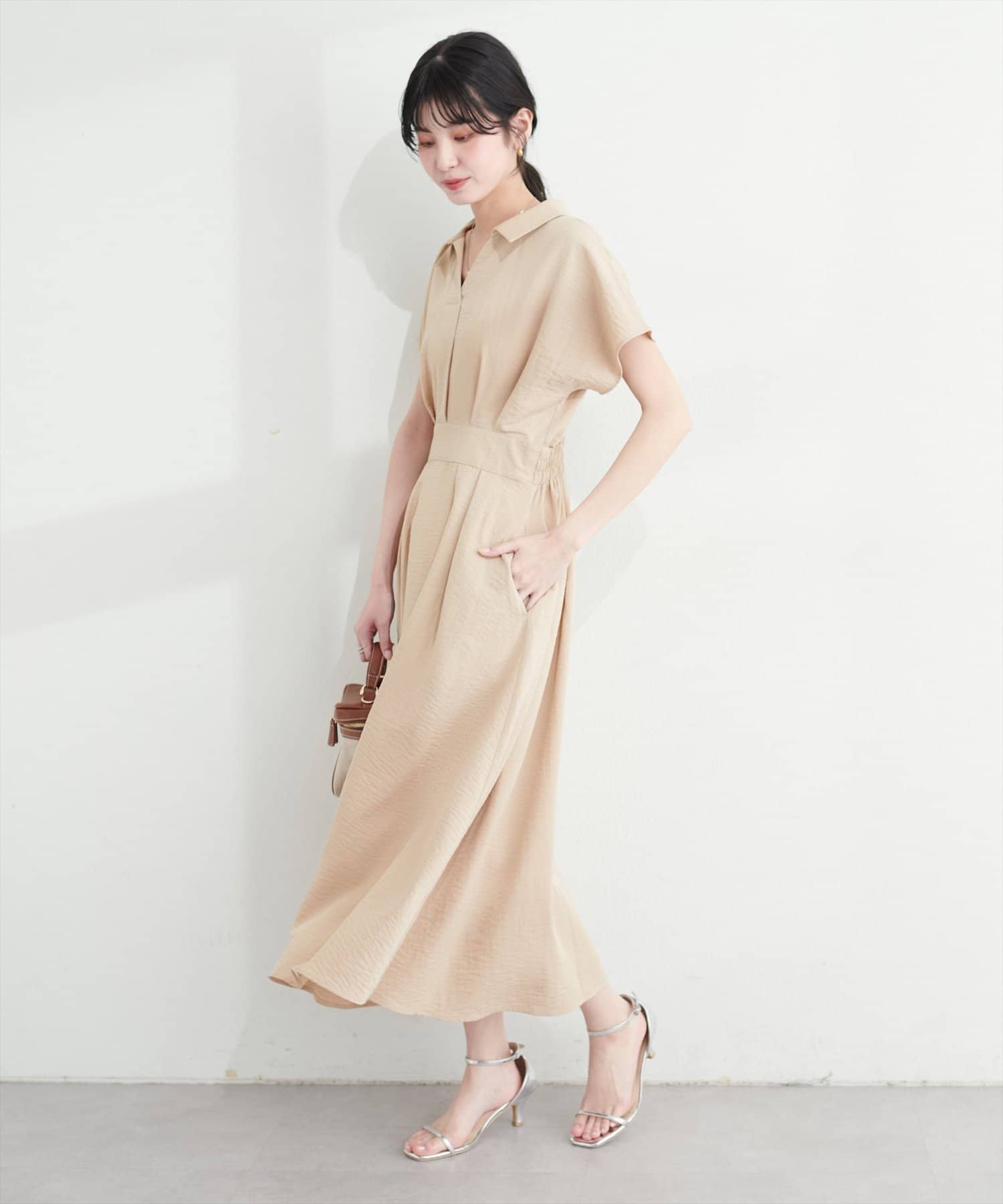 natural couture(ナチュラルクチュール) 涼しげスキッパー衿お上品ワンピース