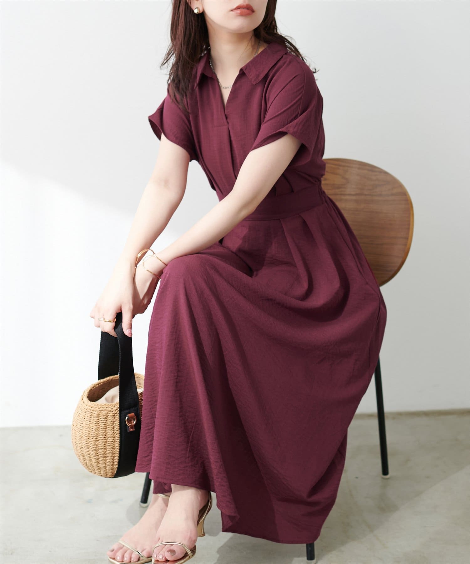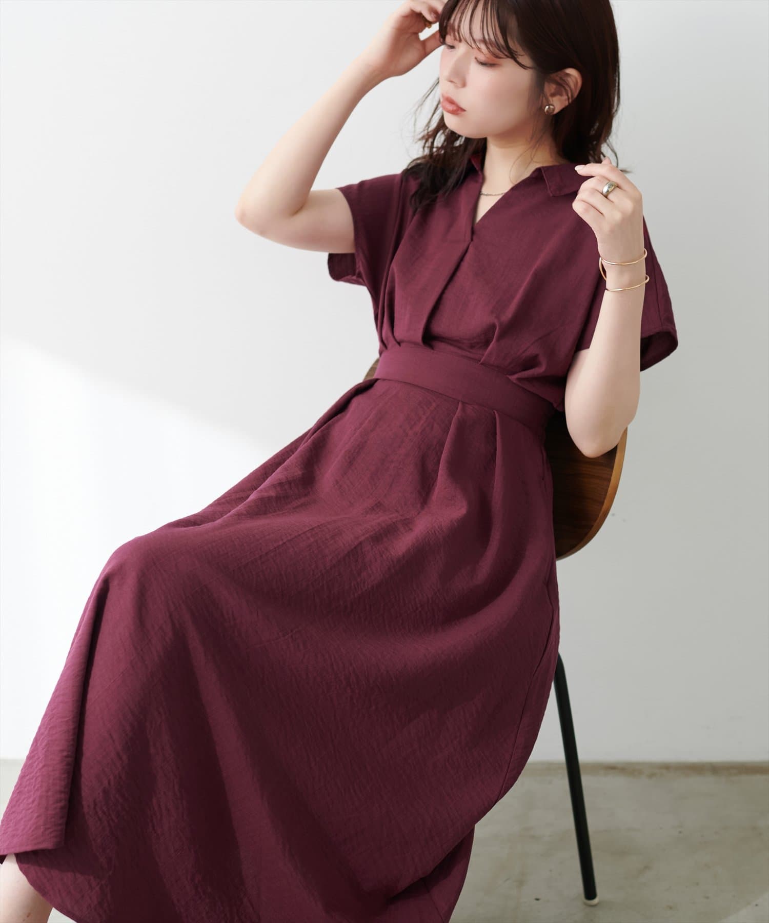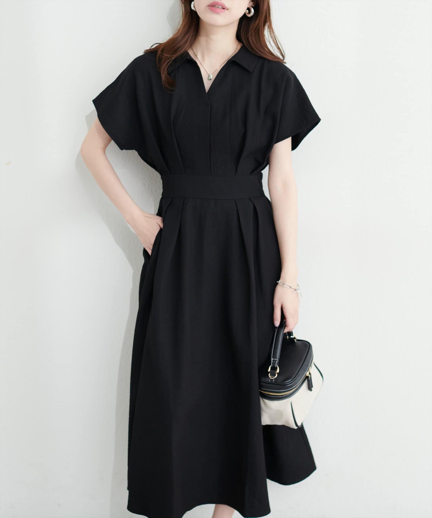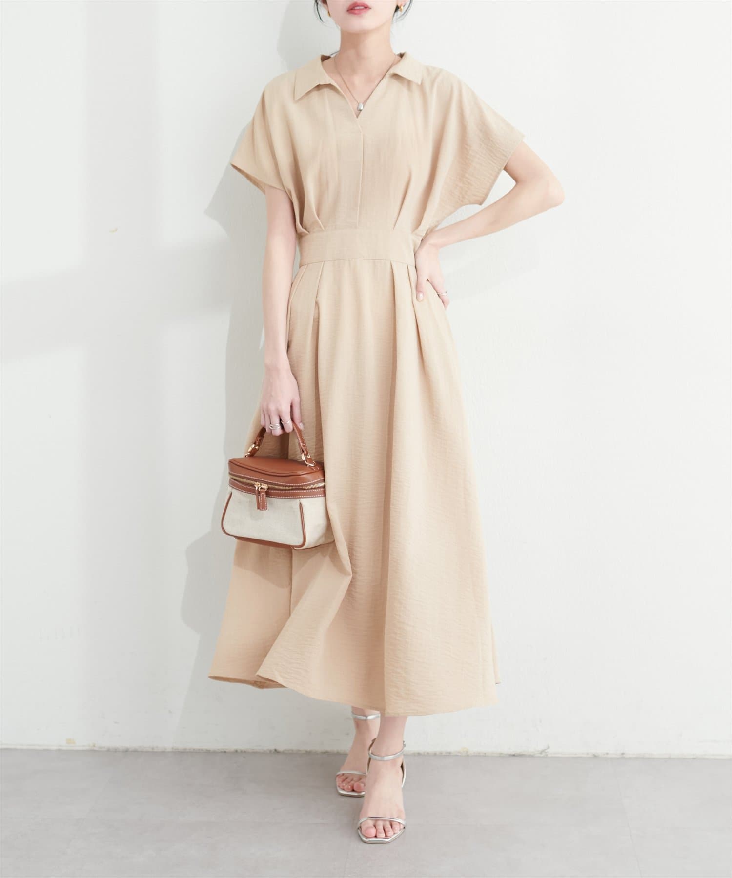 natural couture(ナチュラルクチュール) 涼しげスキッパー衿お上品ワンピース