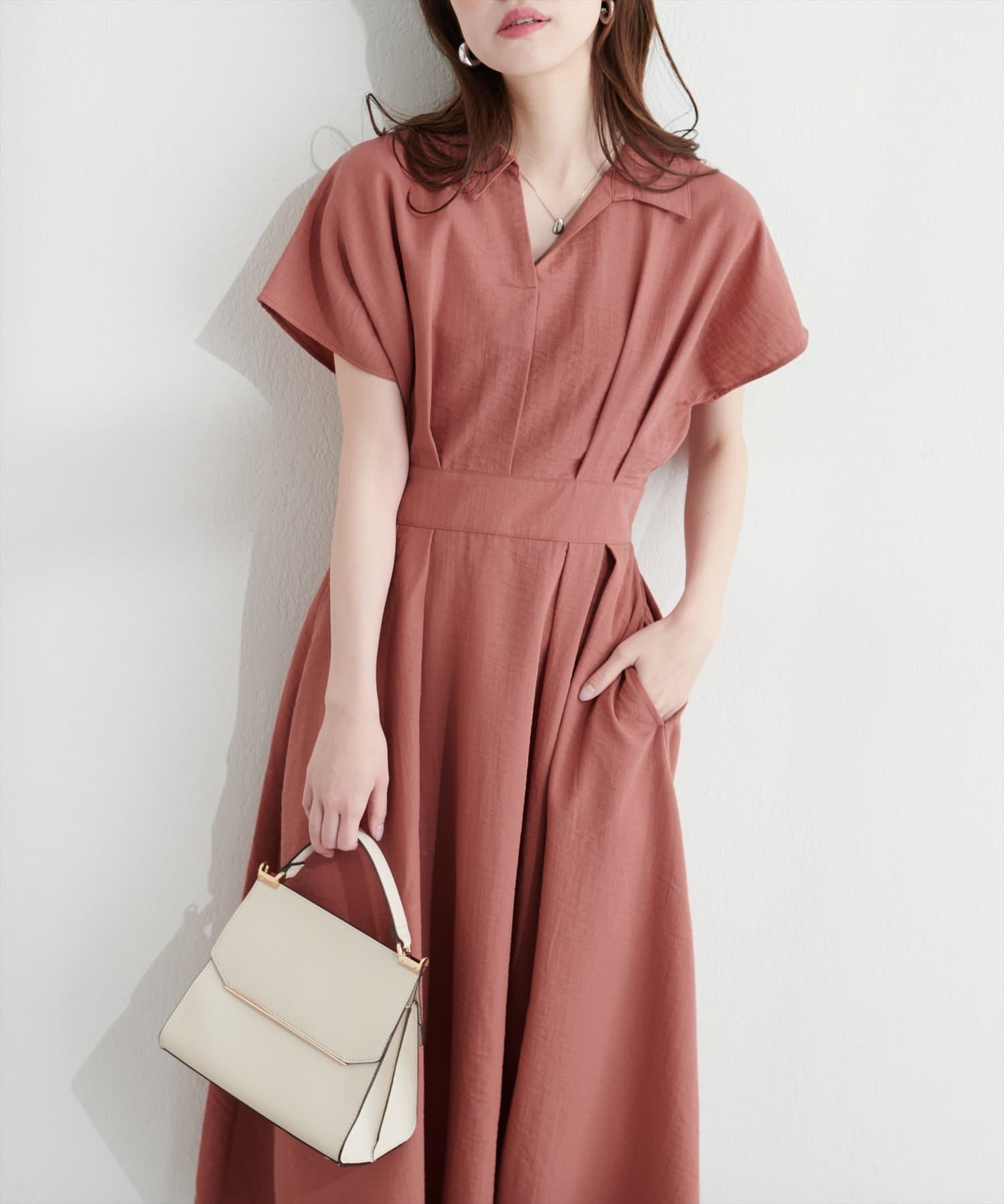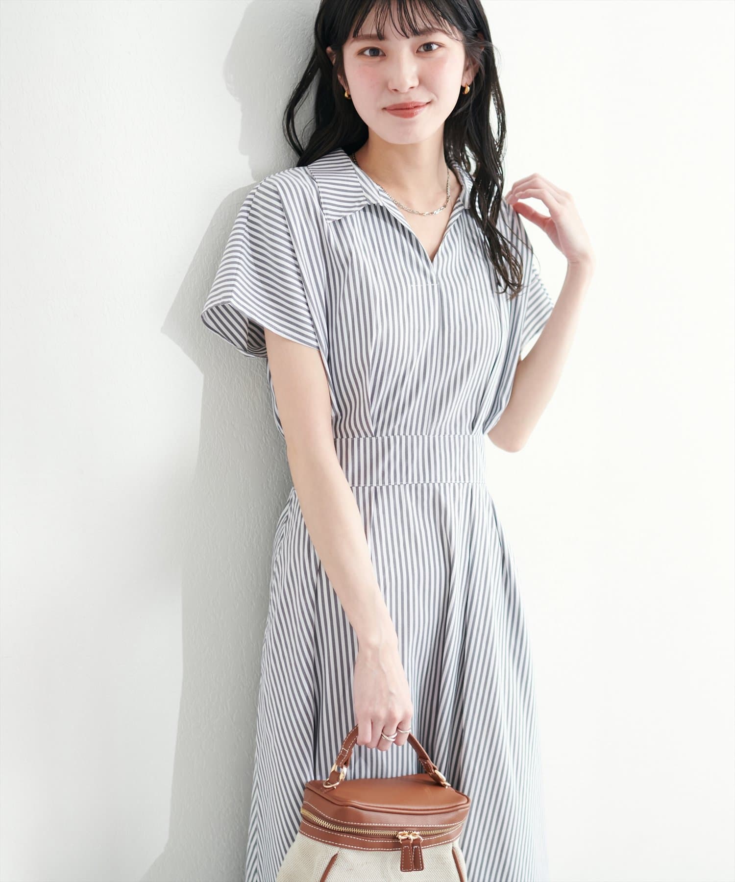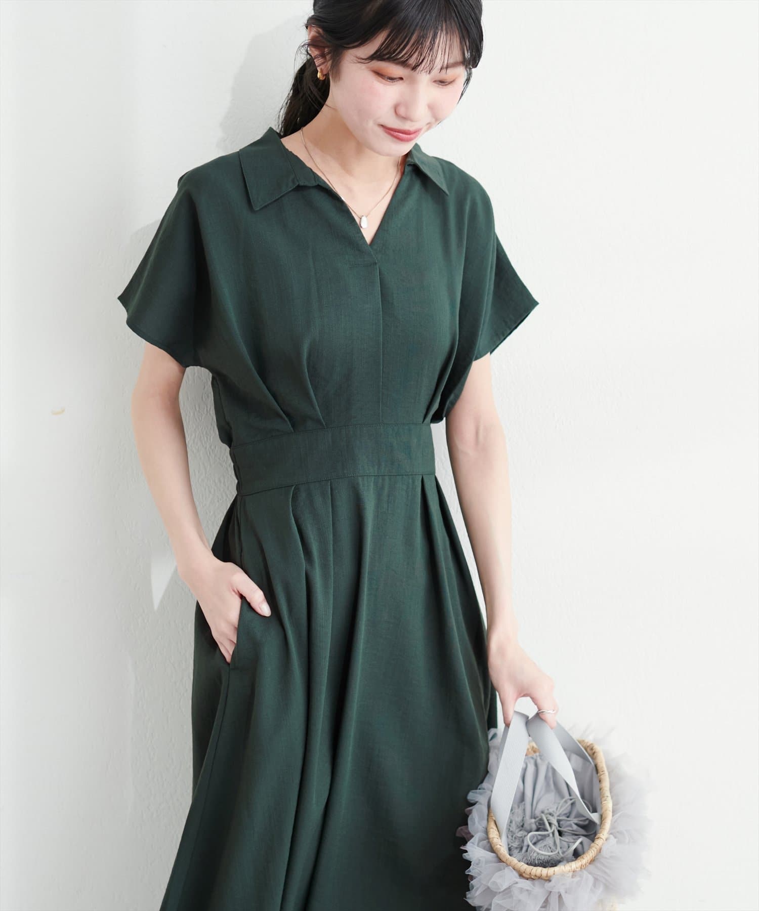 TOP > natural couture > レディース > ワンピース > ワンピース > 涼しげスキッパー衿お上品ワンピース