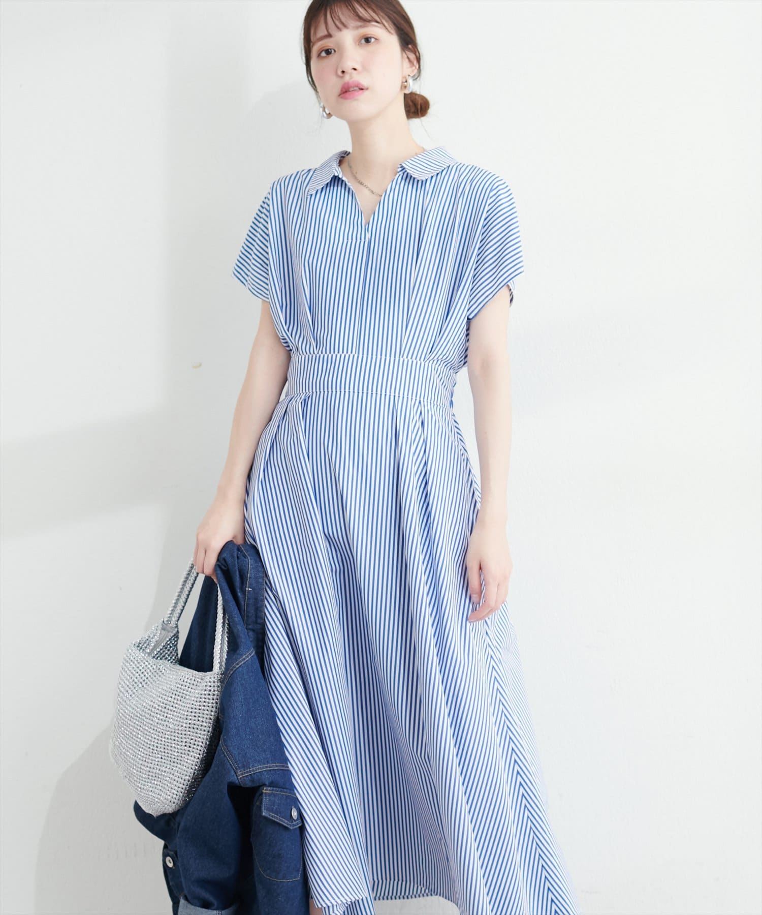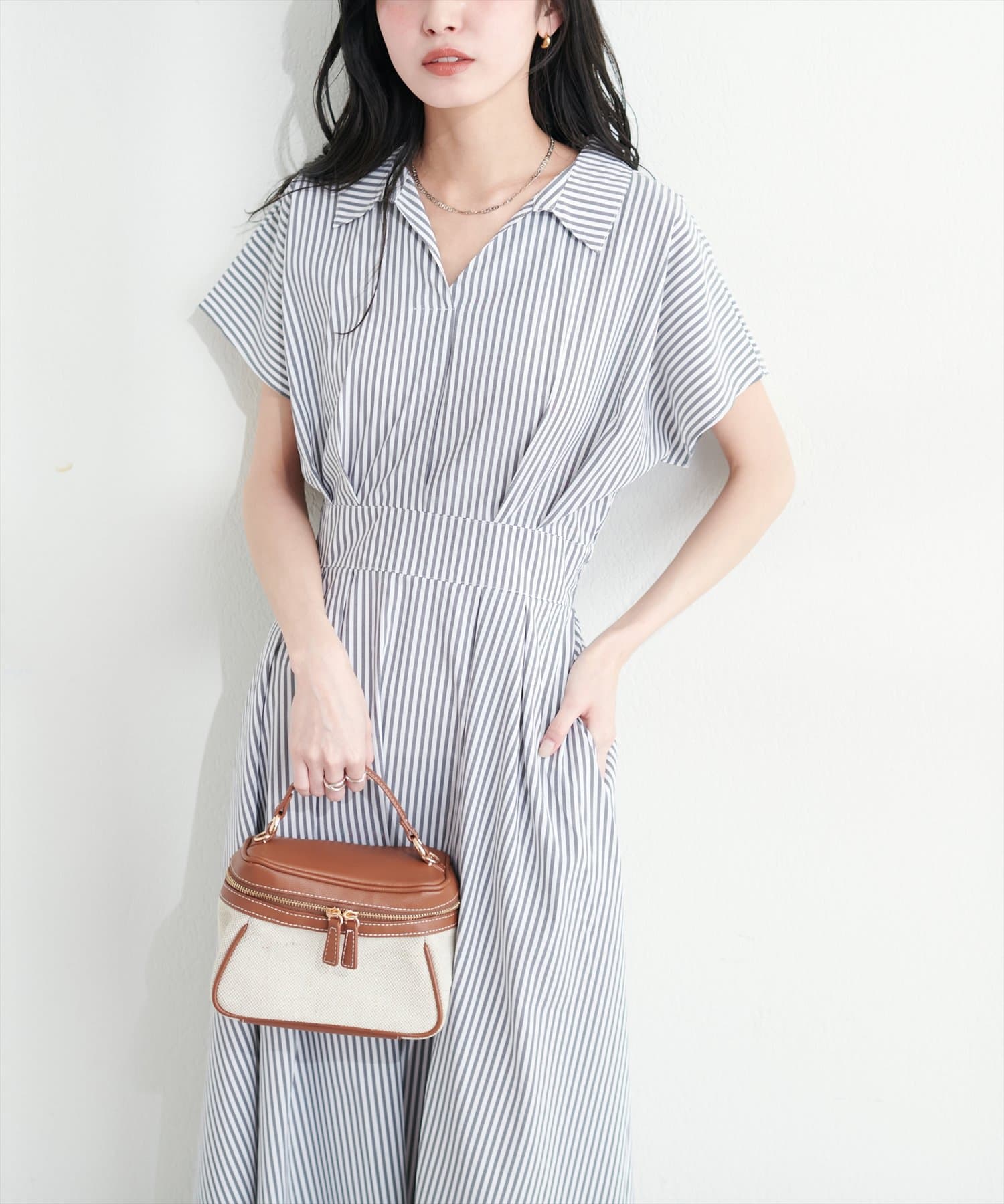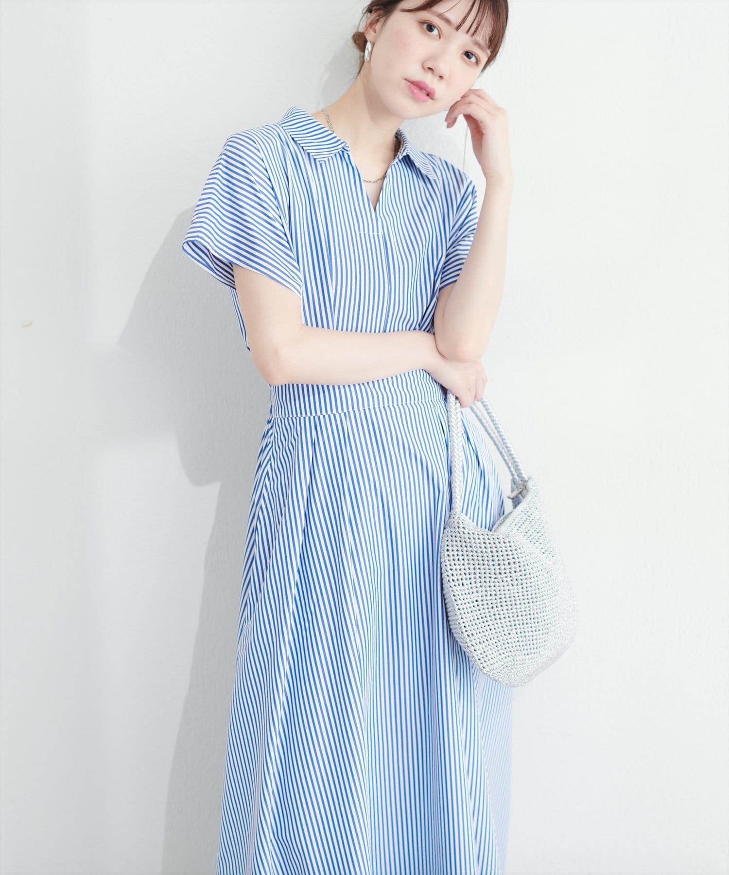 TOP > natural couture > レディース > ワンピース > ワンピース > 涼しげスキッパー衿お上品ワンピース