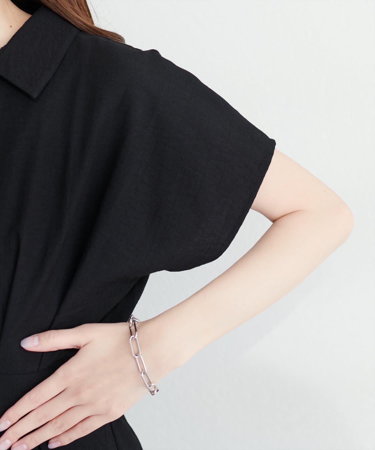 デコルテラインをすっきりヘルシーに見せてくれるスキッパーデザインと、