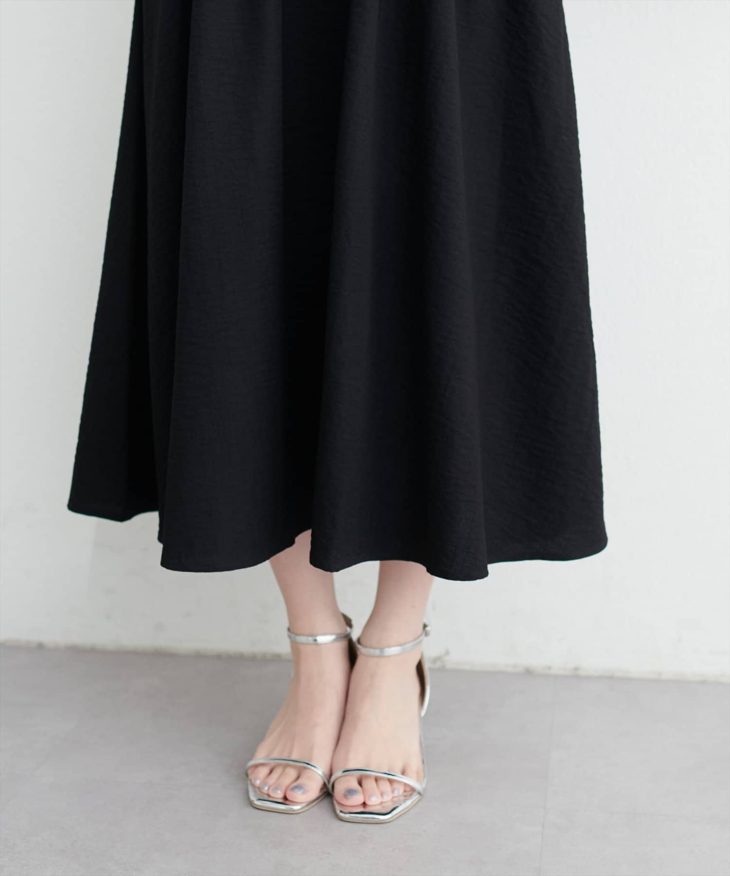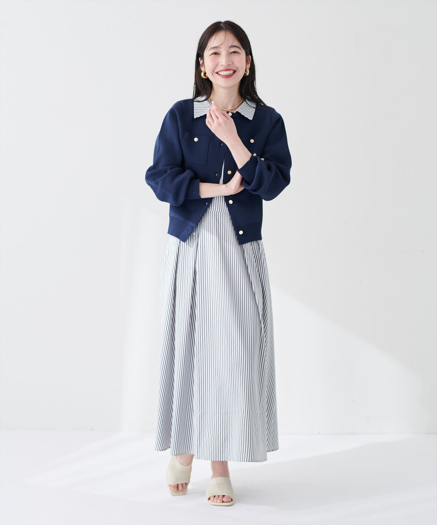 足元はストラップサンダルや雑材のミュールを合わせると季節感のある上品コーデに◎