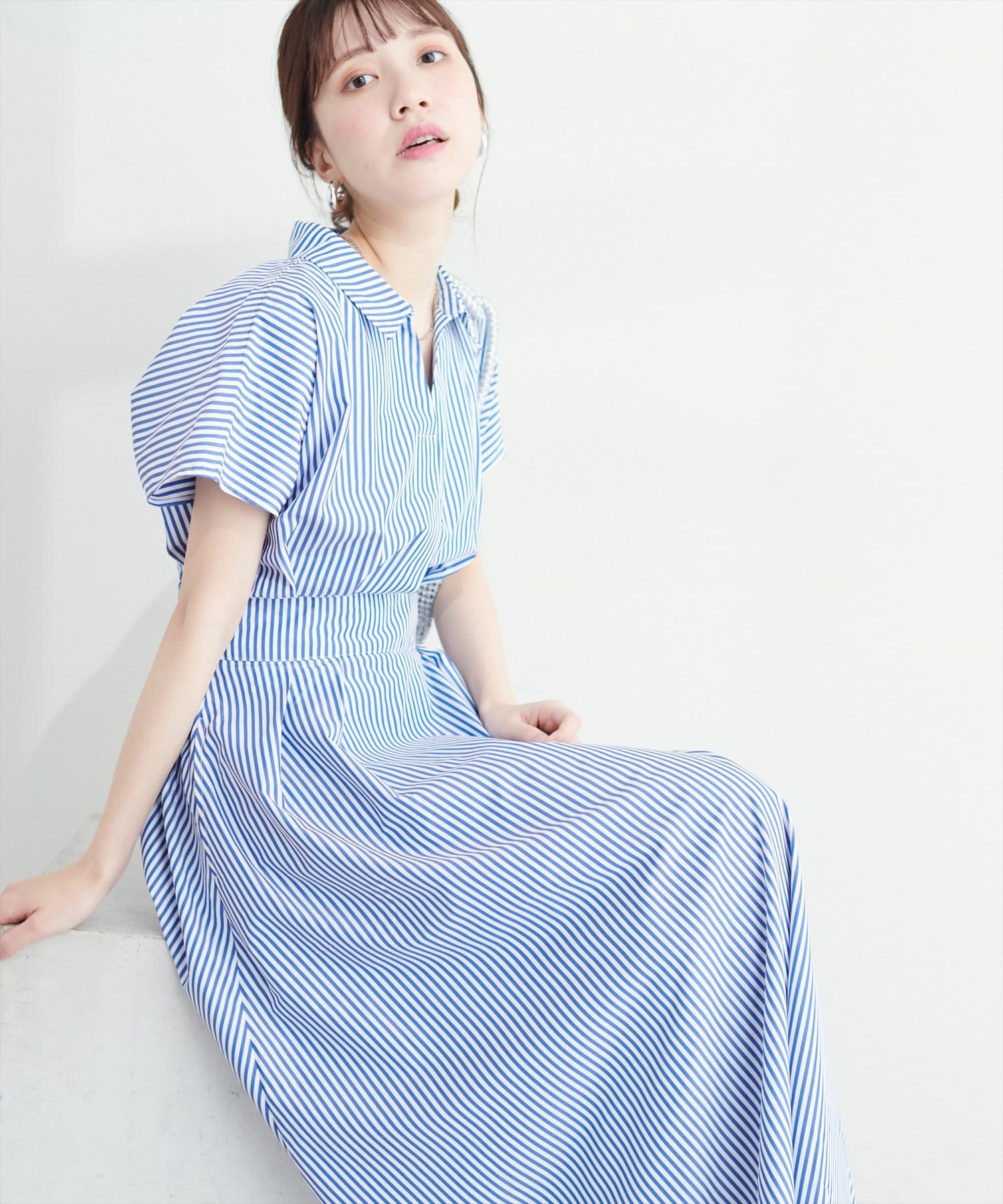 • natural couture(ナチュラルクチュール) 涼しげスキッパー衿お上品ワンピース